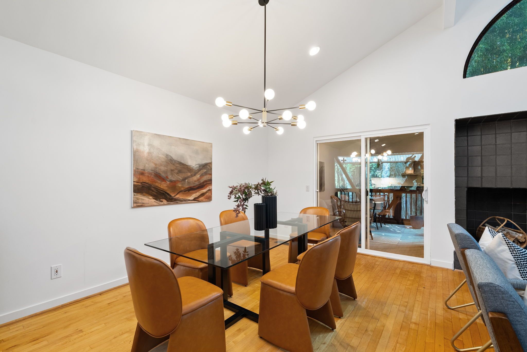 Inside, the temperature is perfect, cool and clean. The floorplan doesn’t show off—it doesn’t need to. Clean lines, two-story vaulted ceilings, and a modern fireplace that stops you mid-step. Effortless, striking, exactly right. The kitchen. Sleek Bosch dishwasher. New gas cooktop. Double ovens. The fridge fits like it was born here. The updates are subtle but thoughtful. Measured. 2019 was a good year for this kitchen—and now, for you. You peek into the media room —quiet, private, ready to fuel your side hustle. It could be the perfect spot to shoot all your YouTube videos. Upstairs, the primary bedroom catches your eye. Blackout blinds installed, you can already feel the luxurious darkness calling you to sleep in, just a little longer on Saturday mornings. A Japanese bidet seat, there’s one in the Jack & Jill bath too. You’re not going back to “normal” toilets after this.