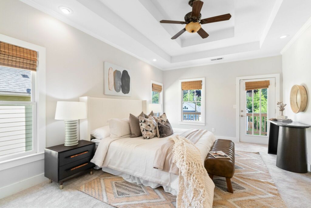 Upstairs, the primary suite is where the stress slips off your shoulders. You deserve every inch of it, trey ceilings that give the room a quiet lift, a walk-in closet roomy enough to get delightfully lost in, and a spa bath where the air carries a hint of lavender. The double vanity is love in architectural form. One sink spotless, the other perpetually dusted in toothpaste and mystery.
