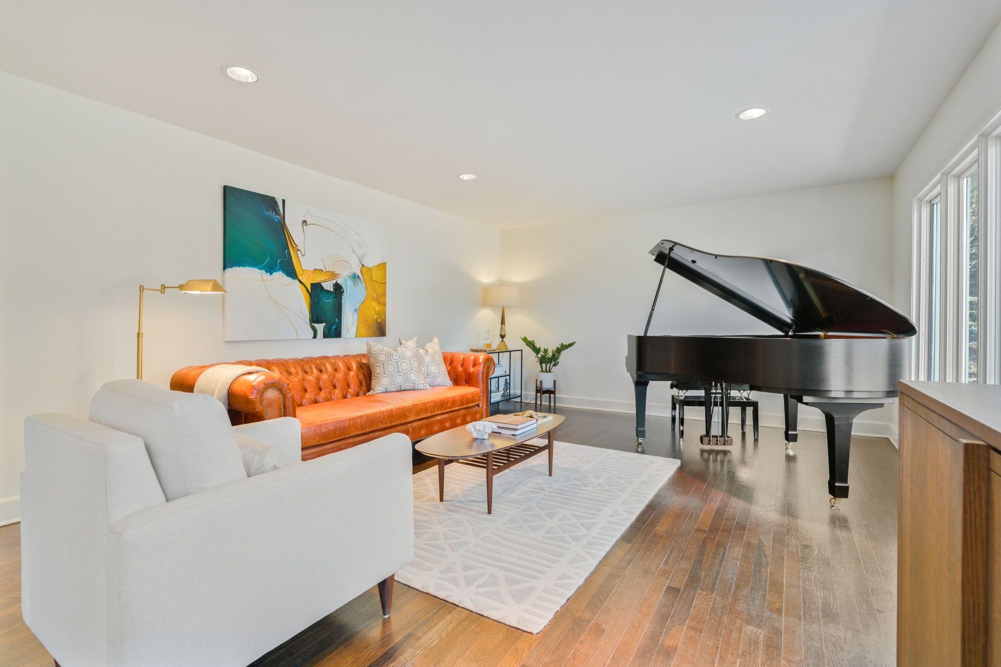 It stretched on horizontally with clean angular lines sprawling over the .6 acre lot. Quiet confidence. Inside, the air changed. The smell of effortless luxury. A collection of moments and memories were waiting to happen. The main level was big, with intentional space. Not the cliche “open” floor plan. It was refined with its big picture windows and light moving, through skylights.