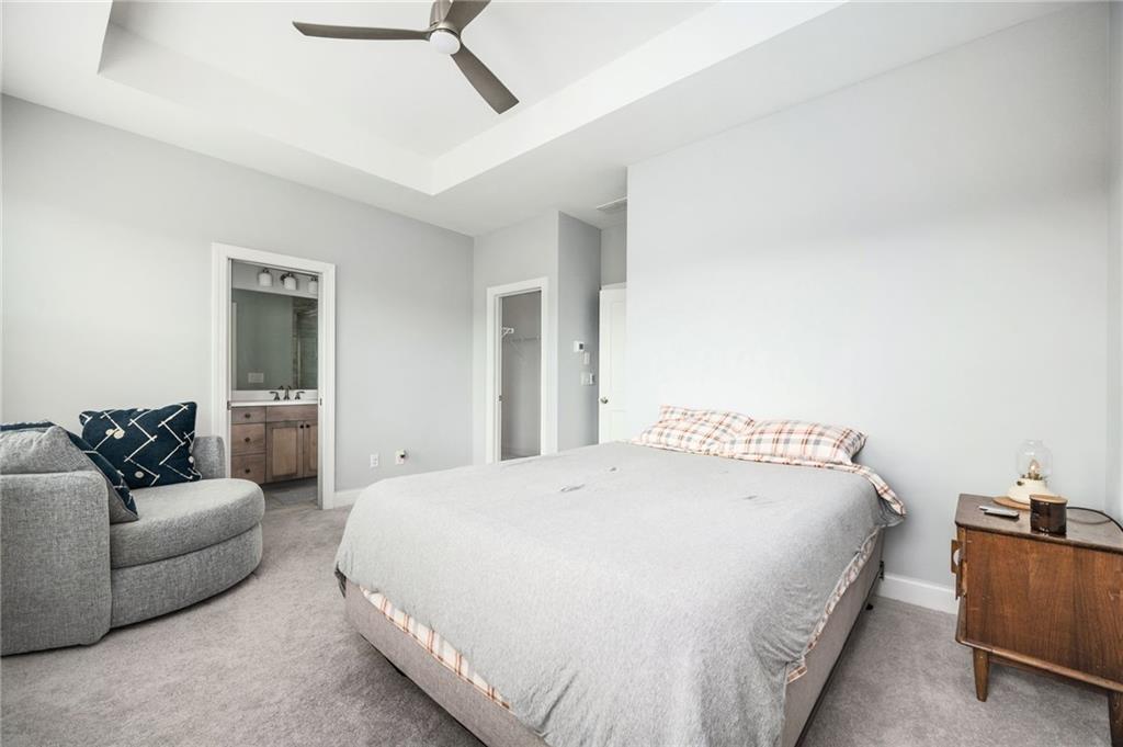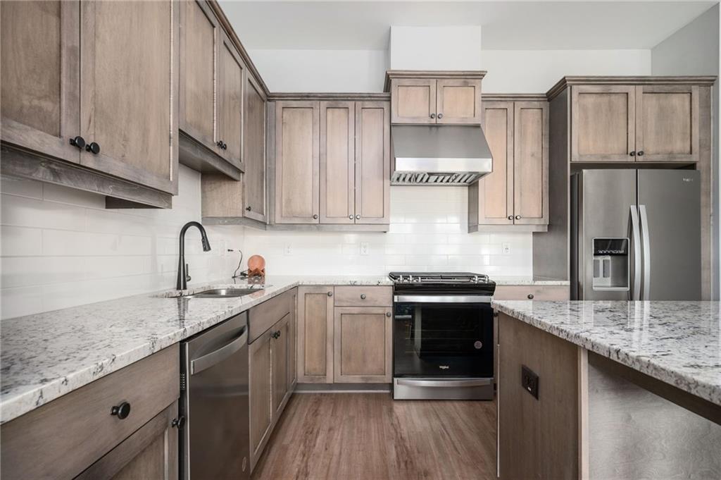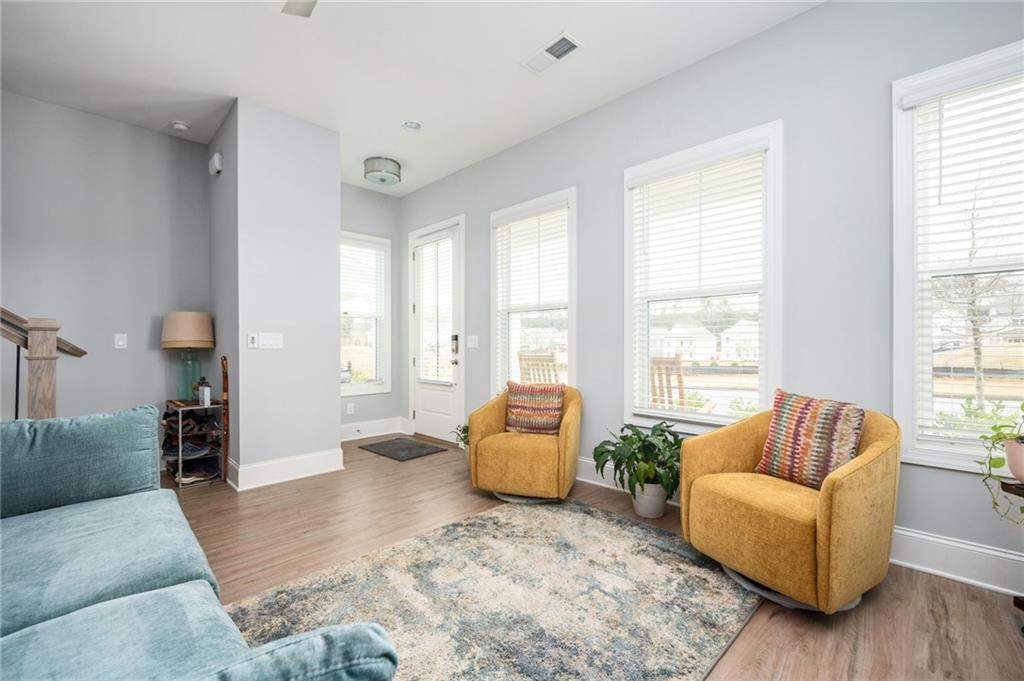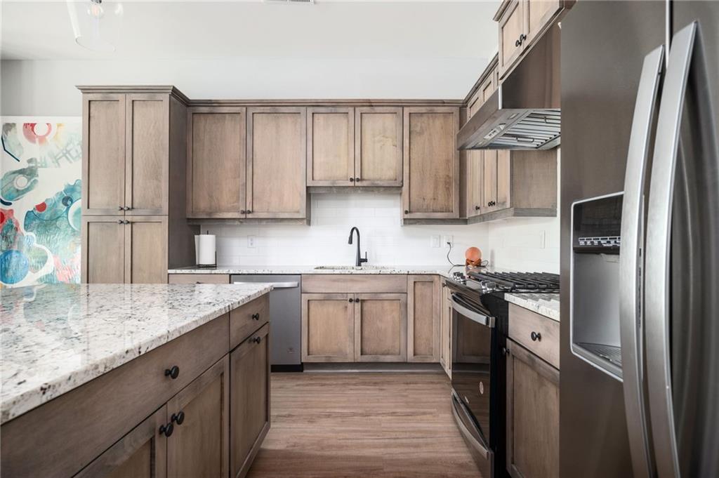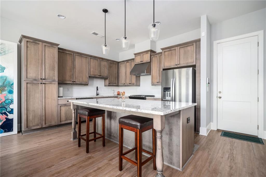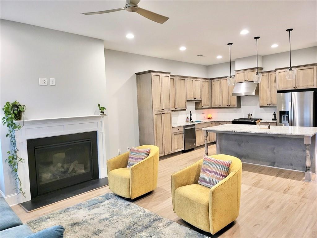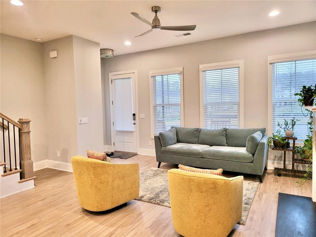 Experience the inviting allure of this immaculate 3 bedroom/2.5 bath abode. Revel in the seamless flow of the open-concept layout, where the kitchen effortlessly melds into the spacious Living Room, enhanced by the warm glow of a gas log fireplace. Bathed in natural light, the first floor features expansive LVP flooring throughout, creating an atmosphere of contemporary elegance. Indulge your culinary passions in the gourmet-style kitchen, outfitted with luxurious quartz countertops, a captivating tiled backsplash. The heart of the home, the kitchen also boasts a sizable island with abundant bar seating, 42" cabinets, stainless steel appliances, and convenient undercabinet lighting. Features a rear 2 car garage entry, this residence offers both practicality and charm. Ascend to the second level to discover the tranquil Owner's suite, complete with a sophisticated frameless shower, dual vanity sinks, and tasteful tile surround. The generously sized walk-in closet ensures ample storage space, while two additional Secondary Bedrooms and a tastefully tiled Full Bath provide versatility and comfort. With the added convenience of upstairs laundry, daily tasks become a breeze. Nestled within a picturesque neighborhood, this community epitomizes suburban charm, inviting residents to explore the nearby "The PATH" to Westside Reservoir Park. Enjoy unparalleled accessibility to Buckhead, Midtown, Downtown, Atlantic Station, and Hartsfield-Jackson International Airport, all just minutes away. Embrace the peace of mind offered by 24-hour security, while indulging in the community's amenities, including a private park (Heman Perry Park), playgrounds, dog parks, and a rejuvenating spa-inspired pool setting. Offering a harmonious blend of comfort and convenience, this residence is ideally suited for those seeking a refined urban lifestyle within the perimeter.