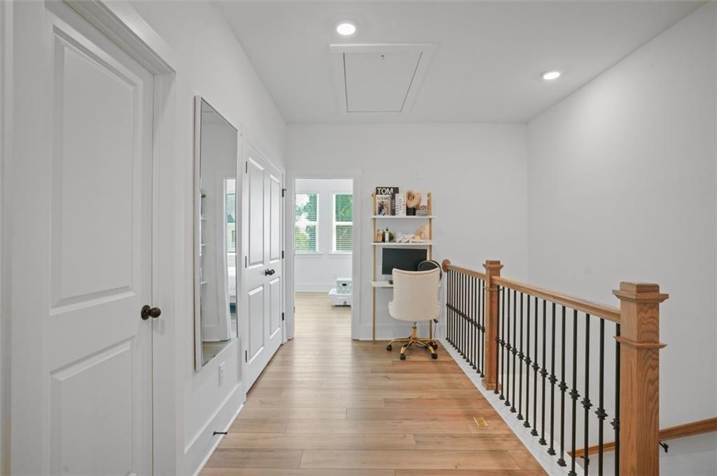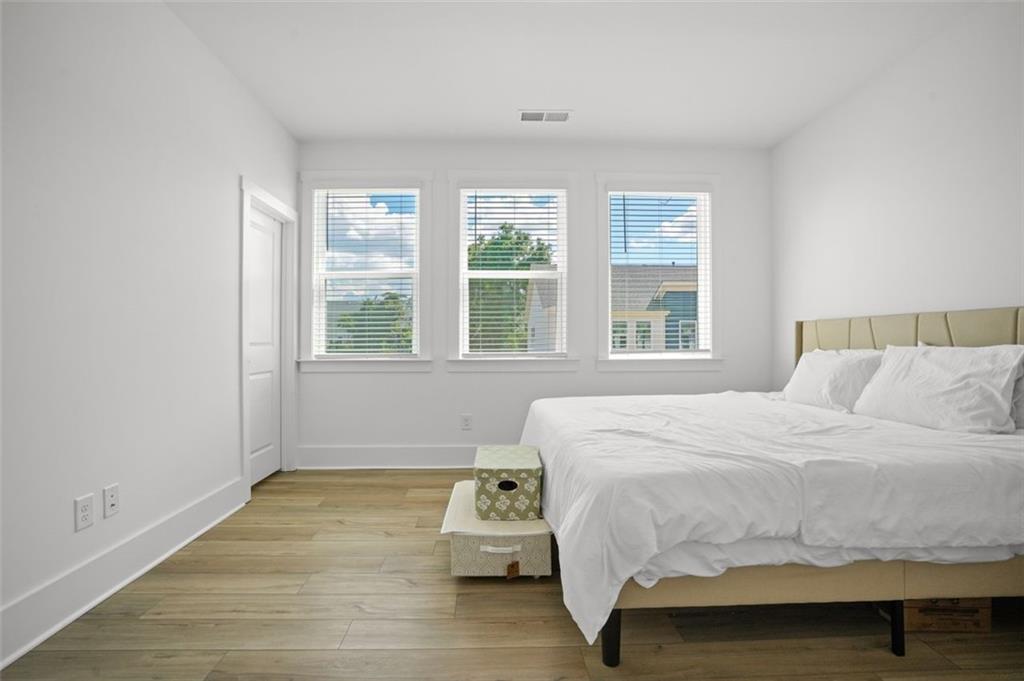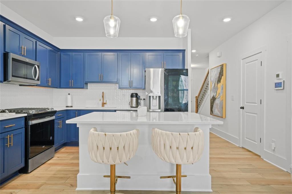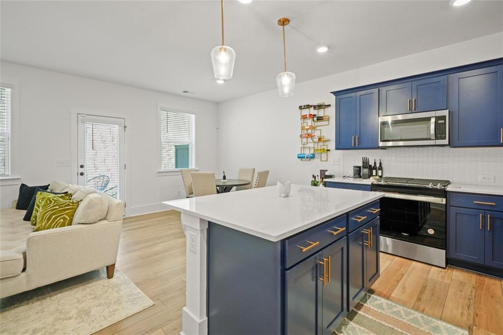 ***Seller will pay 12 month HOA fees or $2500 closing costs*** Discover the epitome of modern townhome living within the exquisite gated community of Park Vue! This humble abode features the highly sought after Hummingbird plan and is a two-story masterpiece designed for those who crave both comfort and style. As you enter through the inviting foyer, you're immediately greeted by an open-concept main floor that seamlessly blends elegance with functionality. Picture yourself in the heart of this home, where a chef-inspired island kitchen awaits, adorned with gleaming quartz countertops accented with rich gold and deep blue hues. The kitchen flows effortlessly into a spacious dining area and a cozy family room, creating the perfect setting for hosting gatherings or enjoying quiet evenings in. Step outside onto your private patio, where the space is perfect for morning coffee or unwinding at the end of the day. Upstairs, three generously sized bedrooms offer a retreat-like atmosphere, including a loft that provides the perfect flex space for a home office or additional lounging area. The primary suite is a sanctuary of its own, boasting luxurious finishes in the ensuite bath, from the designer lighting to the striking quartz countertops that mirror the kitchen’s sophisticated palette. With no neighboring homes directly in front of you, this townhome offers a level of seclusion that is rare in city living, ensuring your peace and privacy. The luxury extends beyond the home itself. Nestled in the vibrant heart of West Midtown, Park Vue is more than just a community—it's a lifestyle. Enjoy resort-style amenities like a sparkling pool and relaxing cabana, perfect for those warm summer days. Plus, with Atlanta’s largest green space, Westside Park, just across the street, outdoor adventures are always just steps away. To top it all off, this home comes fully equipped with all appliances included and a builder's warranty for added peace of mind. Experience the perfect blend of urban convenience and serene privacy in this remarkable townhome.