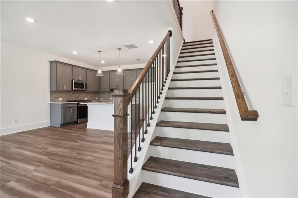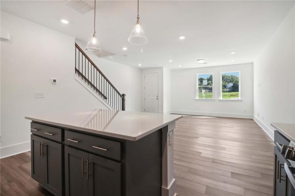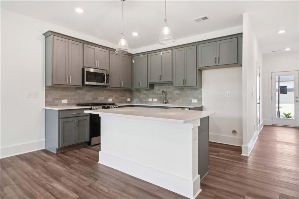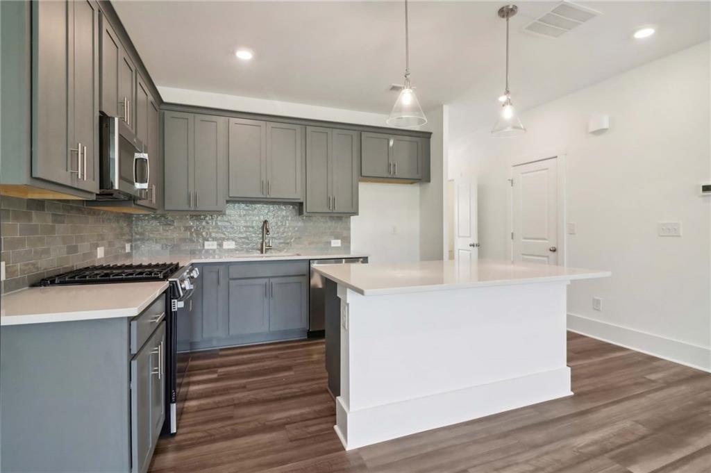 Situated in the trendy West Midtown district, known for its artisanal vibe, industrial minimalism, top-tier retail, and some of Atlanta’s best restaurants, Park Vue offers the perfect balance of urban convenience and serene living. This sought-after neighborhood is also home to high-tech companies, making it a prime location for both work and leisure. Just steps from Westside Park, Atlanta's largest greenspace, Park Vue offers exclusive community amenities including a gated entrance, a resort-style pool, a relaxing cabana, and a cozy neighborhood fire pit surrounded by Adirondack chairs. The beautifully designed two-story Calliope floor plan boasts over 1,500 square feet of modern living space. The main floor features a bright, open-concept layout with a gourmet kitchen equipped with a large center island, natural gas cooking, and Quartz countertops. Adjacent to the kitchen is an airy dining area and a spacious family room perfect for gatherings and relaxation. The home also includes a conveniently located powder room on the main floor. Upstairs, the Calliope plan offers three spacious bedrooms, including a luxurious Primary Suite that serves as a peaceful retreat. The Primary Suite is flooded with natural light and features a spa-like bathroom with a frameless glass walk-in shower, dual vanities, and a large walk-in closet. Two additional bedrooms are equally spacious, with plenty of closet space, and share a well-appointed full bath. A versatile loft space adds flexibility, ideal for a home office, playroom, or media room. Additional features of this townhome include enhanced vinyl plank flooring throughout, designer lighting, sleek iron railings, energy-efficient windows, and a private one-car garage with extra storage. Lot 148 is move-in ready, perfect for a quick transition into one of West Midtown’s most desirable communities. For further details and information on current promotions, please contact an onsite Community Sales Manager. Please note that renderings are for illustrative purposes, and photos may represent sample products of homes under construction. Actual exterior and interior selections may vary by homesite.