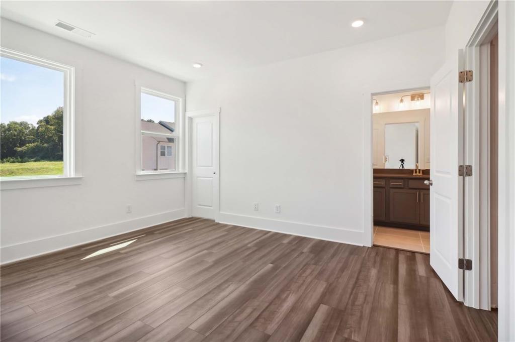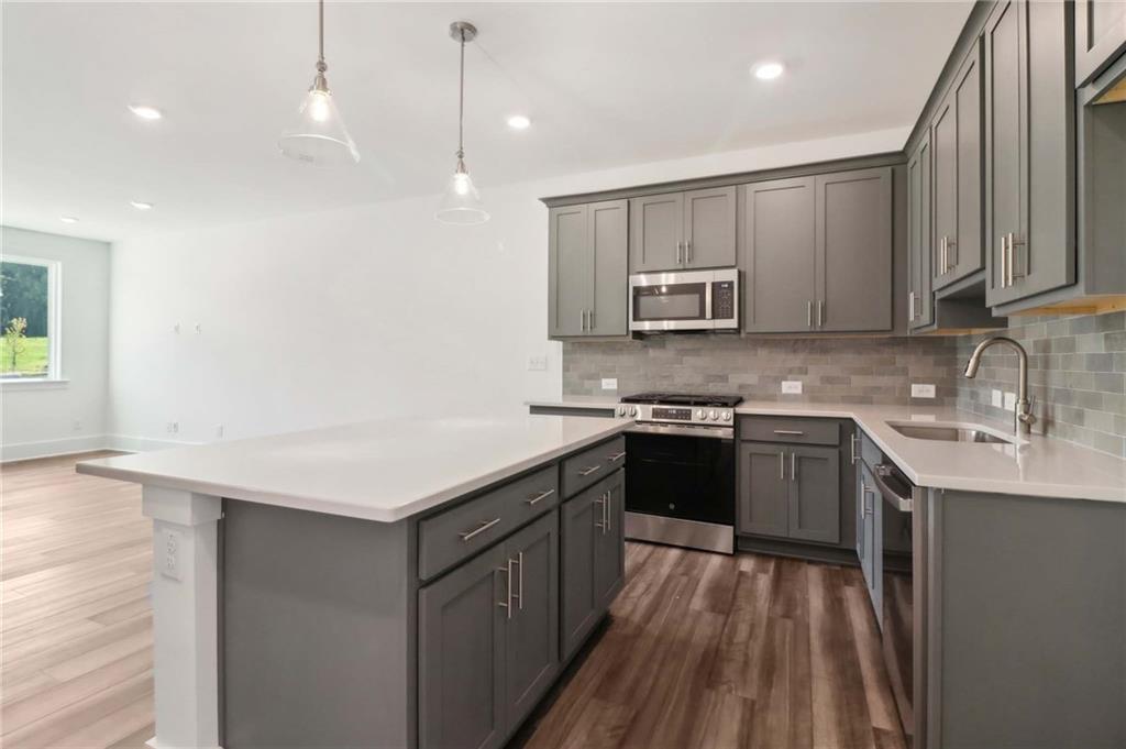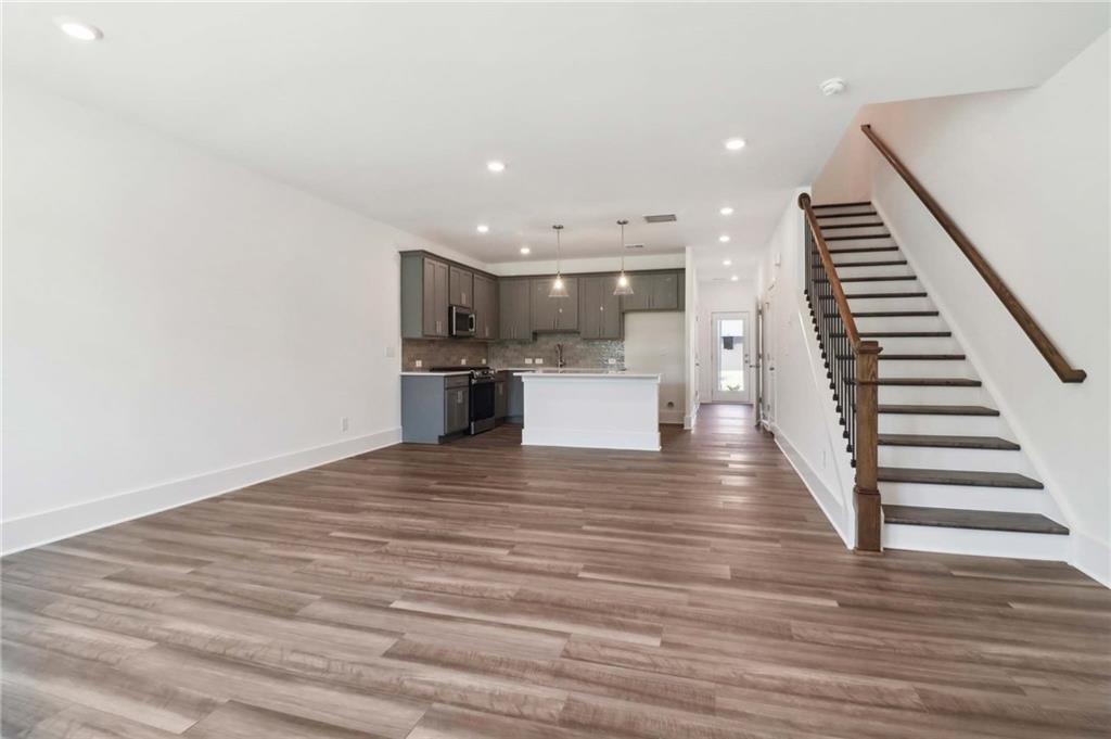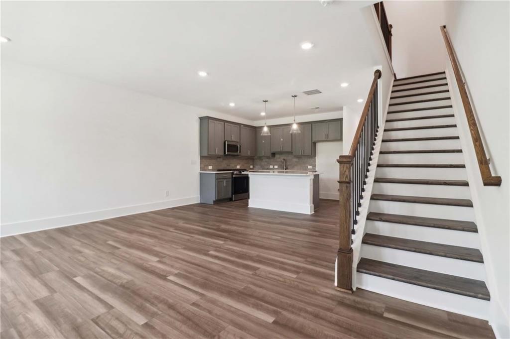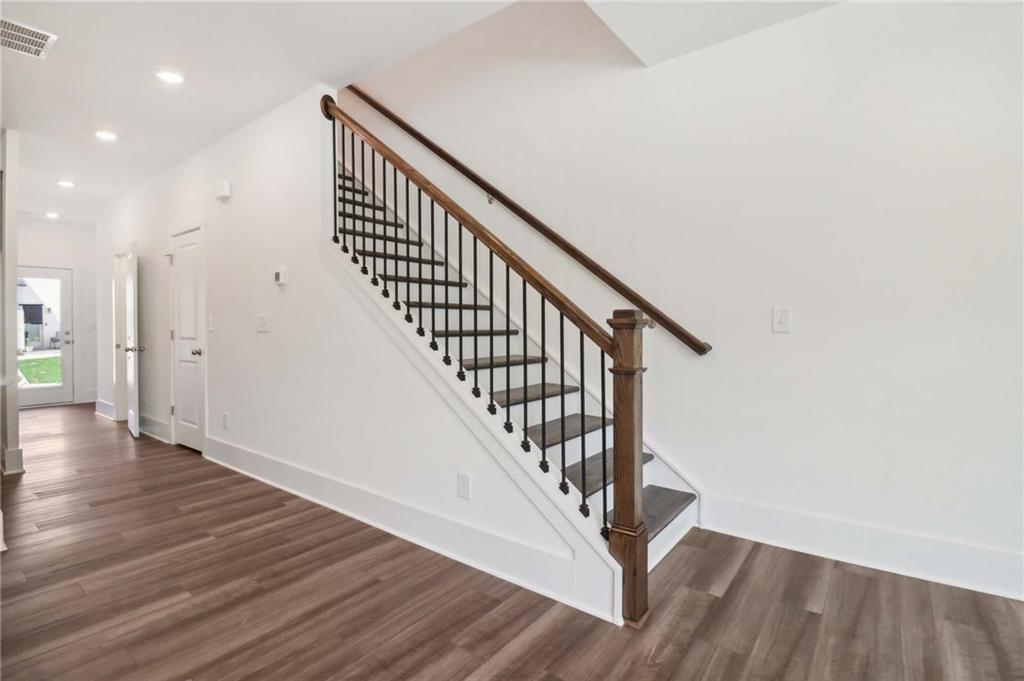Situated in the trendy West Midtown district, known for its artisanal vibe, industrial minimalism, top-tier retail, and some of Atlanta’s best restaurants, Park Vue offers the perfect balance of urban convenience and serene living. This sought-after neighborhood is also home to high-tech companies, making it a prime location for both work and leisure. Just steps from Westside Park, Atlanta's largest greenspace, Park Vue offers exclusive community amenities including a gated entrance, a resort-style pool, a relaxing cabana, and a cozy neighborhood fire pit surrounded by Adirondack chairs. The beautifully designed two-story Calliope floor plan boasts over 1,500 square feet of modern living space. The main floor features a bright, open-concept layout with a gourmet kitchen equipped with a large center island, natural gas cooking, and Quartz countertops. Adjacent to the kitchen is an airy dining area and a spacious family room perfect for gatherings and relaxation. The home also includes a conveniently located powder room on the main floor. Upstairs, the Calliope plan offers three spacious bedrooms, including a luxurious Primary Suite that serves as a peaceful retreat. The Primary Suite is flooded with natural light and features a spa-like bathroom with a frameless glass walk-in shower, dual vanities, and a large walk-in closet. Two additional bedrooms are equally spacious, with plenty of closet space, and share a well-appointed full bath. A versatile loft space adds flexibility, ideal for a home office, playroom, or media room. Additional features of this townhome include enhanced vinyl plank flooring throughout, designer lighting, sleek iron railings, energy-efficient windows, and a private one-car garage with extra storage. Lot 148 is move-in ready, perfect for a quick transition into one of West Midtown’s most desirable communities. For further details and information on current promotions, please contact an onsite Community Sales Manager. Please note that renderings are for illustrative purposes, and photos may represent sample products of homes under construction. Actual exterior and interior selections may vary by homesite.