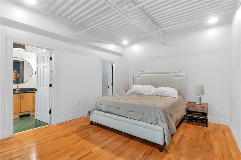 Discover a stunning one-bedroom loft that redefines city living. With soaring ceilings and a spacious layout, this renovated gem perfectly balances modern design and luxurious comfort. As you step inside, you’ll be greeted by an airy ambiance that invites relaxation and entertaining. The chef’s kitchen, complete with top-of-the-line appliances and sleek cabinetry, seamlessly connects to the living area—ideal for culinary creations and social gatherings. Large windows flood the space with natural light, showcasing breathtaking panoramic views and creating a vibrant connection to the city outside. Step out onto your private balcony, a peaceful retreat above the hustle and bustle, perfect for sipping morning coffee or enjoying an evening breeze while taking in the stunning skyline. The bathrooms are beautifully renovated, featuring modern fixtures and high-end materials that evoke a spa-like atmosphere for ultimate relaxation. Luxurious touches like heated flooring and designer lighting enhance the experience, ensuring every moment spent here feels indulgent. The spacious bedroom offers a serene escape, thoughtfully designed to maintain privacy while enhancing the loft's open feel. The custom closet, designed by California Closets, maximizes storage and style, making organization a breeze. Additionally, the media console in the den, also crafted by California Closets, provides a chic and functional space for entertainment. Located in the heart of Poncey-Highland, just moments from Ponce City Market and the BeltLine, this loft is more than just a home; it’s a sanctuary that combines contemporary style with luxurious living. With vibrant restaurants, eclectic shops, and green spaces just steps away, you’ll enjoy the best of urban life. Whether you’re hosting friends, enjoying quiet evenings, or simply soaking in the unique character of the space, every moment here is truly exceptional. Don’t miss your chance to own this exquisite loft—where modern elegance meets the excitement of city living!