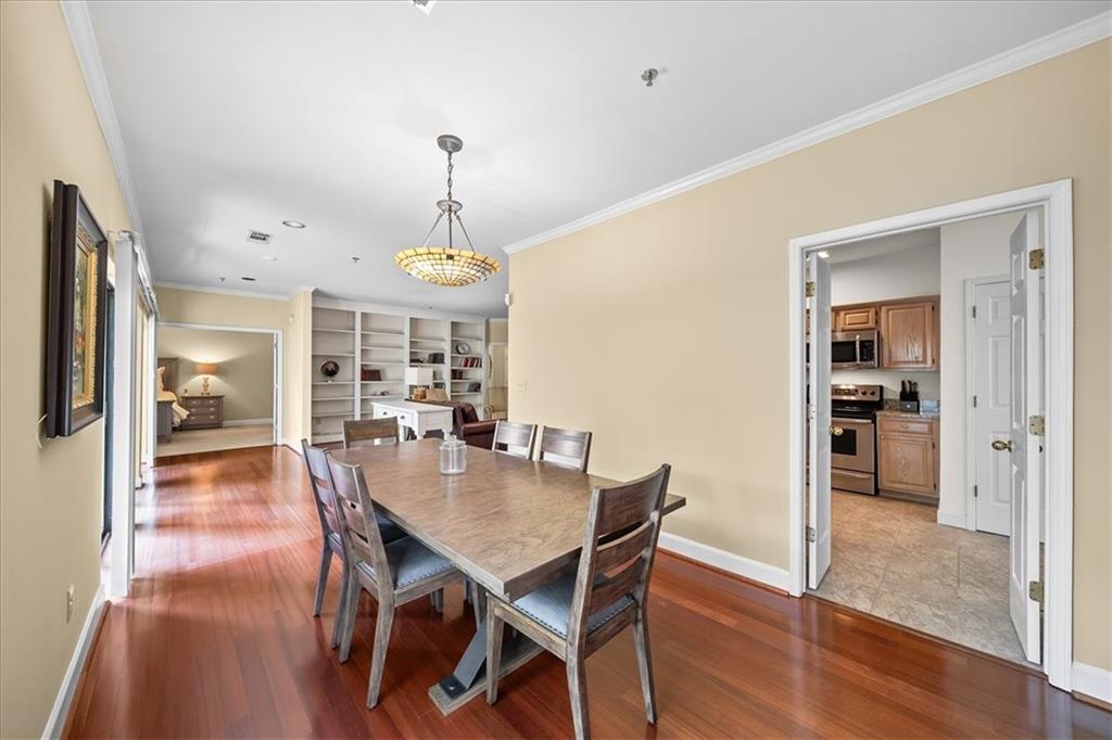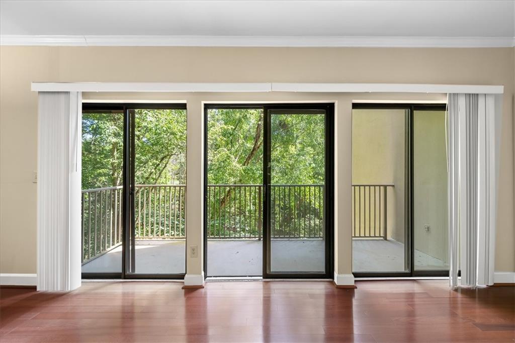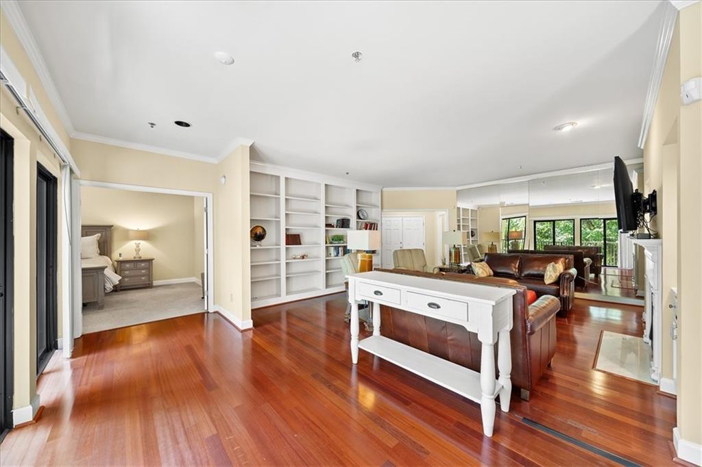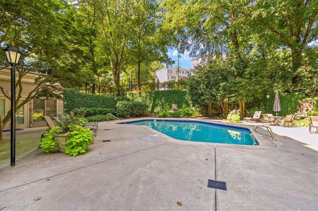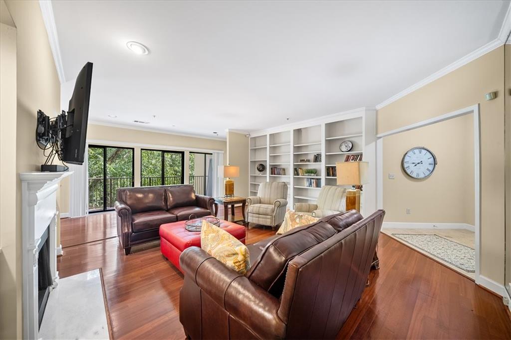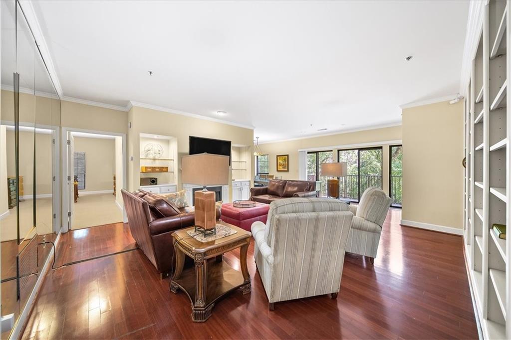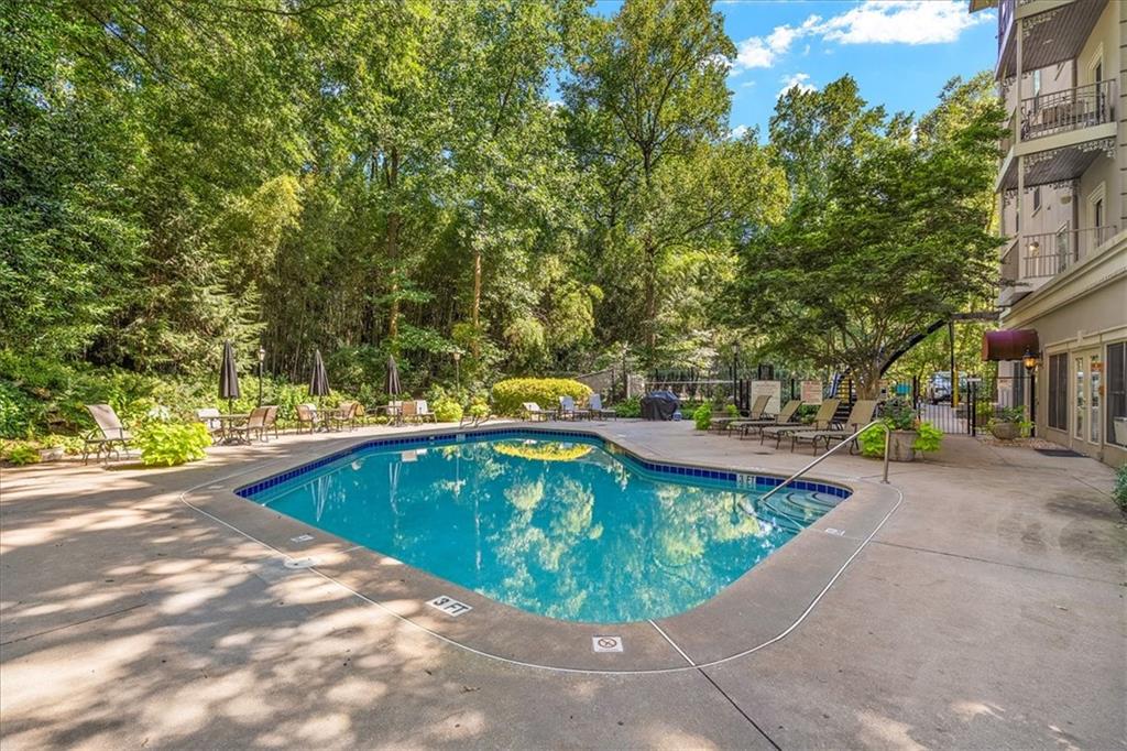 Discover total privacy and luxury in this exclusive European-style gated community offering concierge services and 24/7 security. This elegant condo boasts a spacious floor plan with a welcoming entry and a living room featuring built in bookshelves, fireplace, and rich hardwood floors. The formal dining room and a large balcony looks out on a serene view of wooded landscaping. The kitchen is a cook's delight, equipped with granite countertops, stainless steel appliances, stone flooring, and a cozy breakfast nook. The expansive master suite includes a walk-in closet and oversized bathroom with a separate shower, and a relaxing jacuzzi tub. The community offers a sparkling swimming pool and exercise facility. Enjoy the convenience of two covered parking spaces and a short stroll to Buckhead's premier shopping, dining, and entertainment. With two MARTA stations nearby, you're just steps away from the best of Buckhead living. Don't miss this exceptional opportunity!