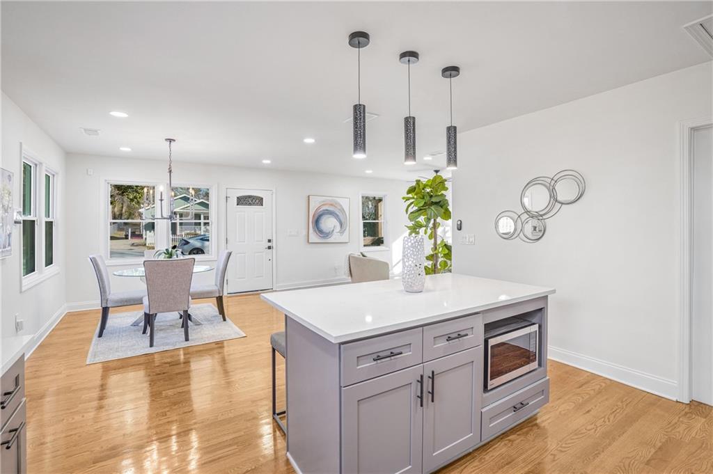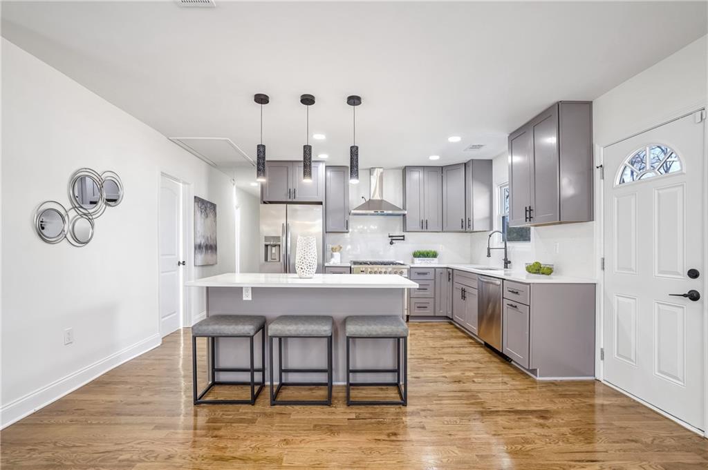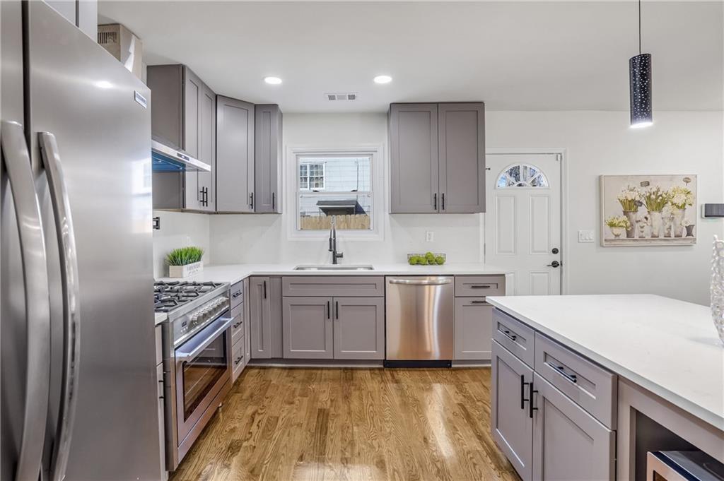 Stunning 5-Bedroom Home in Grove Park, Atlanta – Ideal for Modern Living. This beautifully renovated 5-bedroom, 4-bathroom home in the sought-after Grove Park neighborhood combines modern amenities with classic charm. Spanning 2,136 square feet including an 840-square-foot basement, this home offers ample living space for a variety of lifestyles. The main level features gorgeous hardwood floors, a spacious open floor plan, and a chef’s kitchen with sleek stainless steel appliances, a 5-burner stove, soft-close cabinets, and generous counter space. Enjoy the oversized front and rear porches, perfect for outdoor living and adding curb appeal. The fully finished basement offers two bedrooms, a full bath, and LVP flooring throughout, providing flexible space for guests, a home office, or entertainment. Outside, the oversized back porch leads to an open-air entertainment area, ideal for relaxing or hosting gatherings. Set on a large .314-acre lot, there's plenty of room for outdoor activities or future development. Located within moments to Marta, Quarry Park, and the Westside Beltline Trail, this home offers the perfect blend of convenience and serenity, with close proximity to local restaurants, shops, and attractions. Don’t miss the opportunity to make this stylish and spacious home yours!
