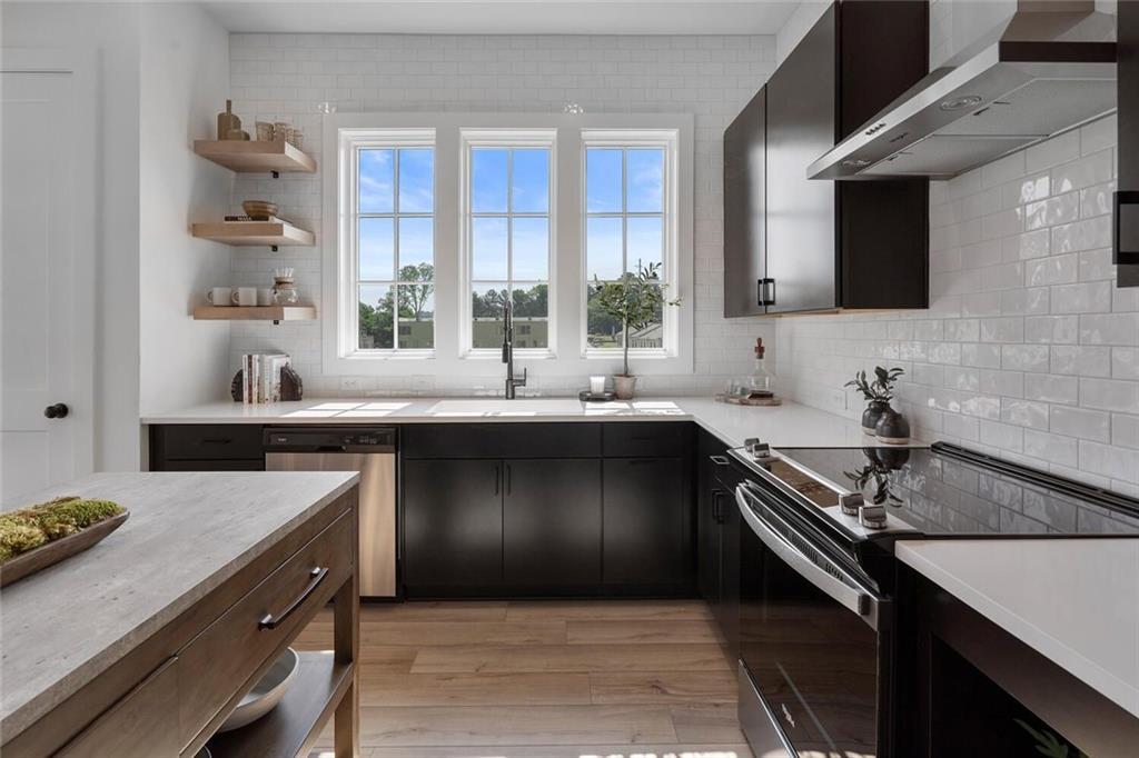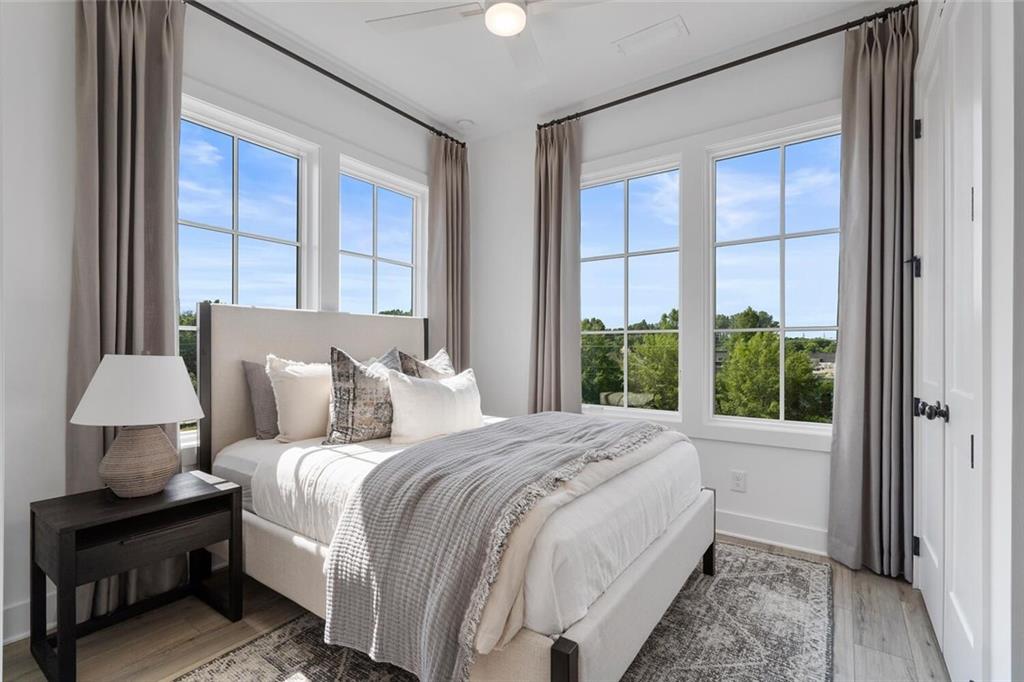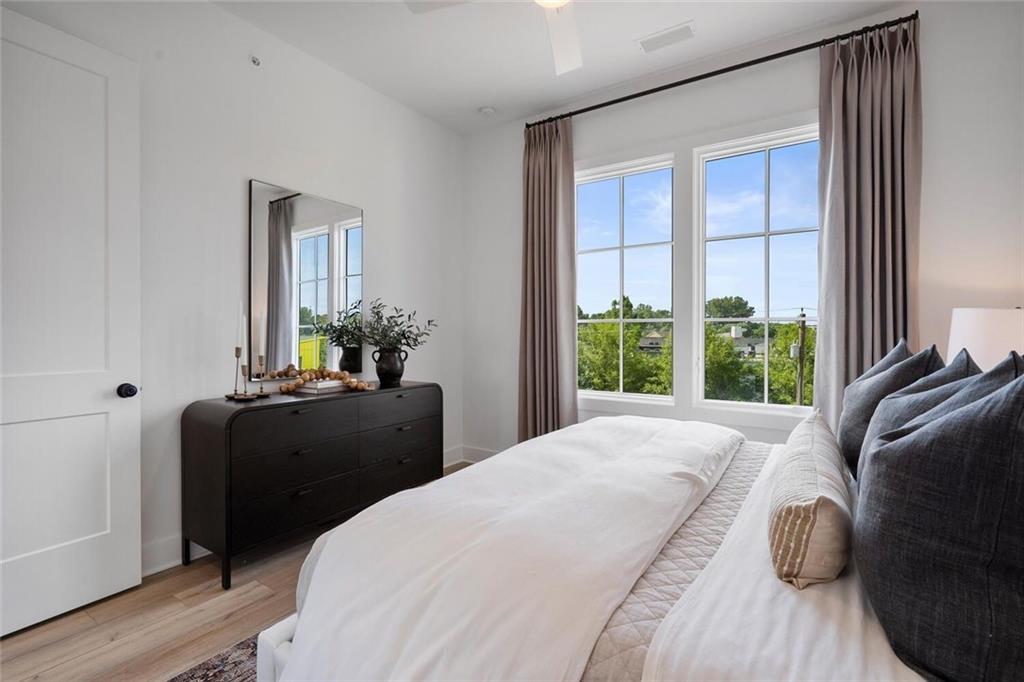 Top floor living!! Set in the lively heart of West Midtown, Longreen boasts a tranquil environment for residents to enjoy. Longreen Park encouraged community gathering, uniting friends, families, and neighbors alike. The future BeltLine expansion to the area will further enhance Longreen’s connectivity to West Midtown. Perched on the top floor, The Author 2 bed 2 bath floorplan embodies a meticulously crafted open concept living space, highlighting a gourmet kitchen adorned with quartz countertops, stainless steel appliances, and a great corner covered patio. The primary suite is thoughtfully designed, featuring a generously sized bedroom complemented by a walk-in closet and a well-appointed bathroom with double vanity and oversized shower. Additionally, this home provides a one-car garage plus an additional covered parking space ensuring both protection and convenience for 2 vehicles. **DISCLAIMER: Kindly note, the provided photos offer a glimpse into the forthcoming home currently under construction. Variations in colors and materials may be present.