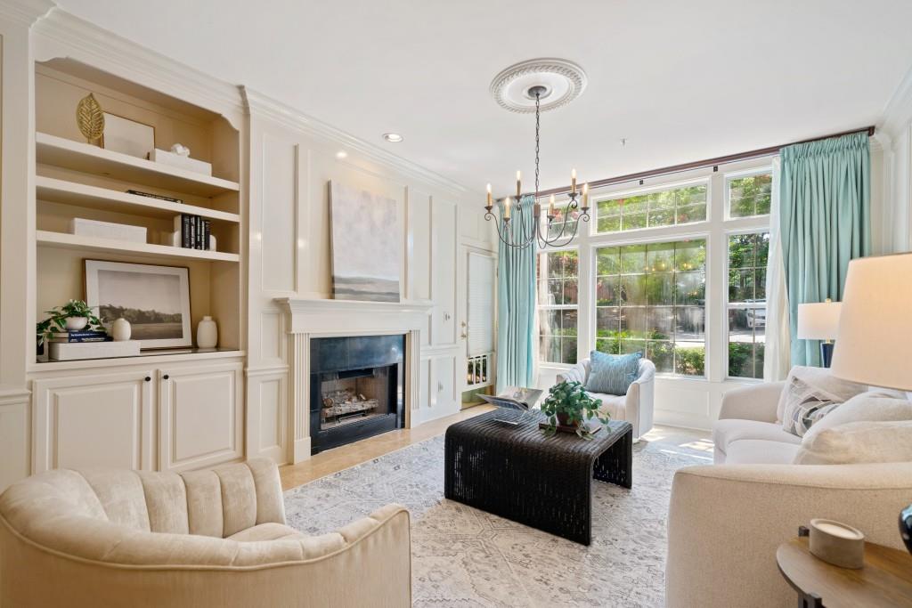 Located in the heart of Buckhead within walking distance to restaurants and shops, this spacious 2-bedroom, 2-bathroom home offers one of the largest 2-bedroom floor plans in the Habersham Oaks community, providing you with the perfect blend of luxury and functionality, along with plenty of space to live, work, and relax. Unparalleled upgrades such as judges paneling, crown molding, tray ceilings, ceiling medallions, and honed travertine floors add sophistication and timeless style to the freshly painted interior. The living room, bathed in natural light from floor-to-ceiling windows, centers around a charming fireplace and a beautiful built-in bookcase. The dining room, flanked by columns and with an elegant tray ceiling, is perfect for hosting intimate dinners or casual meals. Cooking is a joy in the spacious chef's kitchen, which boasts ample cabinet space, stone countertops, double ovens, and a gas cooktop. All appliances, including a stackable washer and dryer, are included, making it so easy to just move right in. The primary suite is a true retreat, featuring double French doors, tray ceilings, a generous walk-in closet, and an ensuite bathroom with a large vanity, garden tub, and separate shower. On the opposite side of the home, the second bedroom and full bathroom offer perfect accommodations for guests or a home office. Storage is plentiful with a walk-in closet off the foyer, a linen closet, a pantry, and more. Begin and end each day on your private covered porch, enjoying a surprisingly peaceful and relaxing atmosphere in the heart of Buckhead. In addition to the convenient Buckhead location, Habersham Oaks offers its own conveniences such as a fitness center, pool, clubhouse, and dog walk. Additional bonuses include the security of living in a gated community with secured access entry and the convenience of assigned (deeded) covered parking. This exceptional Buckhead condominium is the perfect blend of urban convenience and serene living. The only thing missing is YOU!
