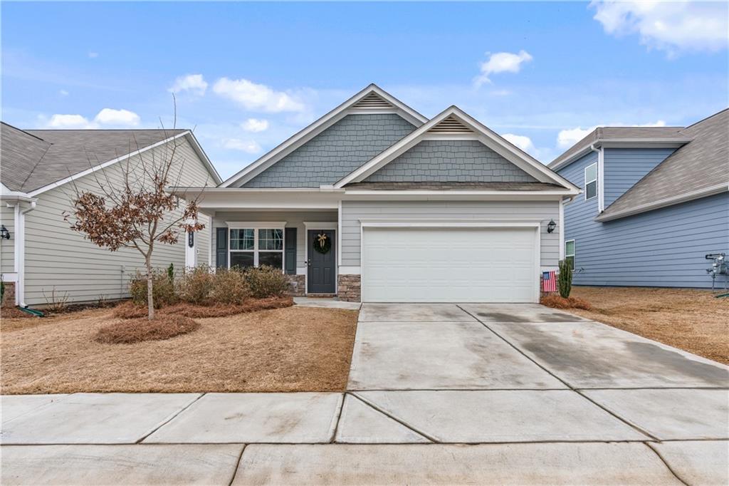 Welcome to this beautifully maintained, stepless ranch in a desirable new neighborhood! This home, built in 2022, boasts a modern and open floor plan with freshly painted walls and refinished cabinets, providing a sleek and inviting atmosphere. Featuring 3 spacious bedrooms and 2 well-appointed bathrooms, this home offers both style and comfort. Enjoy easy access to Downtown Ball Ground, just minutes away, with quick connections to Highway 515 for ultimate convenience. The large 2-car garage and additional parking in the driveway provide ample space for your vehicles and guests. This move-in ready home is perfect for anyone looking for modern living with a convenient location and plenty of space. Schedule your showing today!