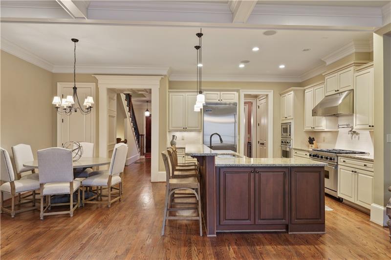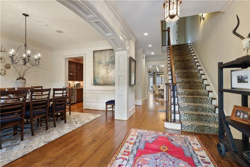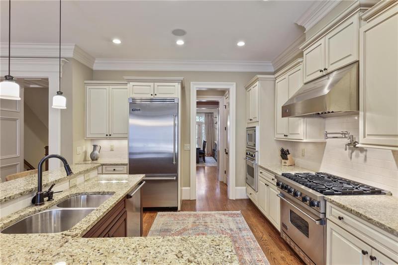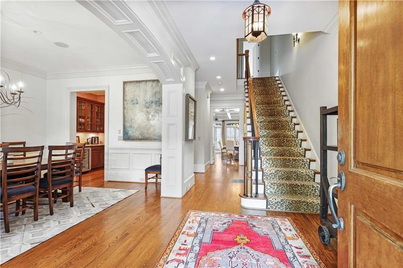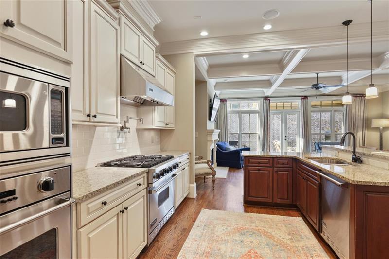 Welcome to the exquisite Brownstones at Honour, a PRIVATE and GATED enclave of just 14 LUXURY TOWNHOMES with ELEVATORS! Nestled on a charming, tree-lined street, this stunning brick and limestone residence offers an elegant blend of classic design and modern living. A beautifully landscaped and gated front courtyard leads you into this sophisticated 3-story home. Upon entry, a grand foyer welcomes you, opening into a formal dining room with French doors leading to a balcony that overlooks the serene courtyard. The dining room flows seamlessly into a gourmet kitchen, equipped with stainless steel Viking appliances and a butler's pantry/wet bar-perfect for entertaining. The kitchen is open to a large family room, featuring coffered ceilings, floor to ceiling windows and a stone fireplace. French doors lead to a private, covered porch complete with a grill, seating area, and TV, ideal for outdoor relaxation. With an elevator servicing all three levels, this home offers convenience and luxury. The upper floor includes the primary suite, boasting a spacious bedroom, elegant bath, and generous walk-in closet, along with a second ensuite bedroom and a laundry room. The daylight terrace level offers a third bedroom with full bath that can also be used as additional living space along with ample storage. Parking is a breeze with a two-car garage and additional covered parking for two more vehicles. Ideally located near Chastain Park, top-tier shopping, dining, and quick access to GA 400, this home provides an easy lifestyle of luxury and convenience that's hard to match.