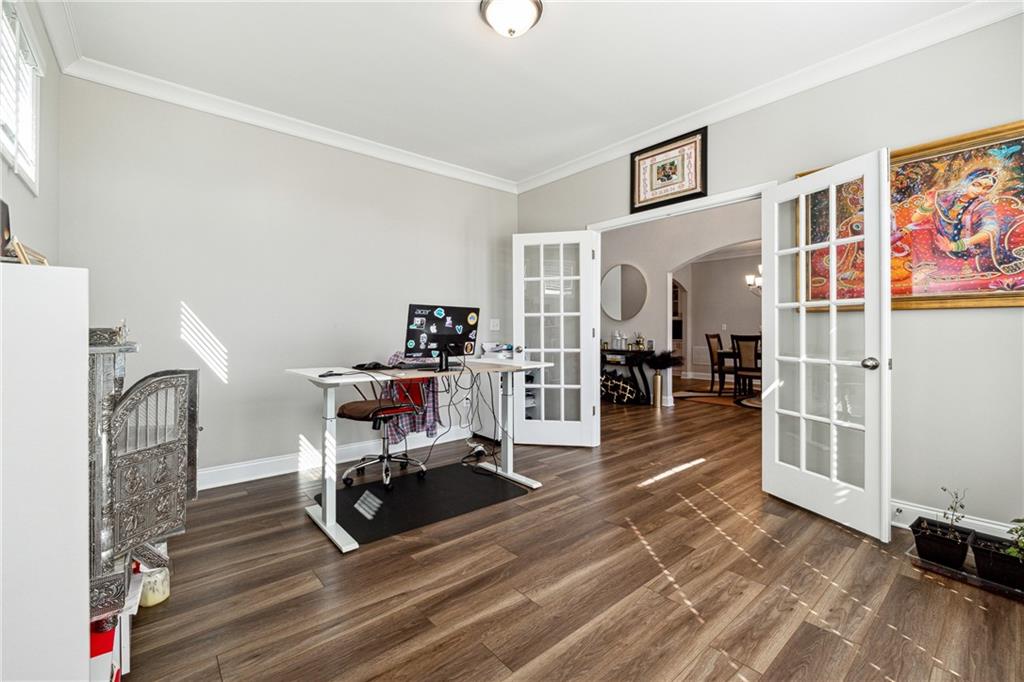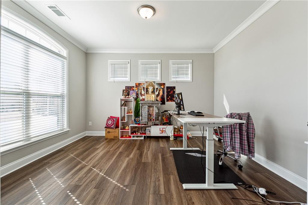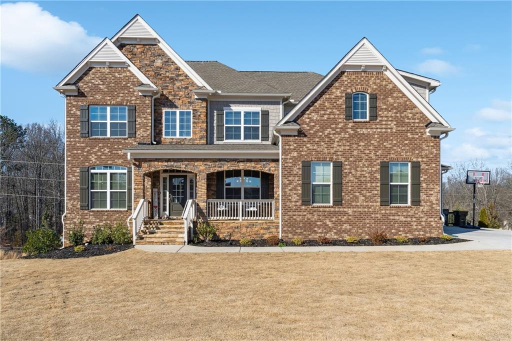 WELCOME to the GORGEOUS home w/UNFINISHED BASEMENT, nestled in the exclusive HOLBROOK FARM - a location where opportunities to purchase are few and far between. The most popular CHATSWORTH II plan built by LENNAR, this property stands out with its charming brick & stone, front porch leading into an inviting two-story foyer that introduces a world of luxury and comfort. The formal dining room sets the stage for memorable gatherings, a study room with french doors, while gourmet kitchen boasts modern look with a custom backsplash, an oversized sink, premium granite countertops, a walk-in pantry and the suite of stainless steel appliances, including a built-in oven and microwave & vent-hood, complements the breakfast area with natural light from the wall of windows, offering stunning views of the beautiful humoungous backyard.The 2-story family room showcases sophistication with its granite fireplace, setting the perfect scene for relaxation and entertainment. Enlarged covered deck, ideal for enjoying sunset evenings and stargazing, enhanced by an expanded patio. The main level also features a guest bedroom with a full tiled bath ensuring comfort and convenience for visitors. Ascend to the upper floor to discover the exquisite master bedroom, complete with a tray ceiling and an adjoining sitting entertainment space for ultimate relaxation. The master bath offers double vanities, a garden tub, and a separate shower leading to a large walk-in closet, a spacious secondary bedroom with an attached private bath & two additional generously sized secondary bedrooms with a jack-n-jill l bath, a laundry room complete the upper level, each benefiting from abundant natural light and refreshing ventilation. The terrace level is ready for the future home owner to complete according to their taste, allowing for personalized touches to create a unique and customized space. Notable upgrades/features include 3-car side entry garage, enlarged and covered deck. Situated in a family-friendly community. this property also benefits from being in a top rated schools and favorable Forsyth County taxes. Don’t miss your chance to own a piece of paradise in CUMMING! Hurry will sell fast :-)