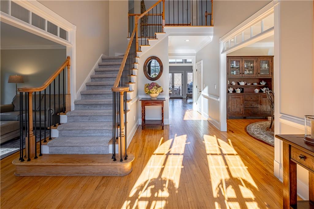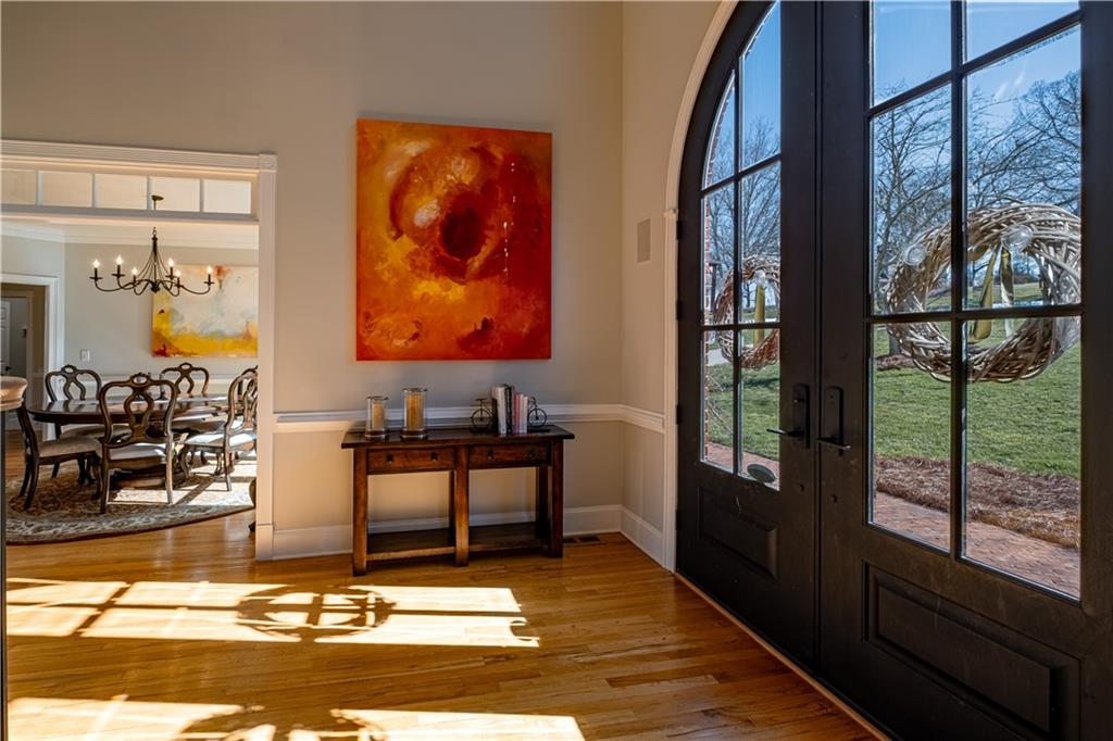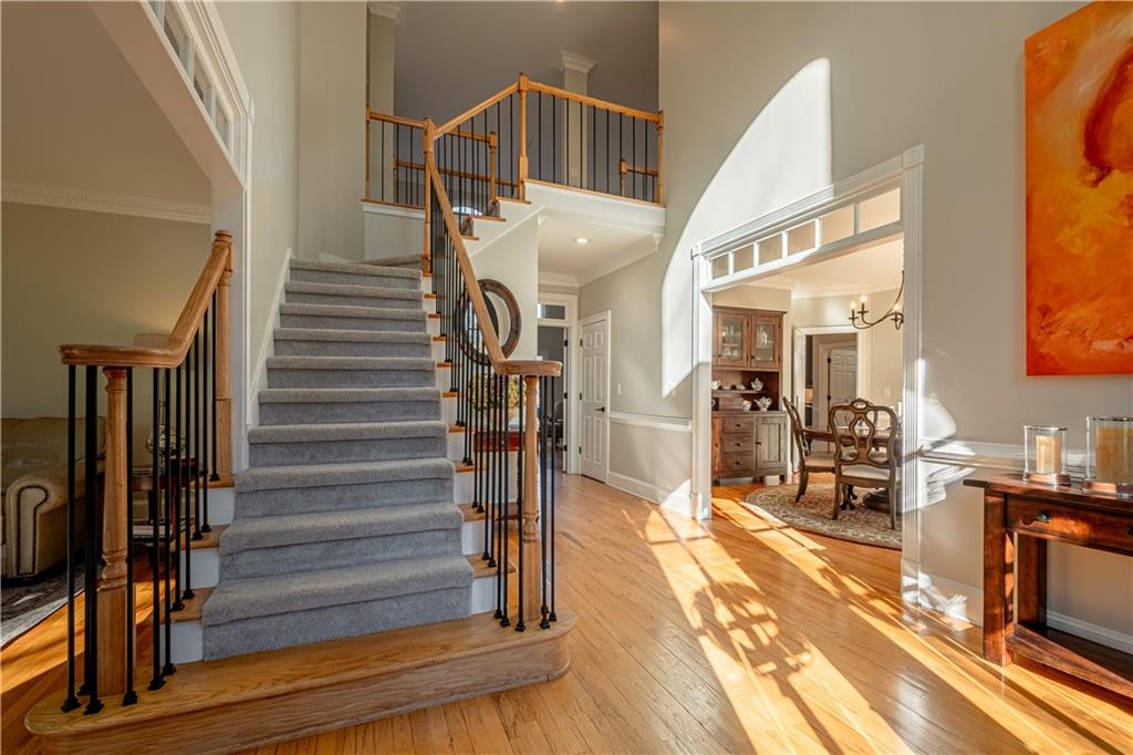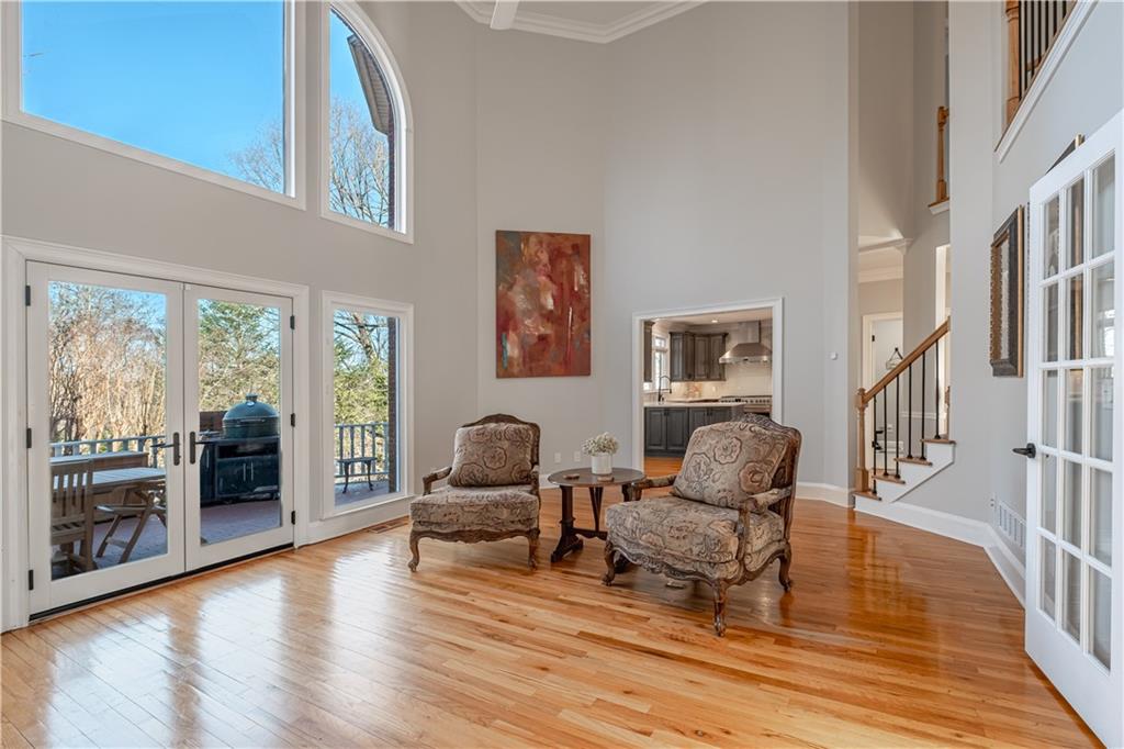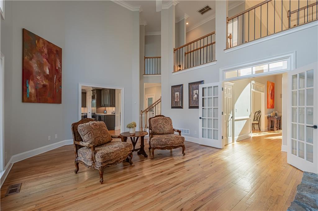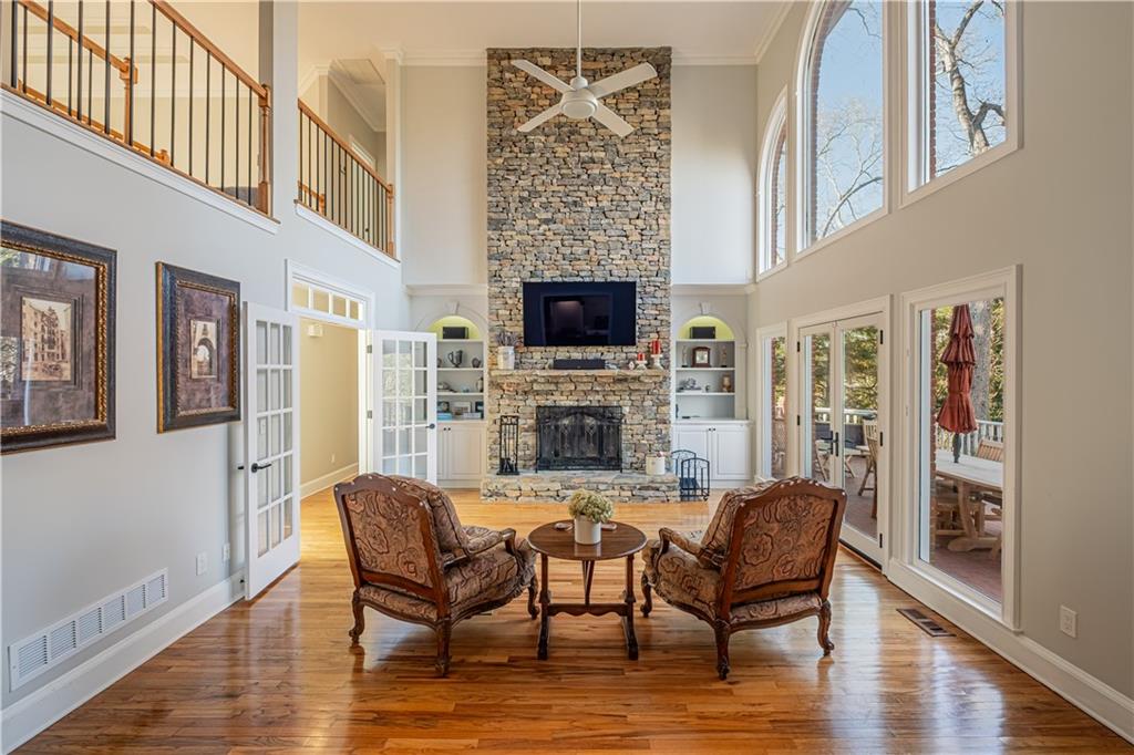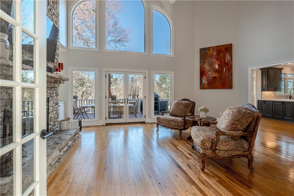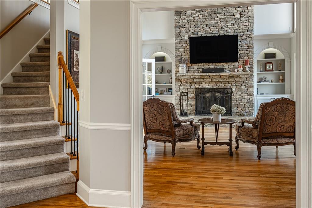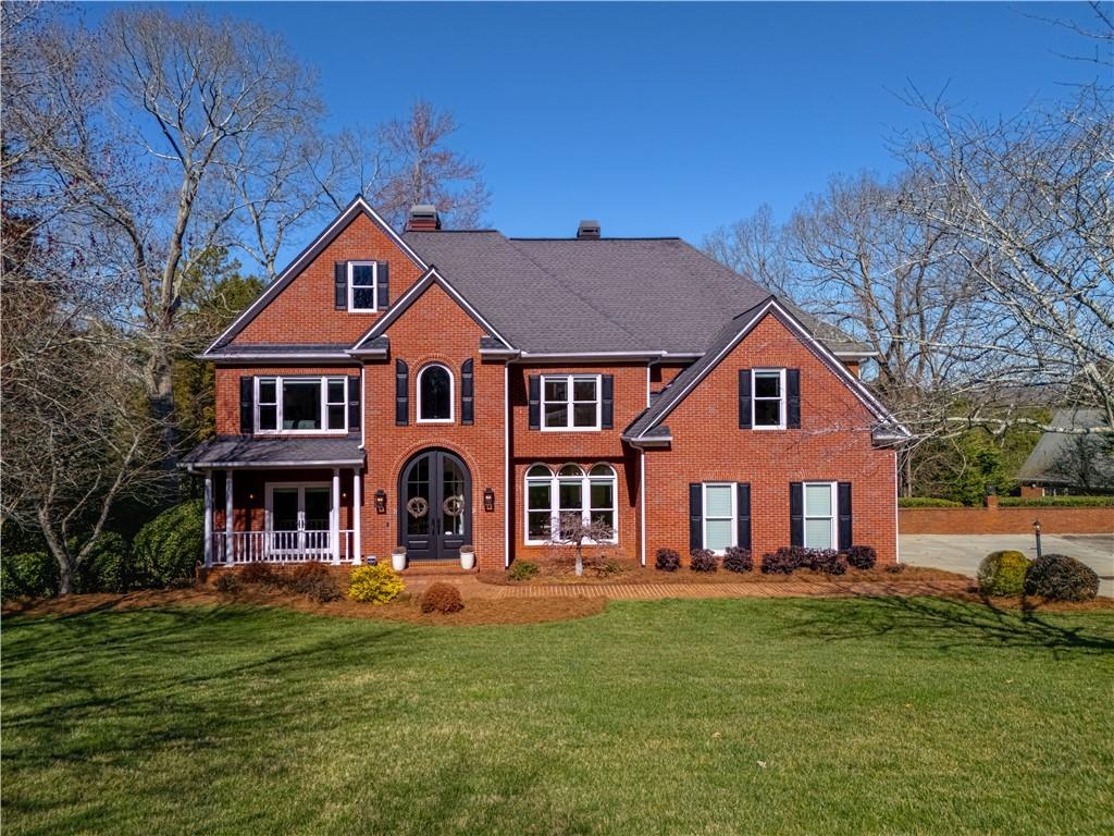 Prominently placed in prestigious Cherokee Forrest community, 4306 Tall Hickory Trail is a stunning 6-bedroom, 5-bathroom Traditional Georgian Revival that perfectly blends timeless elegance with modern luxury. Set on 1.72 acres, this four-sided brick Traditional Georgian Revival home spans 5,734 sq. ft., offering a grand yet inviting presence. From its striking 9' metal double front doors to its thoughtfully designed interior, this home is a true masterpiece of craftsmanship and style. Step inside to be greeted by a two-story foyer that leads into the heart of the home, where soaring 26-ft. ceilings and a dramatic stack-stone fireplace make the great room a showstopper. The recently renovated chef's kitchen boasts custom cabinetry, quartz countertops, a high-end gas range, stainless steel appliances, and a walk-in pantry, ensuring both beauty and functionality. A formal dining room, private study/library with custom built-ins, and spacious breakfast area create a seamless flow for entertaining and everyday living. The primary suite is a private retreat featuring a cozy sitting area with a fireplace, a spa-like ensuite bath with a freestanding soaking tub, glass-enclosed shower, and an expansive walk-in closet. The additional bedrooms are generously sized, with beautifully updated bathrooms and ample closet space. The fully finished terrace level offers versatility, complete with a secondary kitchen, bedroom, full bath, and a spacious recreation area-perfect for an in-law suite, home theater, or gym. Outdoor living is just as spectacular, with an expansive deck overlooking the fenced backyard, ideal for entertaining or enjoying peaceful evenings. The property extends to a gazebo and private wooded retreat, providing a tranquil escape. With professional landscaping and ample green space, this home offers a perfect balance of privacy and community living. Located in the highly sought-after North Hall school district, this home is just minutes from Lake Lanier and offers exclusive access to tennis courts, a pool, a playground, and scenic walking trails. With its prime location near Gainesville's shopping, dining, and outdoor recreation, 4306 Tall Hickory Trail is an exceptional opportunity to own a grand estate with modern updates in one of the area's most desirable neighborhoods. Schedule your private showing today!