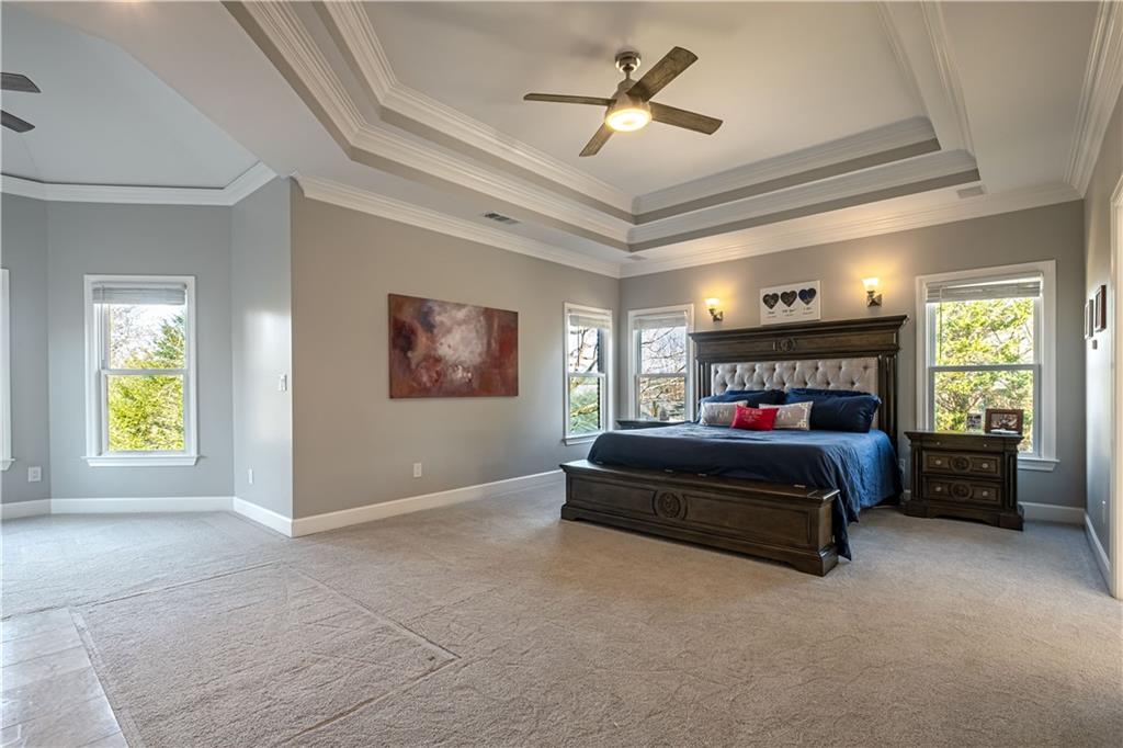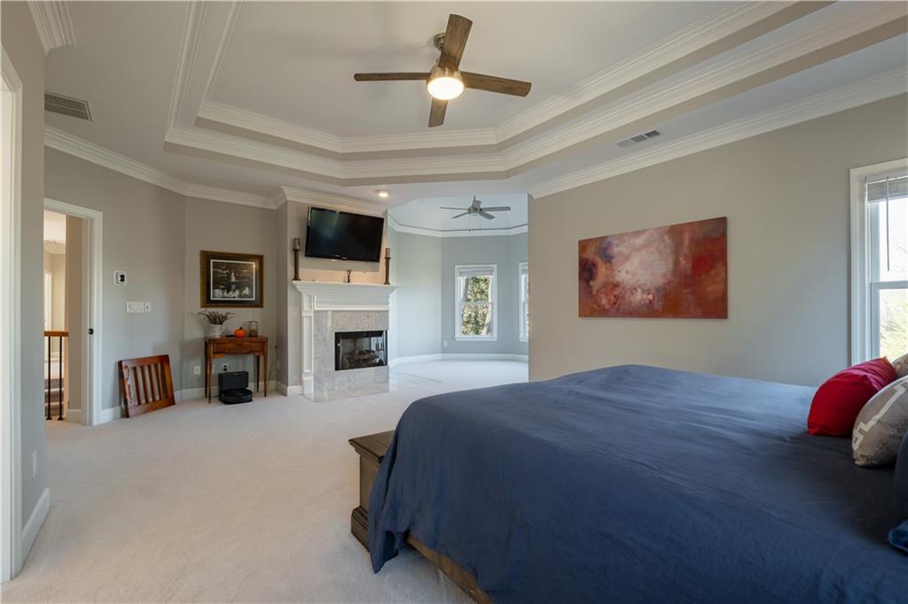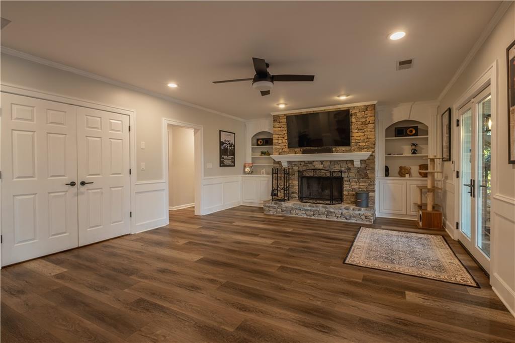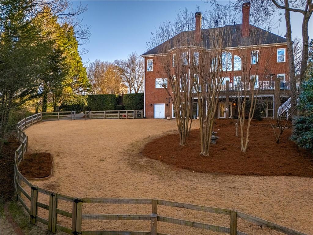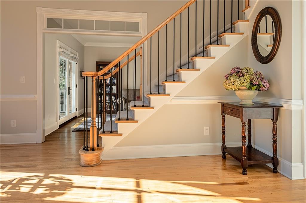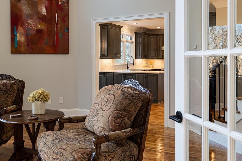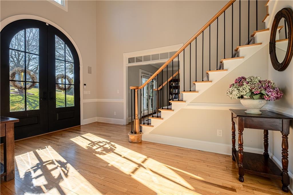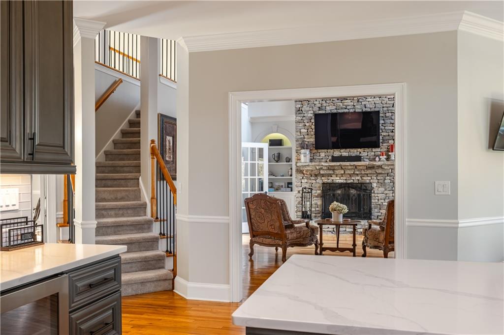 Prominently placed in prestigious Cherokee Forrest community, 4306 Tall Hickory Trail is a stunning 6-bedroom, 5-bathroom Traditional Georgian Revival that perfectly blends timeless elegance with modern luxury. Set on 1.72 acres, this four-sided brick Traditional Georgian Revival home spans 5,734 sq. ft., offering a grand yet inviting presence. From its striking 9' metal double front doors to its thoughtfully designed interior, this home is a true masterpiece of craftsmanship and style. Step inside to be greeted by a two-story foyer that leads into the heart of the home, where soaring 26-ft. ceilings and a dramatic stack-stone fireplace make the great room a showstopper. The recently renovated chef's kitchen boasts custom cabinetry, quartz countertops, a high-end gas range, stainless steel appliances, and a walk-in pantry, ensuring both beauty and functionality. A formal dining room, private study/library with custom built-ins, and spacious breakfast area create a seamless flow for entertaining and everyday living. The primary suite is a private retreat featuring a cozy sitting area with a fireplace, a spa-like ensuite bath with a freestanding soaking tub, glass-enclosed shower, and an expansive walk-in closet. The additional bedrooms are generously sized, with beautifully updated bathrooms and ample closet space. The fully finished terrace level offers versatility, complete with a secondary kitchen, bedroom, full bath, and a spacious recreation area-perfect for an in-law suite, home theater, or gym. Outdoor living is just as spectacular, with an expansive deck overlooking the fenced backyard, ideal for entertaining or enjoying peaceful evenings. The property extends to a gazebo and private wooded retreat, providing a tranquil escape. With professional landscaping and ample green space, this home offers a perfect balance of privacy and community living. Located in the highly sought-after North Hall school district, this home is just minutes from Lake Lanier and offers exclusive access to tennis courts, a pool, a playground, and scenic walking trails. With its prime location near Gainesville's shopping, dining, and outdoor recreation, 4306 Tall Hickory Trail is an exceptional opportunity to own a grand estate with modern updates in one of the area's most desirable neighborhoods. Schedule your private showing today!