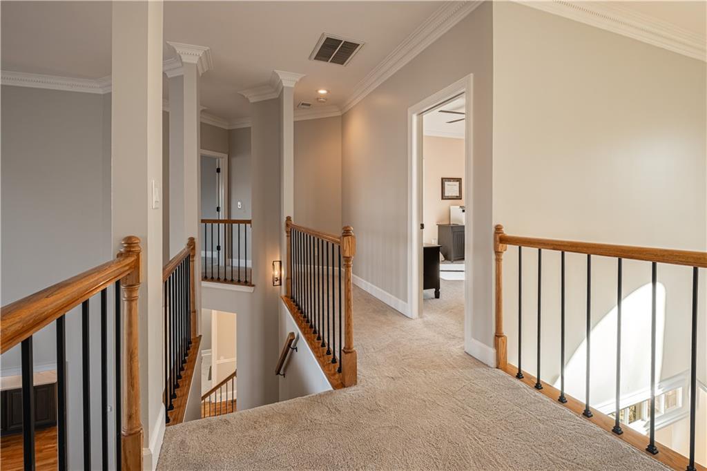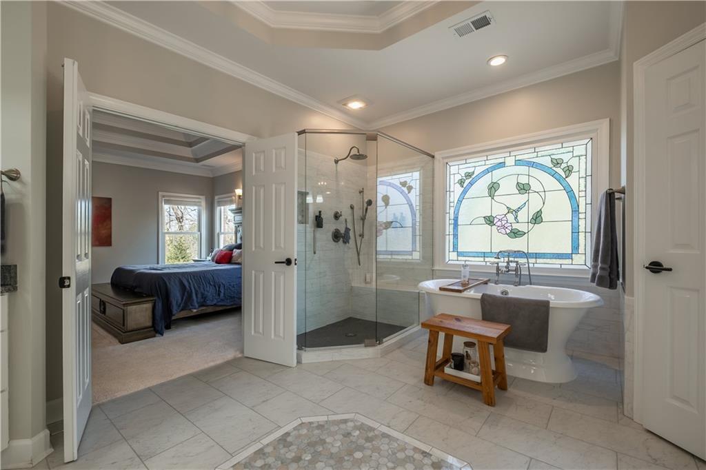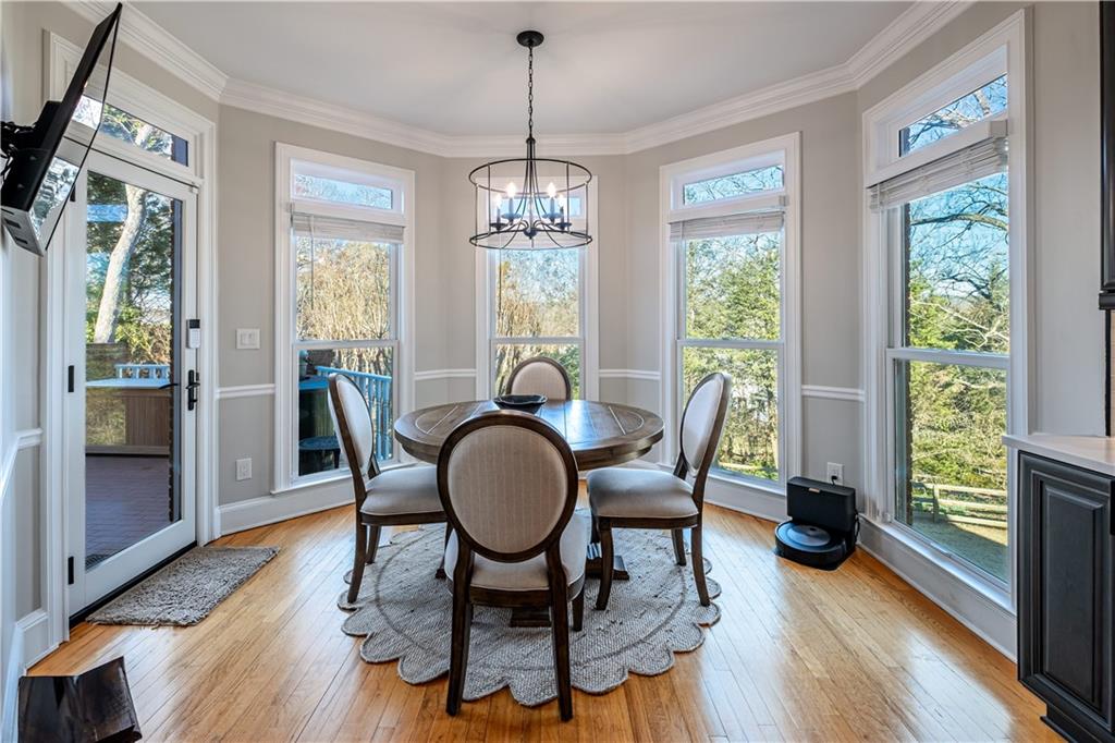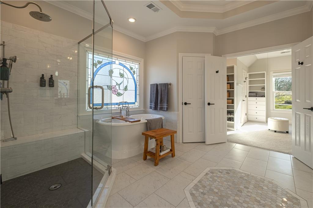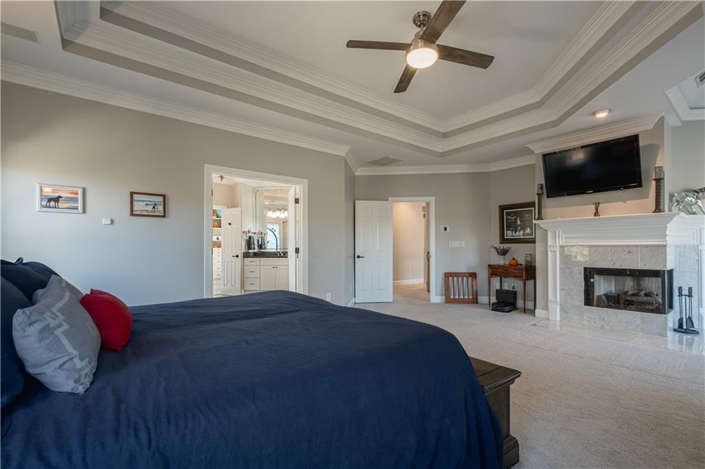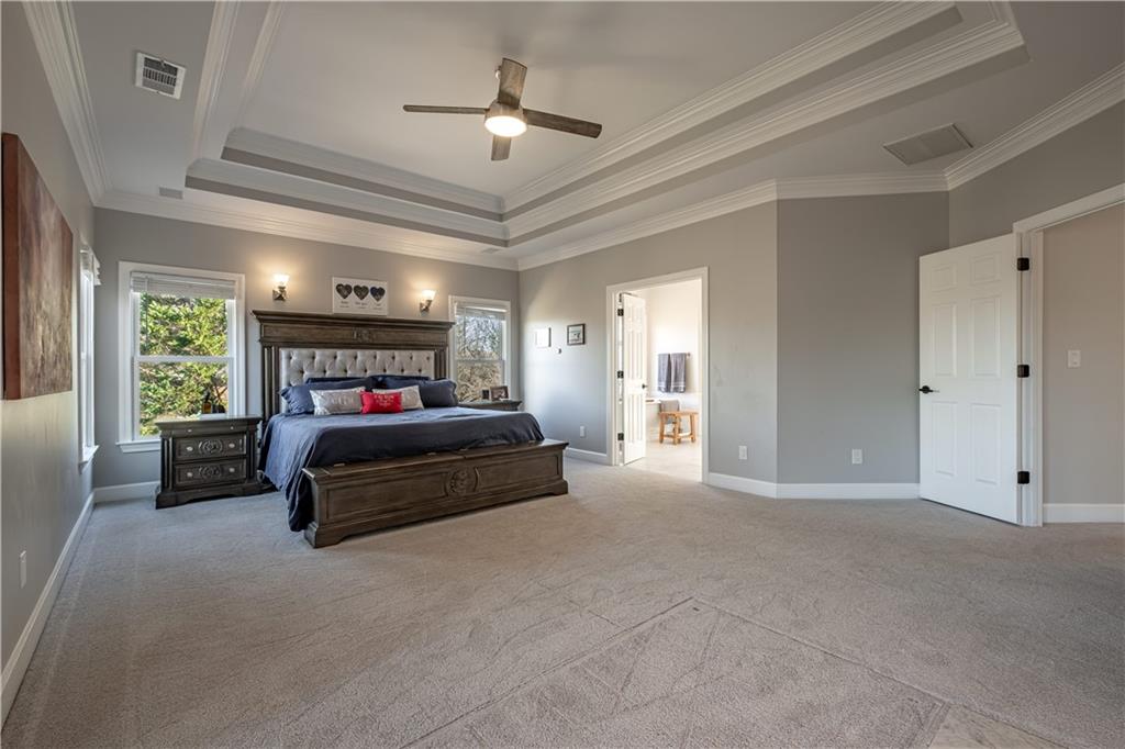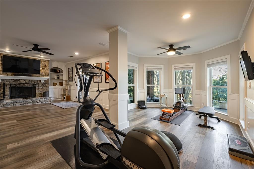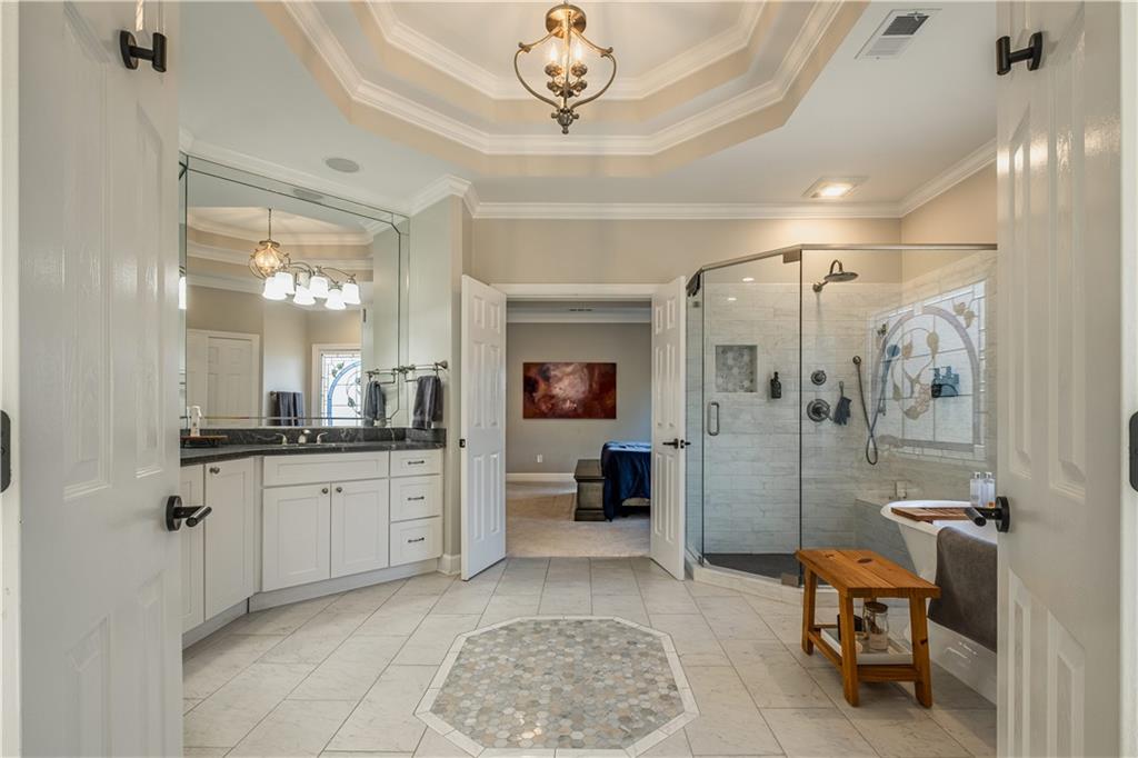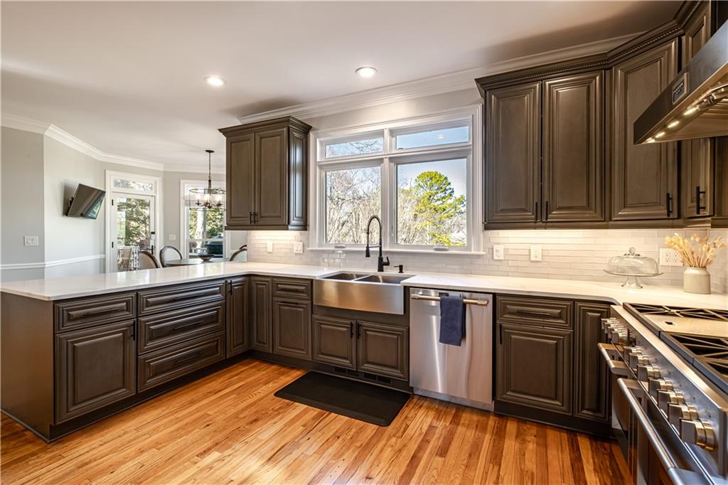 Prominently placed in prestigious Cherokee Forrest community, 4306 Tall Hickory Trail is a stunning 6-bedroom, 5-bathroom Traditional Georgian Revival that perfectly blends timeless elegance with modern luxury. Set on 1.72 acres, this four-sided brick Traditional Georgian Revival home spans 5,734 sq. ft., offering a grand yet inviting presence. From its striking 9' metal double front doors to its thoughtfully designed interior, this home is a true masterpiece of craftsmanship and style. Step inside to be greeted by a two-story foyer that leads into the heart of the home, where soaring 26-ft. ceilings and a dramatic stack-stone fireplace make the great room a showstopper. The recently renovated chef's kitchen boasts custom cabinetry, quartz countertops, a high-end gas range, stainless steel appliances, and a walk-in pantry, ensuring both beauty and functionality. A formal dining room, private study/library with custom built-ins, and spacious breakfast area create a seamless flow for entertaining and everyday living. The primary suite is a private retreat featuring a cozy sitting area with a fireplace, a spa-like ensuite bath with a freestanding soaking tub, glass-enclosed shower, and an expansive walk-in closet. The additional bedrooms are generously sized, with beautifully updated bathrooms and ample closet space. The fully finished terrace level offers versatility, complete with a secondary kitchen, bedroom, full bath, and a spacious recreation area-perfect for an in-law suite, home theater, or gym. Outdoor living is just as spectacular, with an expansive deck overlooking the fenced backyard, ideal for entertaining or enjoying peaceful evenings. The property extends to a gazebo and private wooded retreat, providing a tranquil escape. With professional landscaping and ample green space, this home offers a perfect balance of privacy and community living. Located in the highly sought-after North Hall school district, this home is just minutes from Lake Lanier and offers exclusive access to tennis courts, a pool, a playground, and scenic walking trails. With its prime location near Gainesville's shopping, dining, and outdoor recreation, 4306 Tall Hickory Trail is an exceptional opportunity to own a grand estate with modern updates in one of the area's most desirable neighborhoods. Schedule your private showing today!