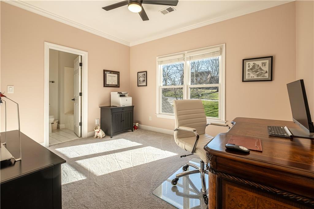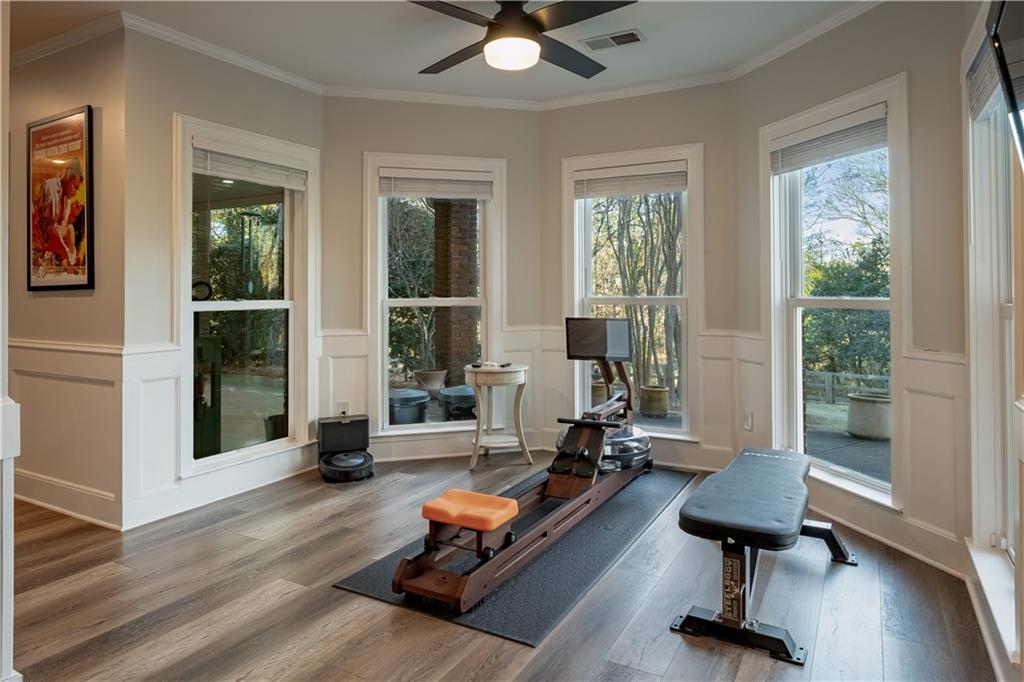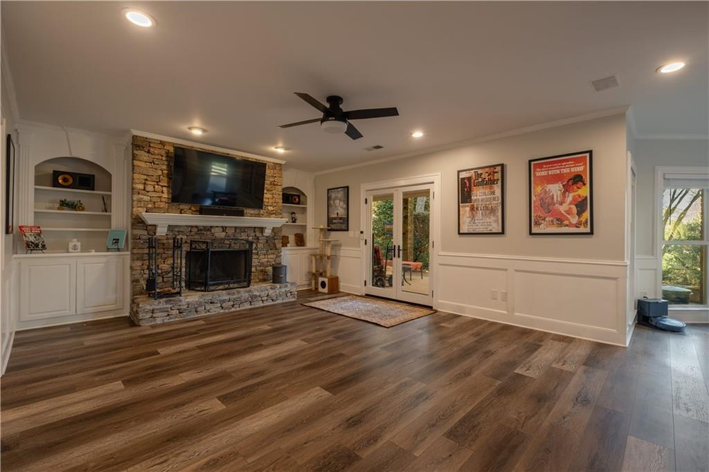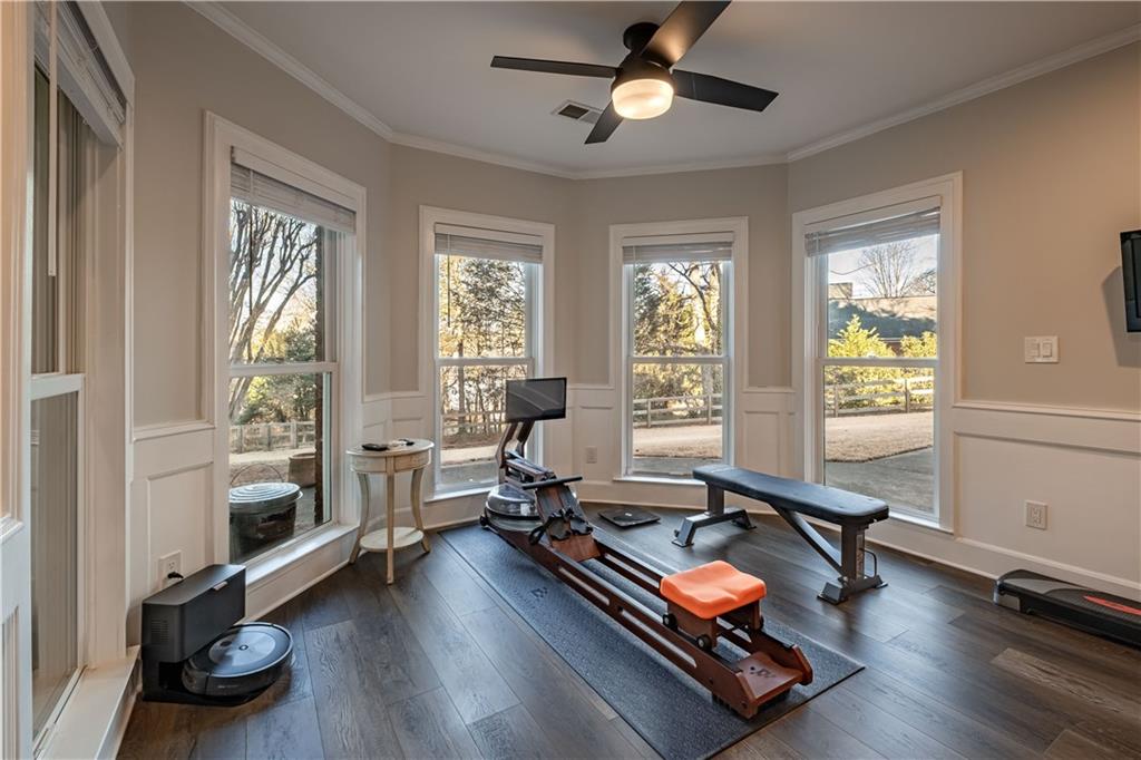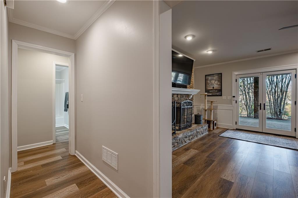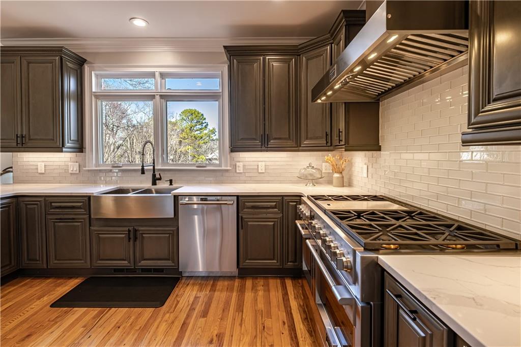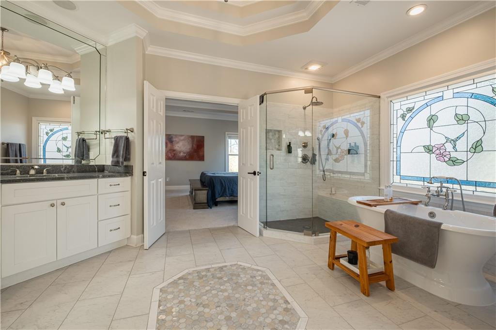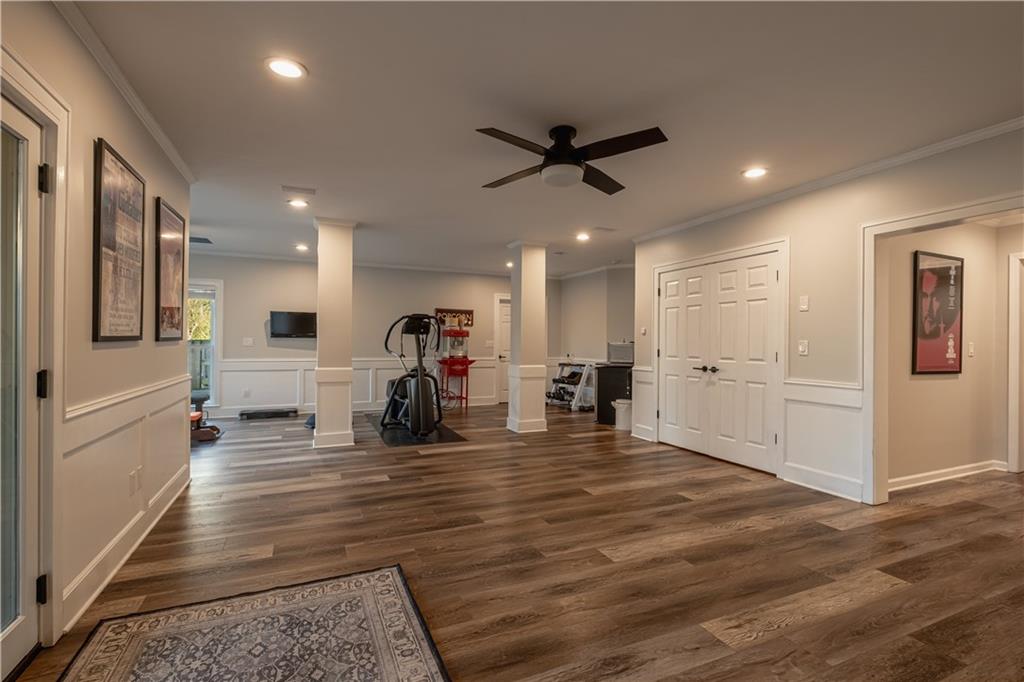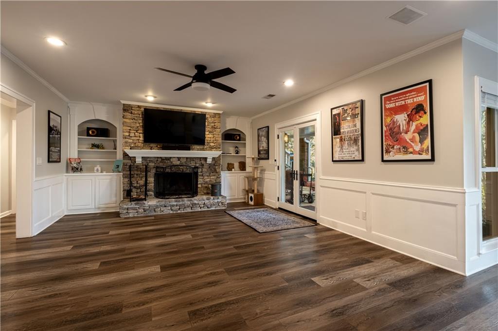Prominently placed in prestigious Cherokee Forrest community, 4306 Tall Hickory Trail is a stunning 6-bedroom, 5-bathroom Traditional Georgian Revival that perfectly blends timeless elegance with modern luxury. Set on 1.72 acres, this four-sided brick Traditional Georgian Revival home spans 5,734 sq. ft., offering a grand yet inviting presence. From its striking 9' metal double front doors to its thoughtfully designed interior, this home is a true masterpiece of craftsmanship and style. Step inside to be greeted by a two-story foyer that leads into the heart of the home, where soaring 26-ft. ceilings and a dramatic stack-stone fireplace make the great room a showstopper. The recently renovated chef's kitchen boasts custom cabinetry, quartz countertops, a high-end gas range, stainless steel appliances, and a walk-in pantry, ensuring both beauty and functionality. A formal dining room, private study/library with custom built-ins, and spacious breakfast area create a seamless flow for entertaining and everyday living. The primary suite is a private retreat featuring a cozy sitting area with a fireplace, a spa-like ensuite bath with a freestanding soaking tub, glass-enclosed shower, and an expansive walk-in closet. The additional bedrooms are generously sized, with beautifully updated bathrooms and ample closet space. The fully finished terrace level offers versatility, complete with a secondary kitchen, bedroom, full bath, and a spacious recreation area-perfect for an in-law suite, home theater, or gym. Outdoor living is just as spectacular, with an expansive deck overlooking the fenced backyard, ideal for entertaining or enjoying peaceful evenings. The property extends to a gazebo and private wooded retreat, providing a tranquil escape. With professional landscaping and ample green space, this home offers a perfect balance of privacy and community living. Located in the highly sought-after North Hall school district, this home is just minutes from Lake Lanier and offers exclusive access to tennis courts, a pool, a playground, and scenic walking trails. With its prime location near Gainesville's shopping, dining, and outdoor recreation, 4306 Tall Hickory Trail is an exceptional opportunity to own a grand estate with modern updates in one of the area's most desirable neighborhoods. Schedule your private showing today!