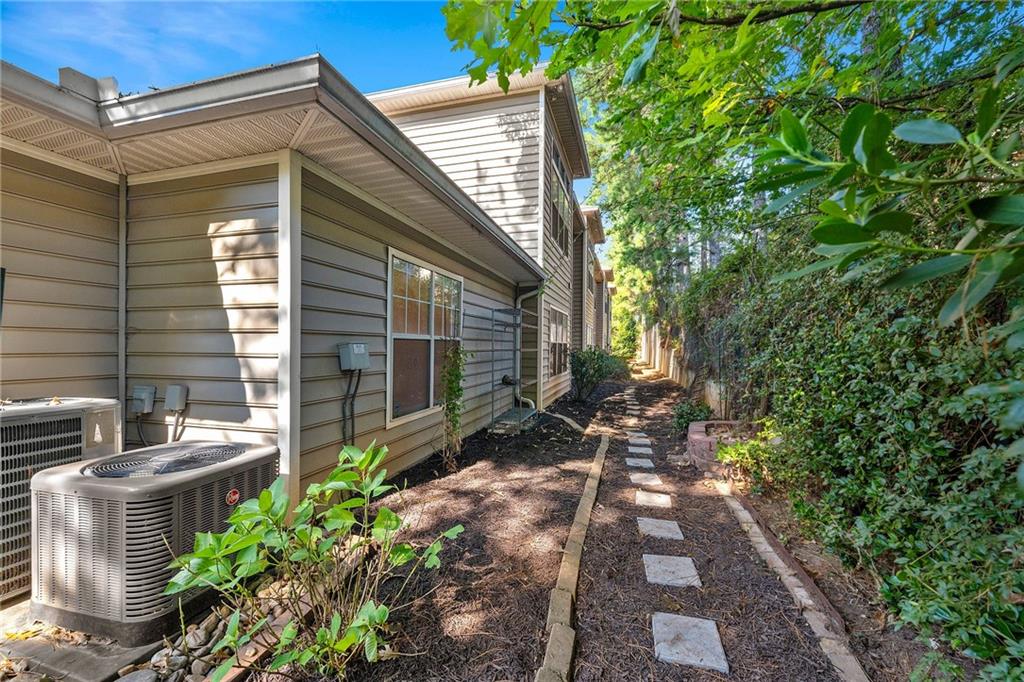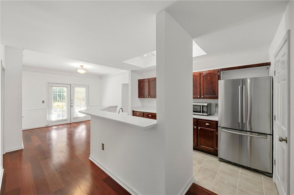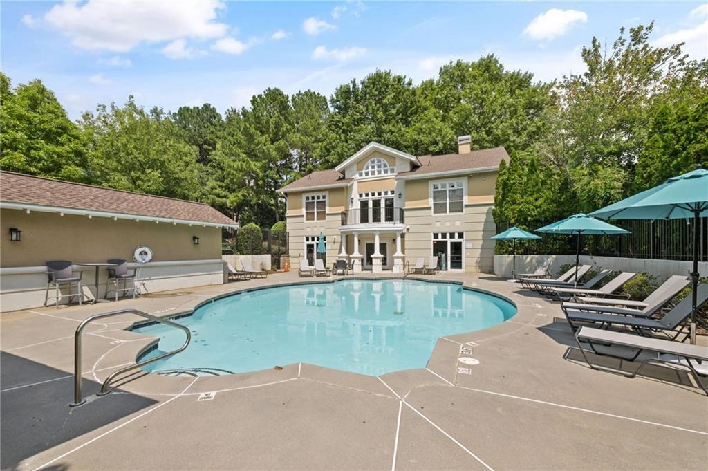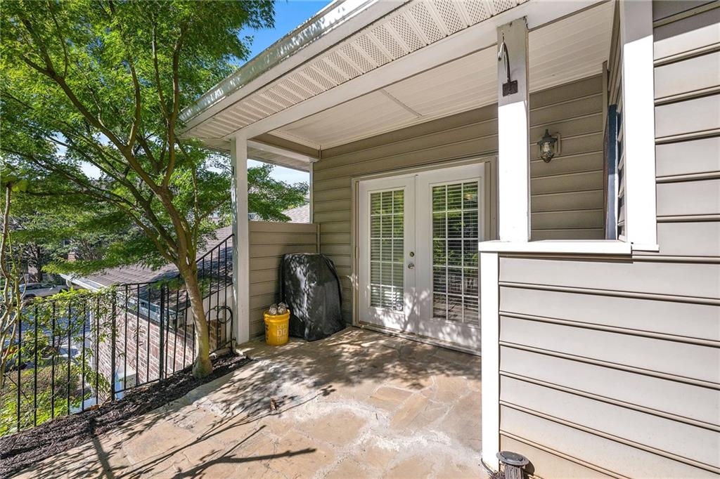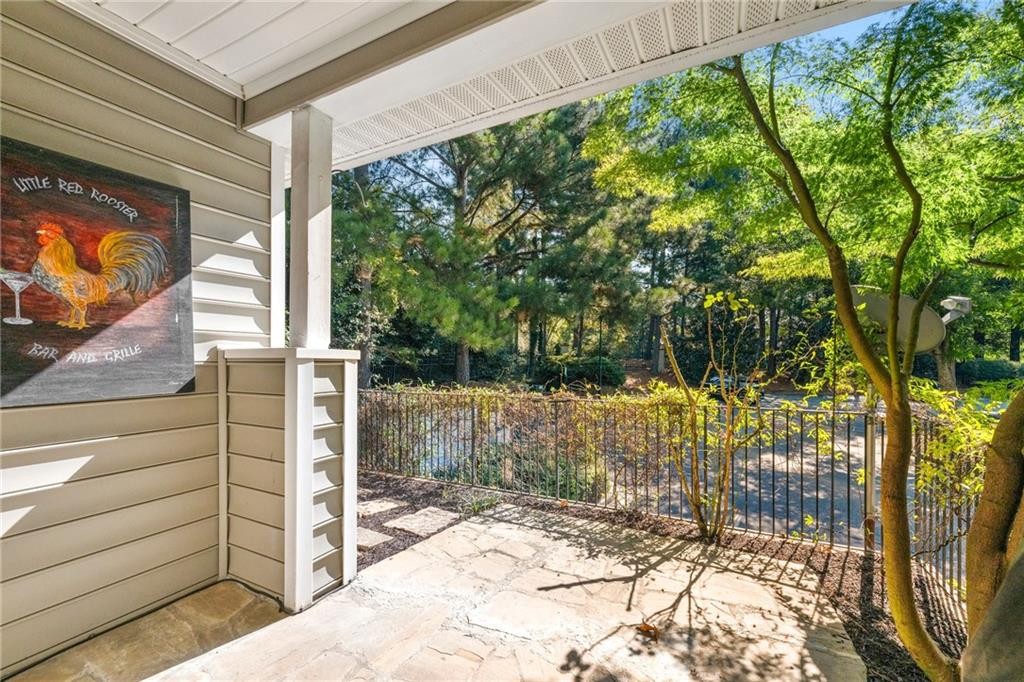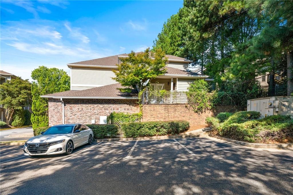 Rare end-unit townhouse in Carrington Park with a one-car garage, driveway, and private patio! This is one of only two units in the community featuring a private patio and expansive outdoor space. Wonderful location near all the attractions of Buckhead, yet tucked away in a private, gated community. Upon entering this townhouse-style condo, you'll find a welcoming foyer leading to the main level. The spacious main floor boasts gleaming hardwood floors and an open-concept layout connecting the kitchen, dining area, and living room. The updated kitchen is equipped with stainless steel appliances, a breakfast bar, solid surface countertops, and an open view into the living room. The dining area overlooks the private, covered patio in the back. The home features a roommate-style floorplan with en suites in both bedrooms. The primary bedroom offers a walk-in closet and an en suite with a tub/shower combo. The one-car garage includes additional storage space. The newer washer/dryer and refrigerator are included with the property. Immaculately maintained by the owner, with fresh paint throughout, new countertops in 2022, and a roof that’s just one year old. Conveniently located near GA400, I-85, I-75, and all that Buckhead has to offer. FHA approved!