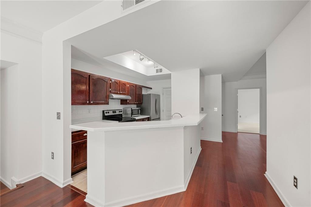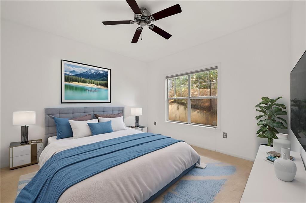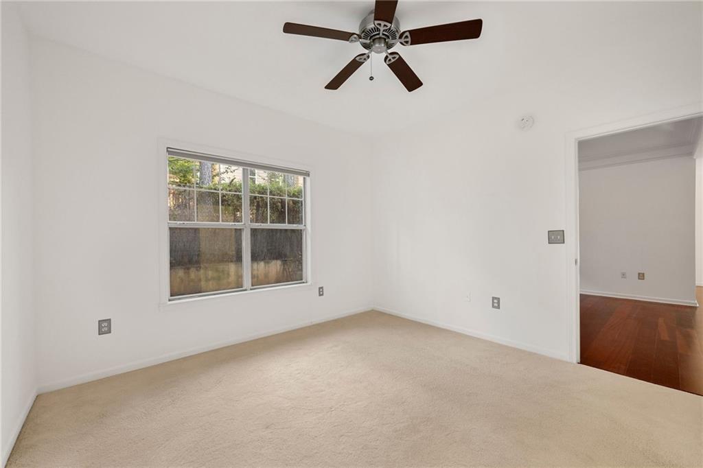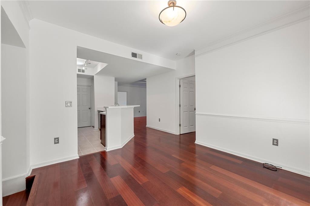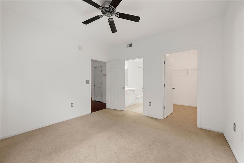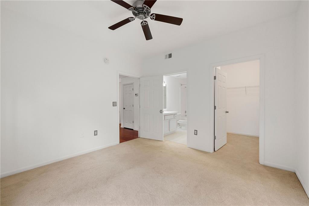 Rare end-unit townhouse in Carrington Park with a one-car garage, driveway, and private patio! This is one of only two units in the community featuring a private patio and expansive outdoor space. Wonderful location near all the attractions of Buckhead, yet tucked away in a private, gated community. Upon entering this townhouse-style condo, you'll find a welcoming foyer leading to the main level. The spacious main floor boasts gleaming hardwood floors and an open-concept layout connecting the kitchen, dining area, and living room. The updated kitchen is equipped with stainless steel appliances, a breakfast bar, solid surface countertops, and an open view into the living room. The dining area overlooks the private, covered patio in the back. The home features a roommate-style floorplan with en suites in both bedrooms. The primary bedroom offers a walk-in closet and an en suite with a tub/shower combo. The one-car garage includes additional storage space. The newer washer/dryer and refrigerator are included with the property. Immaculately maintained by the owner, with fresh paint throughout, new countertops in 2022, and a roof that’s just one year old. Conveniently located near GA400, I-85, I-75, and all that Buckhead has to offer. FHA approved!