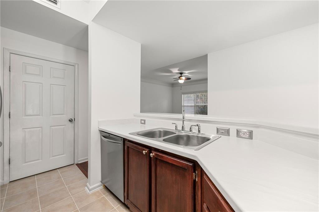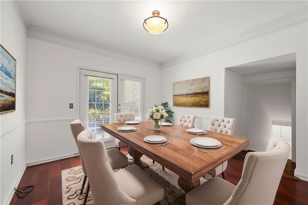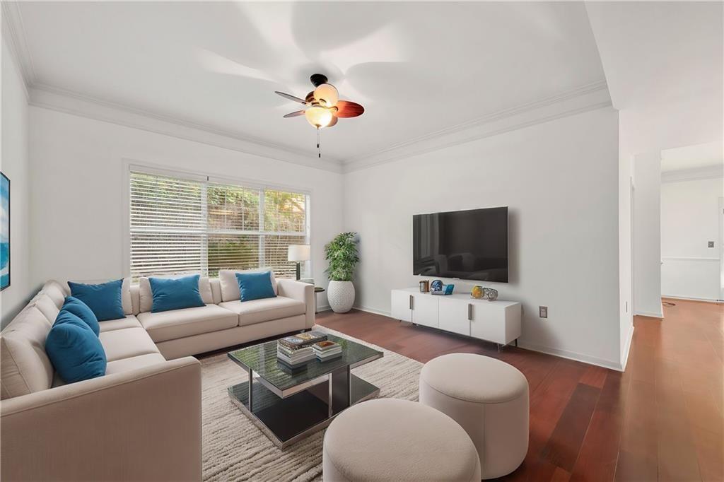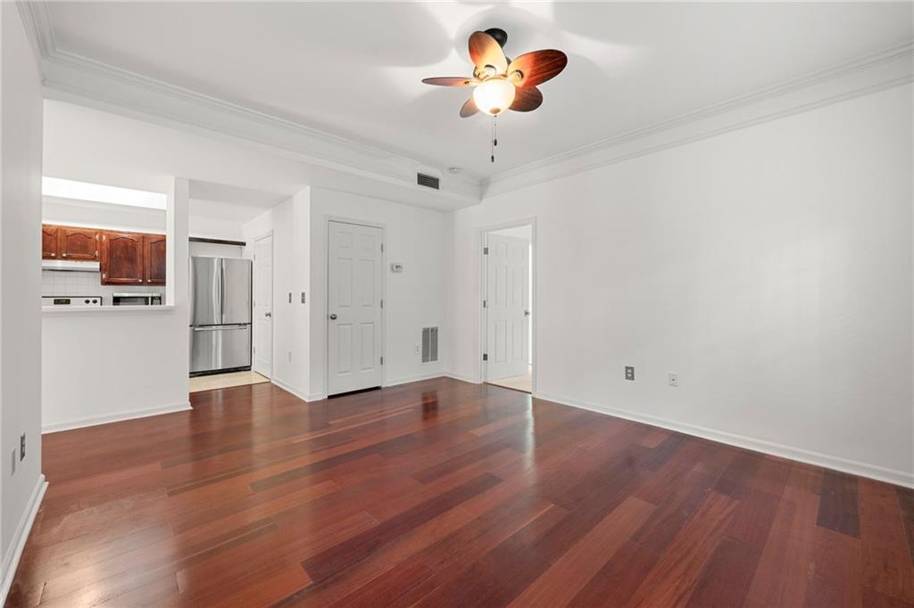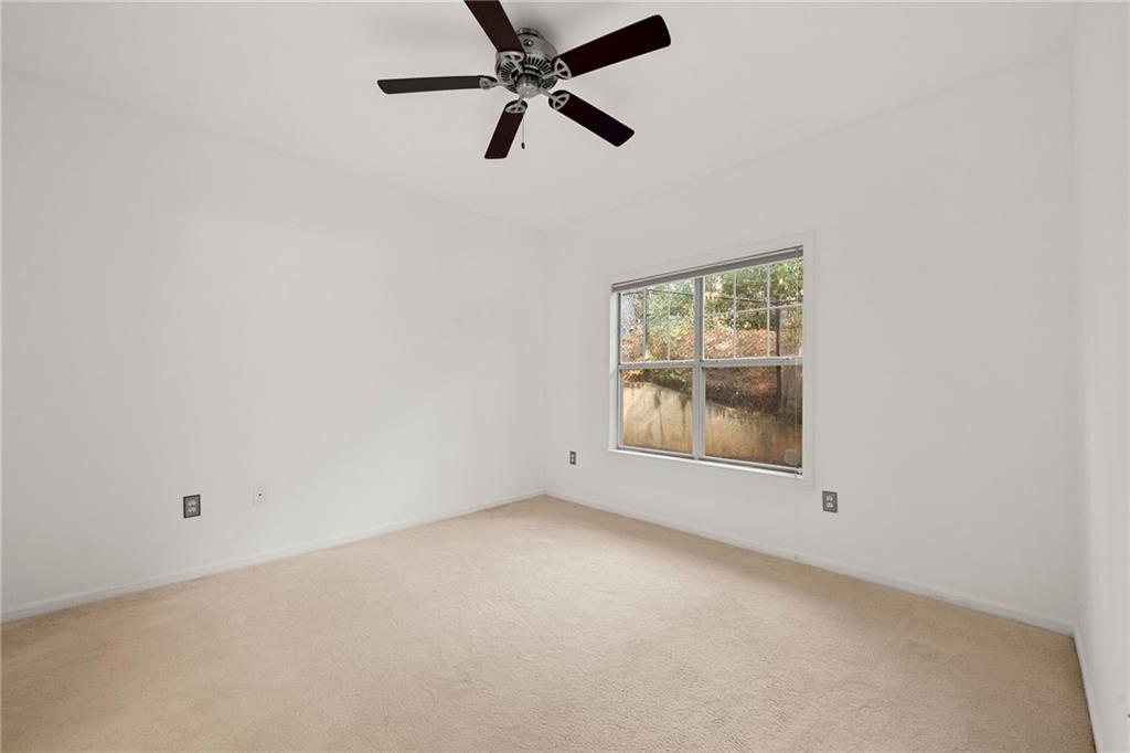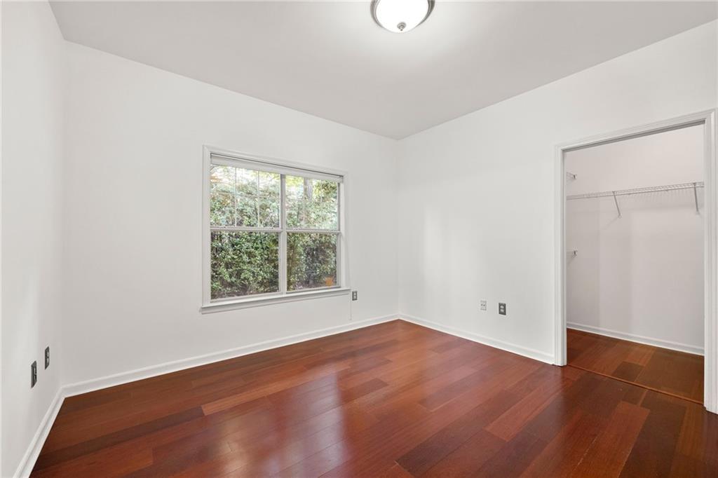 Rare end-unit townhouse in Carrington Park with a one-car garage, driveway, and private patio! This is one of only two units in the community featuring a private patio and expansive outdoor space. Wonderful location near all the attractions of Buckhead, yet tucked away in a private, gated community. Upon entering this townhouse-style condo, you'll find a welcoming foyer leading to the main level. The spacious main floor boasts gleaming hardwood floors and an open-concept layout connecting the kitchen, dining area, and living room. The updated kitchen is equipped with stainless steel appliances, a breakfast bar, solid surface countertops, and an open view into the living room. The dining area overlooks the private, covered patio in the back. The home features a roommate-style floorplan with en suites in both bedrooms. The primary bedroom offers a walk-in closet and an en suite with a tub/shower combo. The one-car garage includes additional storage space. The newer washer/dryer and refrigerator are included with the property. Immaculately maintained by the owner, with fresh paint throughout, new countertops in 2022, and a roof that’s just one year old. Conveniently located near GA400, I-85, I-75, and all that Buckhead has to offer. FHA approved!