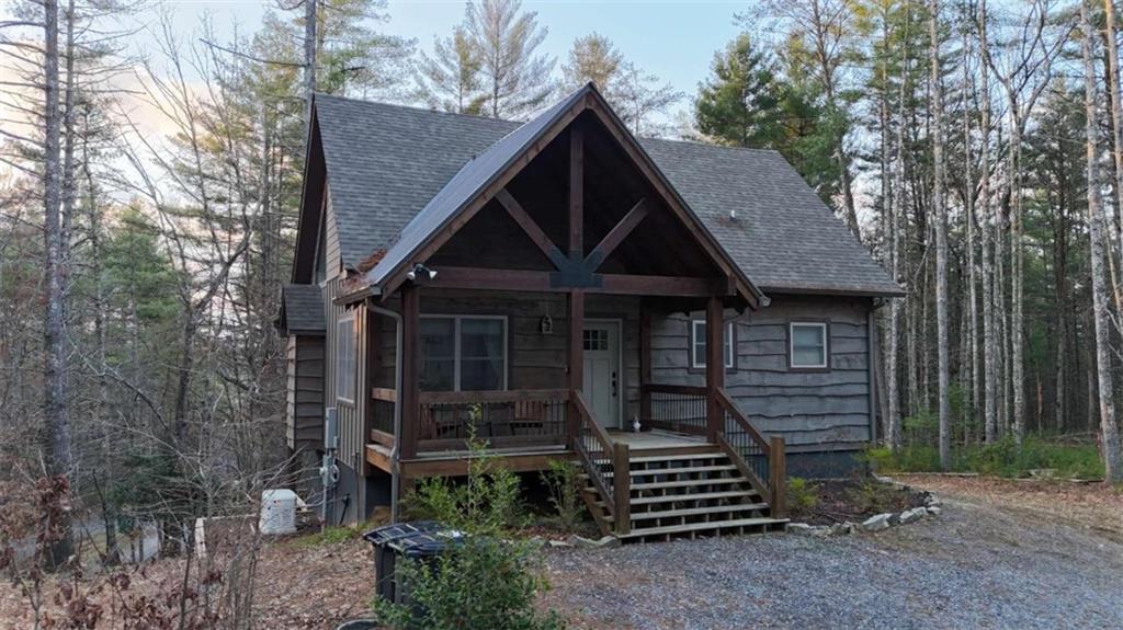 Fully furnished modern cabin tucked away in the winding mountain roads of Mineral Bluff just outside of Blue Ridge. Ample parking for multiple vehicles in the gravel drive. The exterior of the home offer live edge siding, covered porches on front and back with a generac generator for back-up electricity. Upon entering, you will find a vaulted great room with fireplace and sliding doors leading to the back porch, solid surface counters in the kitchen and a spacious dining area. Master bedroom and full bathroom on the main level with french doors leading to the back deck. Upstairs in the loft area is the 2nd bedroom with a full bathroom. On the lower level is a family room with sliding door to the rear patio, a third bedroom and a full bath. This home was previously a five star Air-bnb called The Wildflower Cabin and is decorated tastefully to welcome guests with all furnishings and decor included in the sale.