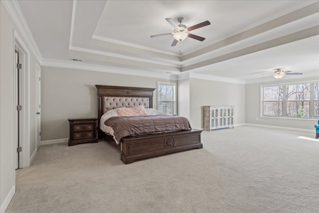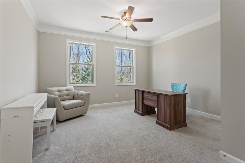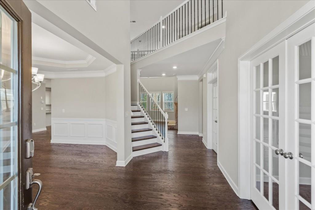 Located in the prestigious Chatsworth Manor community, this exceptional 6-bedroom, 5-bathroom estate offers luxury, functionality, and unparalleled craftsmanship. Freshly painted with refinished hardwood floors on the main level, this home features a seamless open-concept design ideal for both daily living and entertaining. Step inside to find two home offices with French doors on the main level, a formal dining room, and a sunroom that floods the home with natural light. The two-story great room, highlighted by a striking stone fireplace, flows into a chef's kitchen featuring white cabinetry, granite countertops, a large island, stainless steel appliances, and a walk-in pantry. A spacious guest or in-law suite with a full bath completes the main level. Upstairs, the primary suite includes a private sitting area, ample natural light, and direct access to the laundry room. The spa-like master bath has a double vanity, soaking tub, large shower, and a walk-in closet. Three additional bedrooms - one with an en-suite and two with a Jack-and-Jill layout - provide plenty of space for family or guests. The fully finished, professionally designed basement is an entertainer's dream, featuring a custom stone bar with wine storage, a media area, and multiple entertainment spaces, plus an additional bedroom and bath. Step outside to enjoy a private backyard with no rear neighbors, complete with a covered patio, a deck, a fire pit, and raised garden beds. A three-car garage and thoughtfully designed mudroom add convenience and functionality. This remarkable home offers an unbeatable combination of elegance and comfort - schedule your private tour today!