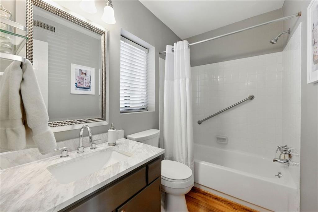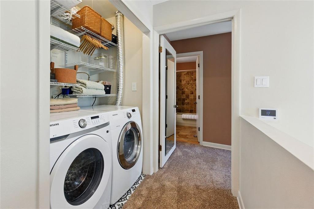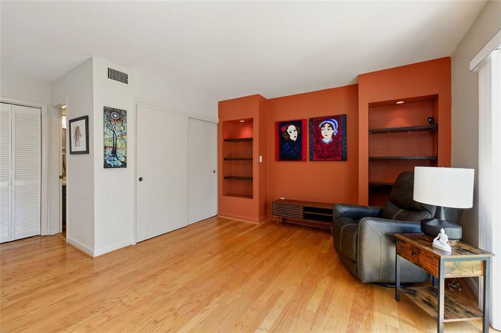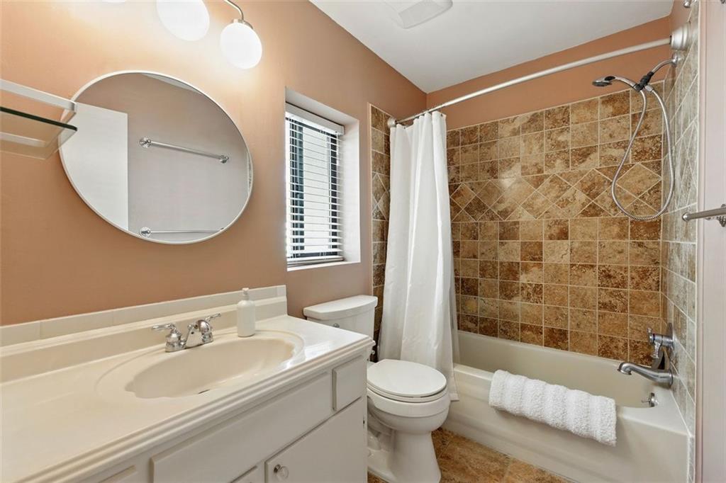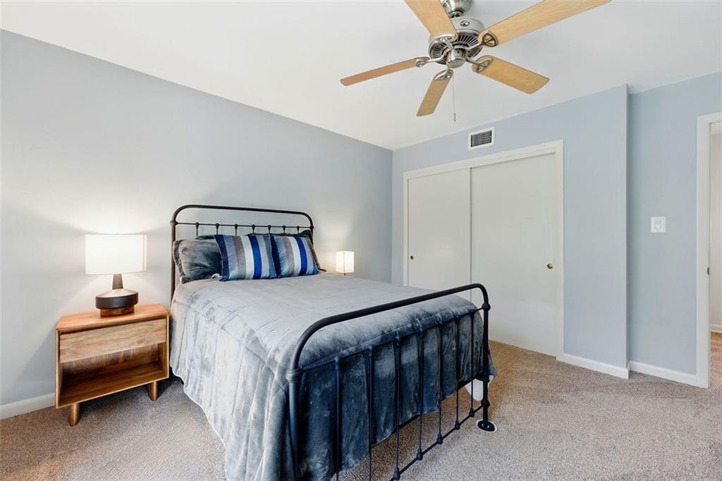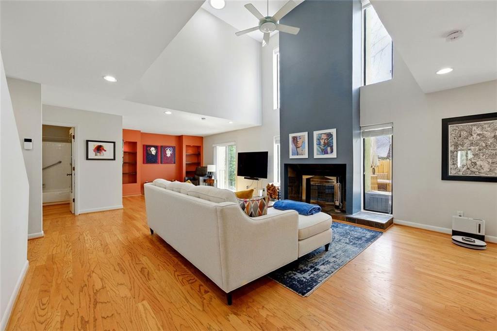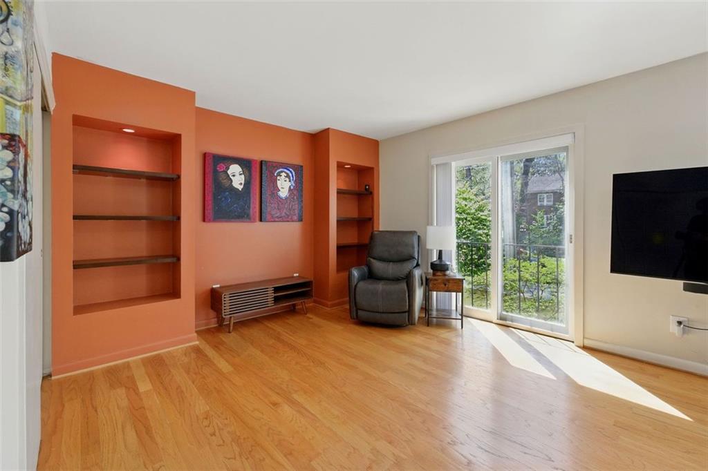 These midcentury modern condos are rarely on the market -- and almost never with new HVAC and a new roof! This 3 bedroom, 3 bath end unit sits in the quiet Chimneys community of Druid Hills and is adjacent to Paideia, Olmsted Linear Park and the Path . . . and also within walking distance to the Beltline, Virginia Highlands, and Little Five Points. The spacious and open main level floor plan features a double height living room, gleaming hardwood floors, and a wood-burning fireplace, all open to the dining room and kitchen. The kitchen features stone countertops and wood cabinets in earthy tones to complete the MCM aesthetic as well as stainless appliances including a dual-fuel Dacor range. Upstairs has two spacious bedrooms, two bathrooms, and laundry. The lower terrace level third bedroom has plenty of storage and natural light with walk-out sliding glass door and a private terraced patio. Outside, stairs lead to a patio area off of the main living level where you'll find a natural gas connection for grill. Low HOA and two dedicated parking spaces make this condo one you simply must see!
