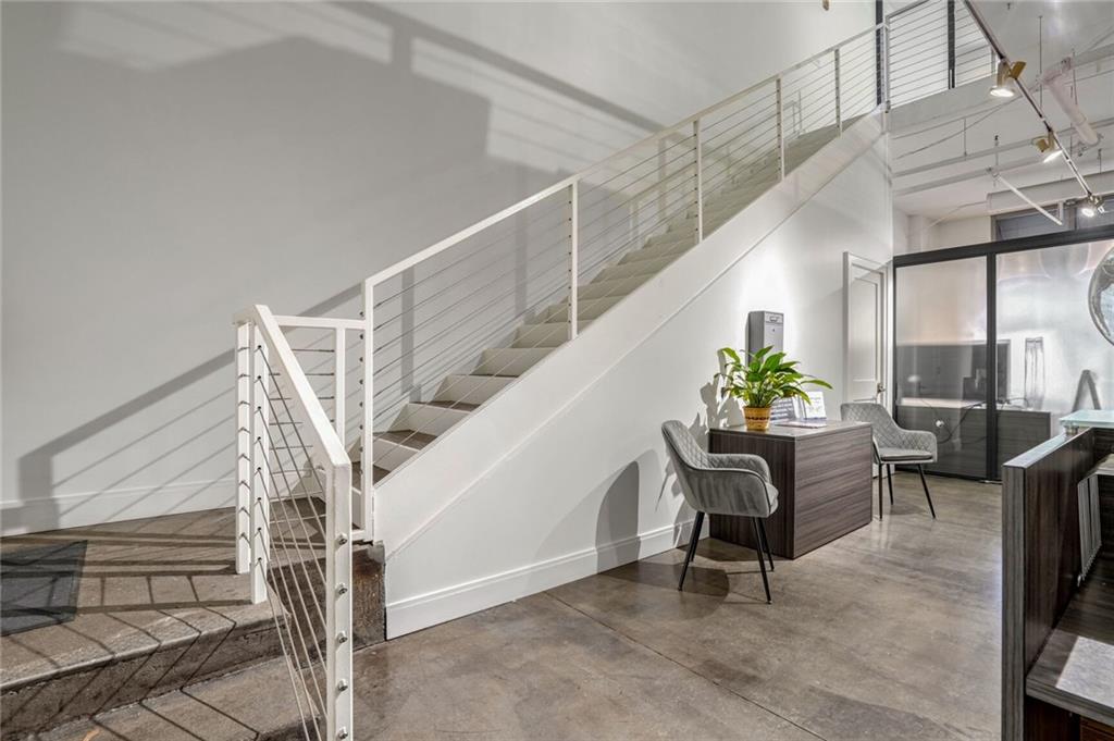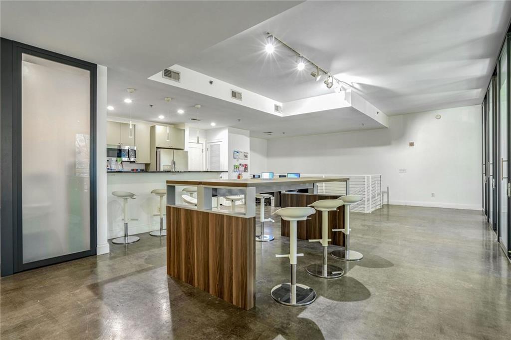 Contemporary Retail Street Level LIVE/WORK Townhouse Unit at Midtown's Sought After 905 Juniper Condo Building. This Unit is ideal for a real estate office, professional office or family office. Don't miss this opportunity! Just Over 2300 Square Feet, the unit is equipped with a kitchen, 1.5 baths (One full bath upstairs) and one deeded parking space in the secured garage. Best Location! The MARTA train is just blocks away, while Midtown offers dozens of restaurants, shops, bars, coffee shops, etc. Walk to everything! Great for investors too -- this unit can be purchased and then leased to businesses seeking retail exposure and easy street access. Drive by to see the ideal location and siting. Owner / Agent. Also, the upstairs can be closed off and made into a residential condo unit. Currently used as a two story real estate office, the upstairs can be separated for residential live-work.