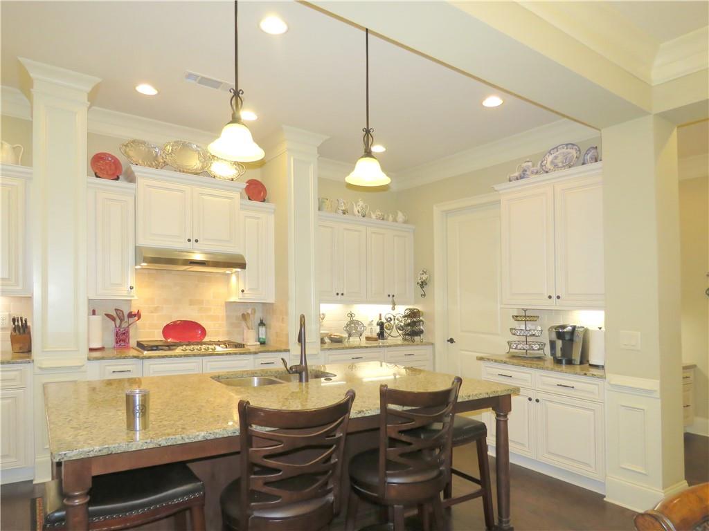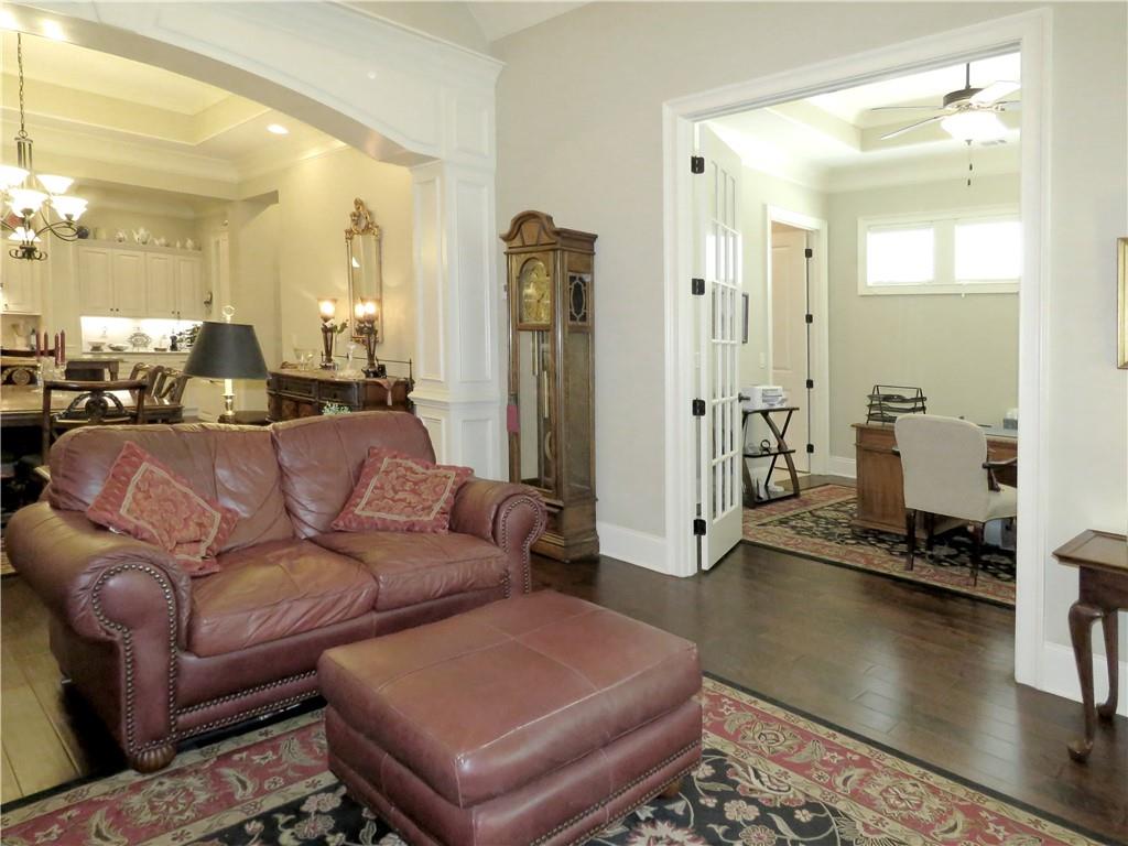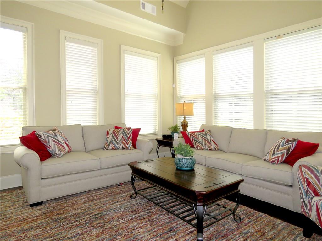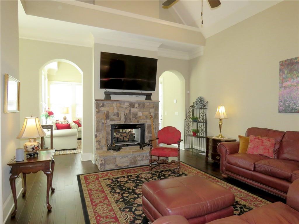 One of the best homes in this active adult community. When built with tremendous input from its one owner, all of the extras were added. Starting on the outside with its natural stone/stack stonework and landscaping, even more so than the others in this phase. This home is located in the first phase of this community. This section has homes with craftsman stone accents, greenbelts and a topography (see video) providing a more tranquil home than the later area to the northeast built without a lot of these natural benefits. Stepping inside this home, you are transported to the nicely-proportioned manor having well-appointed crown moldings and wainscoting, ten-foot ceilings and eight-foot solid wood doors. Where most homes in the complex have a screen porch, this home boasts a south facing sunroom leading to a private stone-scaped patio area with a natural gas grill hookup. The sunroom allows for a see-through double-sided fireplace with romantic gas logs and more stone accents, looking through to the large living room. Adjacent to the living room is a spacious 12+-seat dining room. The large country kitchen with its walk-in oversized pantry flows nicely into a large and comfortable entertainment area. On one side of the massive, vaulted area is an alcove leading to the main level master suite, with a large bedroom and sitting area, master bath with soaking tub, roll-in, stepless two-person shower, and a walk-in closet. On the other side of the central living area of the home are 16-pane French doors opening to an office/second bedroom with its own Hollywood-full bath, having a backdoor opening to a hallway, with the kitchen’s butler desk, the large laundry room and the two-car garage with a work area and storage room. There is a wide fixed stairway to a very large third bedroom/craft room with two walk-in closets, one of which has a full-size door leading to a spacious attic storage room. This second level also has a third full bath. The home also has extras such as dual water heaters, a new main line and video monitoring and security systems. Even though interior and exterior video and a 3D immersion walk-through are available for this home, you must see inside to experience its elegant comfort and massive feel.