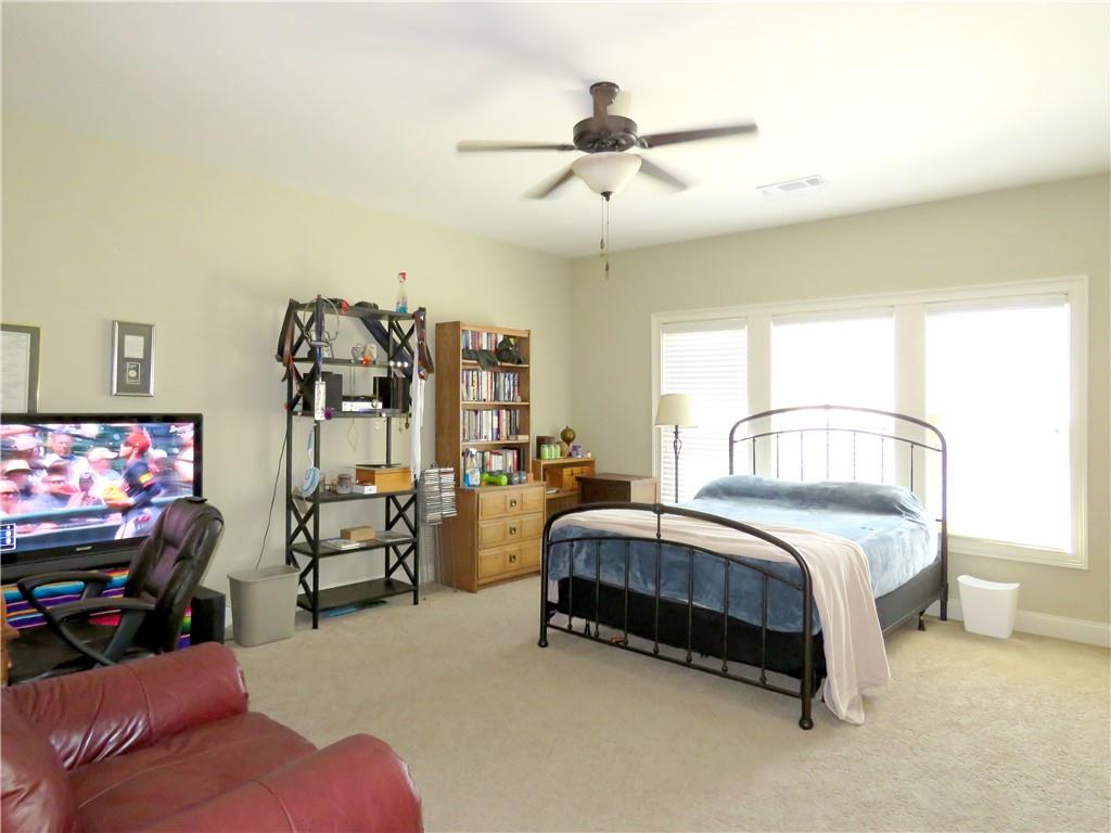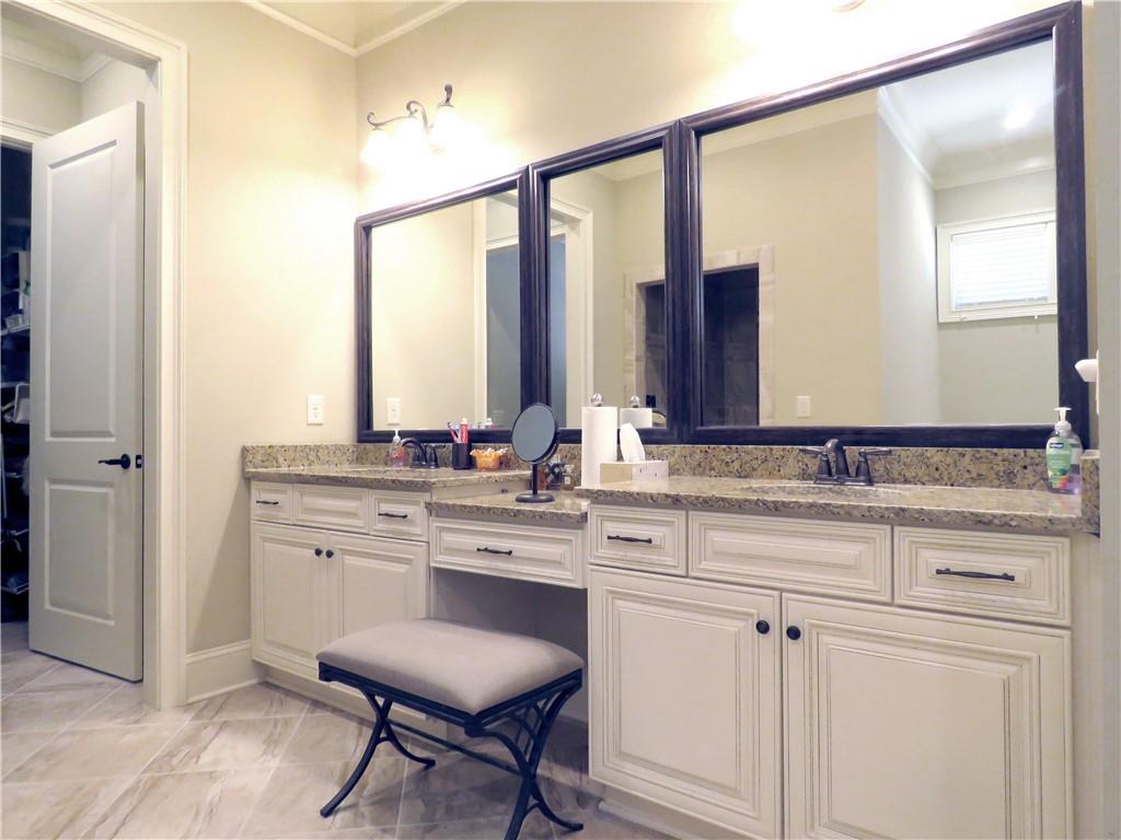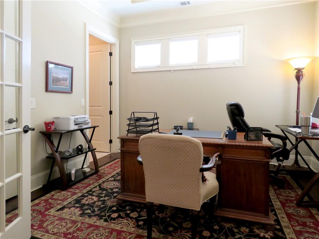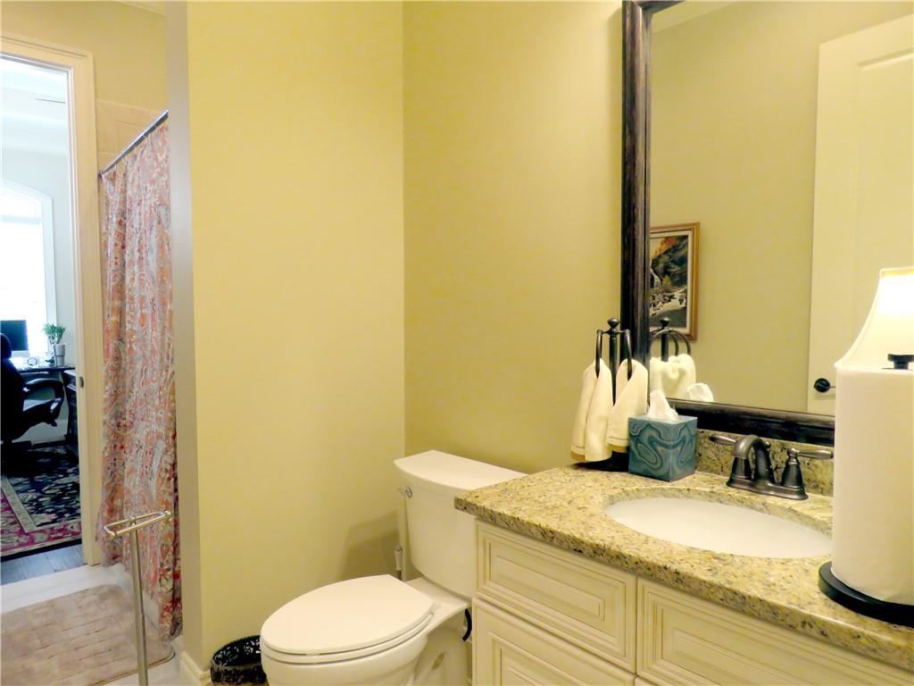One of the best homes in this active adult community. When built with tremendous input from its one owner, all of the extras were added. Starting on the outside with its natural stone/stack stonework and landscaping, even more so than the others in this phase. This home is located in the first phase of this community. This section has homes with craftsman stone accents, greenbelts and a topography (see video) providing a more tranquil home than the later area to the northeast built without a lot of these natural benefits. Stepping inside this home, you are transported to the nicely-proportioned manor having well-appointed crown moldings and wainscoting, ten-foot ceilings and eight-foot solid wood doors. Where most homes in the complex have a screen porch, this home boasts a south facing sunroom leading to a private stone-scaped patio area with a natural gas grill hookup. The sunroom allows for a see-through double-sided fireplace with romantic gas logs and more stone accents, looking through to the large living room. Adjacent to the living room is a spacious 12+-seat dining room. The large country kitchen with its walk-in oversized pantry flows nicely into a large and comfortable entertainment area. On one side of the massive, vaulted area is an alcove leading to the main level master suite, with a large bedroom and sitting area, master bath with soaking tub, roll-in, stepless two-person shower, and a walk-in closet. On the other side of the central living area of the home are 16-pane French doors opening to an office/second bedroom with its own Hollywood-full bath, having a backdoor opening to a hallway, with the kitchen’s butler desk, the large laundry room and the two-car garage with a work area and storage room. There is a wide fixed stairway to a very large third bedroom/craft room with two walk-in closets, one of which has a full-size door leading to a spacious attic storage room. This second level also has a third full bath. The home also has extras such as dual water heaters, a new main line and video monitoring and security systems. Even though interior and exterior video and a 3D immersion walk-through are available for this home, you must see inside to experience its elegant comfort and massive feel.