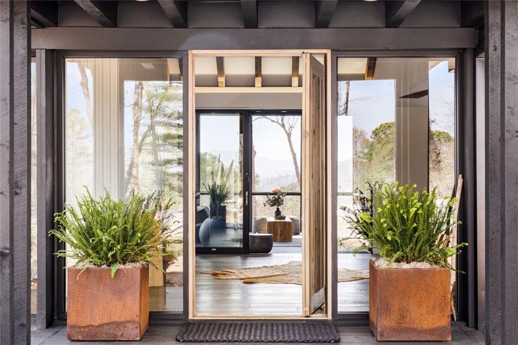 Inspired by the serenity of mountain living, this modern retreat—completed in 2022—seamlessly blends contemporary design with warm finishes and breathtaking views to create the ultimate getaway. Designed for entertaining, the open-concept yurt area invites friends and family to gather effortlessly, whether sharing stories in the kitchen, mixing drinks at the bar, enjoying meals in the dining area, or stepping onto the screened-in porch for a breath of fresh mountain air. The expansive deck extends from the porch and guest suites, featuring soft under-lighting that sets a peaceful, ambient glow as the sun sets. A striking glass hallway and custom fluted walls and doors add architectural drama, making this home as much an artistic masterpiece as it is a retreat. Each of the three ensuite bedrooms is a private sanctuary, with sliding glass walls that open onto the deck, allowing you to wake up to nature’s beauty. The primary suite offers an extra layer of luxury, with a private deck and a heated outdoor shower—perfect for unwinding beneath the stars. Throughout the home, thoughtful design elements like custom woodwork, minimalist luxury fixtures, and perfectly curated lighting create an atmosphere that feels like a high-end spa. Set on 2.3 acres of natural mountain landscape, this home also features a smartly positioned double garage beneath the main living area, offering plenty of storage. Located just minutes from Lake Rabun and surrounded by endless outdoor adventures, this is mountain living at its finest. If you love what you see, this home is also available fully furnished!