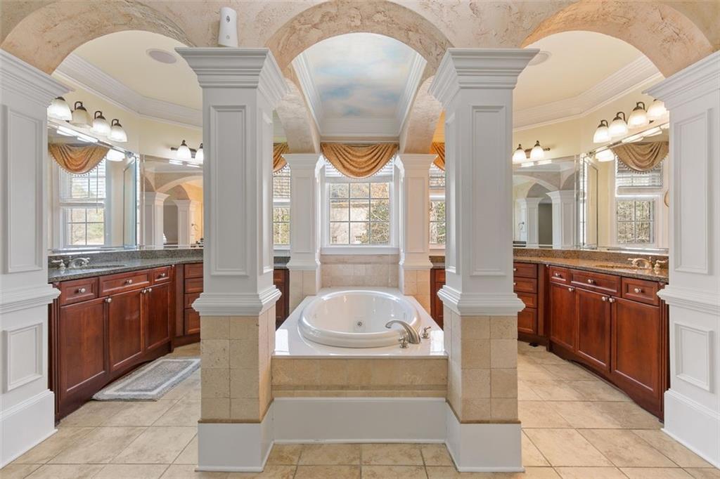 A Truly One-of-a-Kind Estate! Nestled in the highly sought-after top school district of Douglasville, this luxurious home is an entertainer’s dream, offering unmatched amenities and over $100K in upgrades! From the moment you step inside, you’ll be greeted by a stunning grand entry and a bright, open floor plan. Highlights include a beautiful piano room, a spacious great room with a wet bar and fireplace, and breathtaking three-story curved windows overlooking the breakfast area. The gourmet kitchen is a chef’s delight, while the music room and 12-seat formal dining room add to the home’s charm. Enjoy the serene screened sunroom or relax on the expansive deck that leads to a covered terrace with a large, flat yard—perfect for hosting gatherings. The outdoor space features a gas grill with a separate seating area, a charming gazebo, and a Bocce ball court, all set on over an acre of usable land. The luxurious master suite offers a massive bedroom, a King/Queen style master bath with a column-enclosed jacuzzi tub, and his/her closets. The fourth level boasts a private teen or mother-in-law suite with a bedroom and den for added privacy. The lower main level is a true entertainer’s paradise, featuring a private wine room, a cushioned floor gym, a state-of-the-art theater room with soundproof walls, new projector/equipment, and large theater seating. The game room and two custom-built offices provide ample space for relaxation or work, and extensive crown molding adds a touch of elegance throughout. With its high-quality craftsmanship and attention to detail, this home is designed to impress. Priced below market value, this is truly a "Must-See" that will not disappoint your clients!