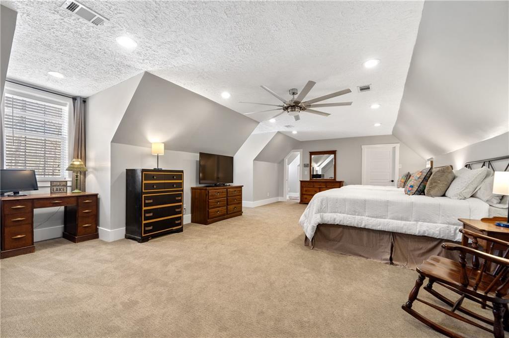 ENTERTAINERS DREAM! 5 bedroom 3 1/2 bathroom - completely updated / renovated. This FULLY FURNISHED and accessorized home is - MOVE IN READY. The main level has an open concept kitchen, dining and living room beautifully accented with a view of the lake from every corner. The kitchen is absolutely PERFECT! 3 islands, two dishwashers, 2 sinks and a beverage cooler. Plus there is a coffee bar with sink and separate wet bar. This home can sleep 14-16 people very comfortably with room to spread out in the 3 bedrooms and 2 baths on main level or on the upper level where you will find two very large bedrooms and an additional one and a half bathrooms and a second laundry room. The outdoor living spaces are amazing - the front porch welcomes you into the home and two expansive back porches that overlook the lake where you can enjoy beautiful sunsets - This lake retreat is great for boating, fishing, fun in the sun or just relaxing inside. An easy, level, walk-out lot leads you to the well maintained single slip boathouse - Water depth is 6 feet at the end of the dock. Don’t forget to check out the large - He/She Shed - its one of the many, many extras that you will fall in love with at this gorgeous home. 20 minutes to Kroger and the new Publix. Approximately an hour and a half from Atlanta and forty minutes from Macon -Ga Power Lease Strip- Make this lakefront retreat the next place you call home or home away from home!