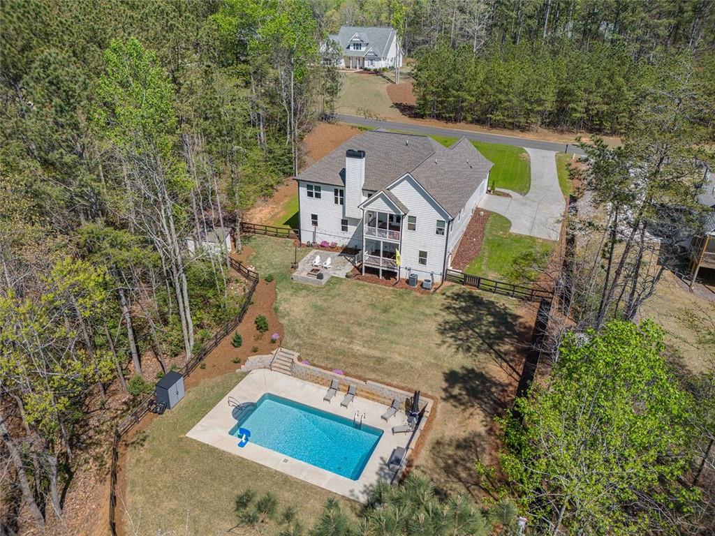 Welcome to this exceptional, move-in-ready home on over an acre of land, featuring an inviting in-ground saltwater swimming pool! Step inside to discover a spacious, open-concept floor plan with gleaming hardwood floors throughout. The formal dining room comfortably seats 8 or more, perfect for gatherings. The oversized living room is a showstopper with a stunning fireplace, custom bookshelves, and large windows that fill the space with natural light. The chef’s kitchen boasts beautiful countertops, stainless steel appliances, a cozy breakfast nook, and an expansive pantry. Enjoy outdoor living on the covered deck, ideal for grilling, sipping morning coffee, or simply unwinding. The convenient mudroom and laundry area are located on the main floor, just off the garage. The master suite is a true retreat, complete with a striking wooden ceiling, a barn door, and private access to the covered porch. The master bath features dual vanities, a soaking tub, a walk-in shower, and a spacious walk-in closet.The secondary bedrooms are thoughtfully designed with a split layout and share a full bath with a shower/tub combo. One of the secondary rooms even includes a built-in desk. Upstairs, you'll find a full bath, a bedroom, a versatile office/loft space, and ample storage.The fully finished terrace level is a standout, featuring hardwood floors throughout. It includes a large office, a bedroom, a full bath with a walk-in shower, a spacious living room, a game area, and a cozy movie room. The basement is plumbed and ready for a kitchen if desired. Step outside to the covered patio, overlooking the expansive backyard with rolling lawns and a 16x32 saltwater pool. The outdoor space is perfect for entertaining, with a built-in fire pit for roasting marshmallows and relaxing. The yard is fully fenced, and there’s additional storage with a shed. The home offers a 2-car garage and plenty of parking on the driveway. This home is bursting with charm and upgrades throughout – it’s a must-see!