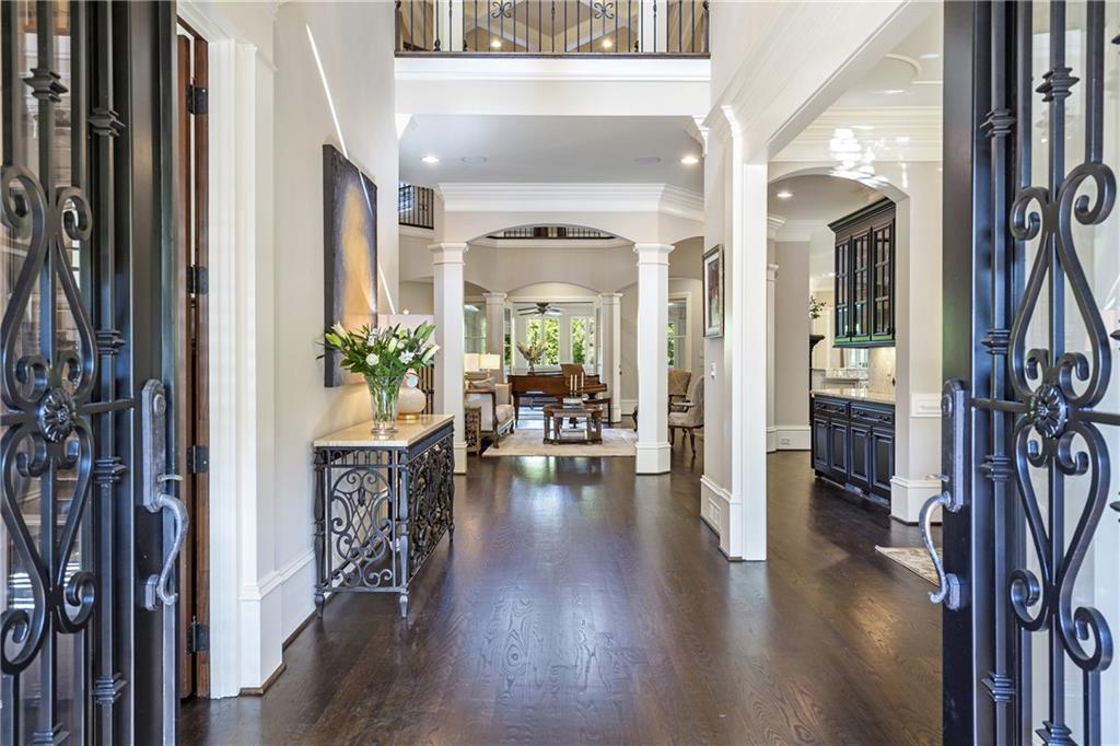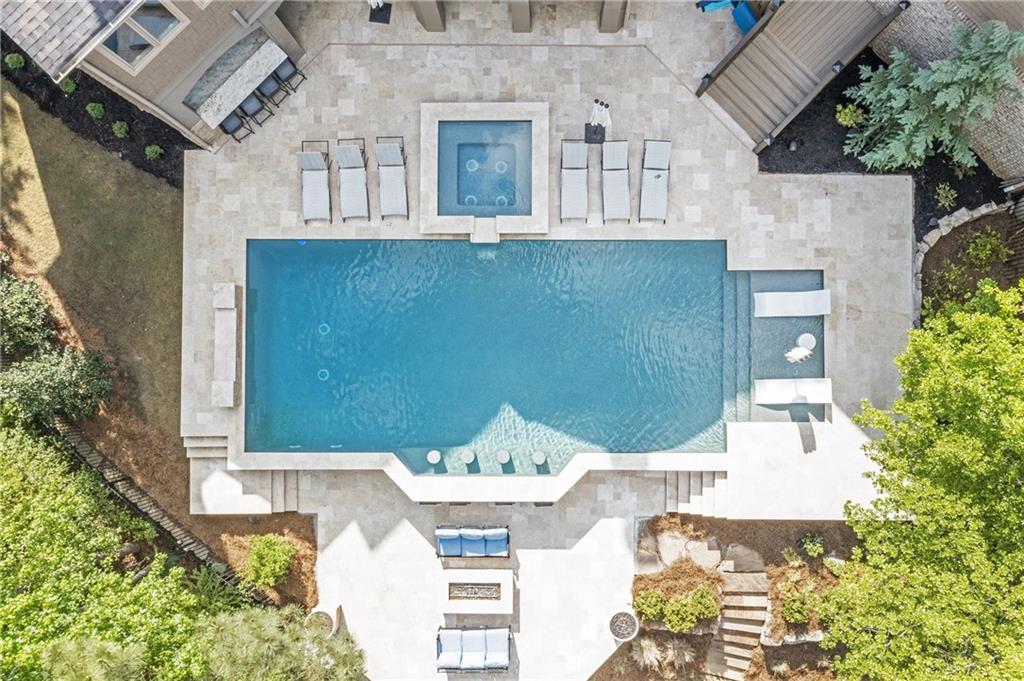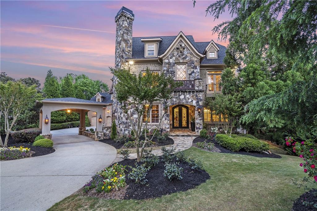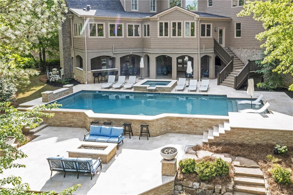 Situated in East Cobb's coveted High Gates community, this exquisite custom-built home blends timeless sophistication with modern luxury. Nestled on nearly an acre in a private cul-de-sac, this stately brick and stone residence offers an impressive porte cochere, a circular driveway and lush new landscaping that enhances its commanding curb appeal. Inside, through double front doors, the foyer welcomes you with dark hardwood floors that extend throughout the main level. To the left, a handsome office features built-in bookcases, rich wood details, a coffered ceiling, a fireplace and French doors for privacy. Across the foyer, an elegant dining room sets the stage for memorable gatherings. The heart of the home unfolds into a dramatic two-story great room with a wet bar, a striking fireplace, a view to the second level and a seamless flow into the chef's kitchen. High-end Wolf appliances, a farmhouse sink, a large island and a double-sided fireplace shared with the great room create a culinary masterpiece. The kitchen spills into the adjacent casual dining area and beamed cathedral-ceiling keeping room. Multiple sets of French doors lead to an expansive screened porch with slate floors, a dining area, a grilling station, a cozy fireside sitting area and stairs leading down to the backyard oasis. This six-bedroom, six-and-a-half-bathroom estate provides a private suite on every level. The main-level guest retreat includes an en suite bathroom, while the upper-level primary suite offers a true sanctuary. A fireside sitting area, a triple tray ceiling, built-ins and a spa-inspired bathroom with a steam shower, a jetted bathtub, a dual vanity and a custom walk-in closet create the ultimate escape. Three additional en suite bedrooms complete the upper level, each generously sized with elegant tray ceilings. Designed for both relaxation and entertainment, the terrace level features a media room, a guest suite and a recreation space with French doors opening to the covered patio, fenced backyard and refreshing pool and spa. Outside, experience an extraordinary private oasis, where a resort-style saltwater pool with a Pebble tech finish, full automation and a beckoning spa await. A sprawling 2,200-square-foot travertine deck surrounds the pool, complete with an outdoor kitchen, a gas fire pit and two dramatic fire bowls framing the tanning ledge. Additional features include two laundry rooms, a newly epoxied garage floor, a solarium that seamlessly integrates into the home's design and an unfinished space by the pool with a fireplace, offering endless possibilities. A two-year-old roof, freshly painted interior and meticulous attention to detail ensure this home is move-in ready for the most discerning buyers. Located in the top-rated Walton High School district and just moments from Fullers Park & Recreation Center, this stunning home offers the perfect balance of luxury, convenience and timeless beauty. The life you've always dreamed about awaits at 854 Club Moss Court.