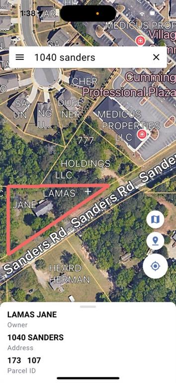 Assemblage of 1010 Sanders Road and 1040 Sanders Road. Property is zoned R-1, but abuts professional office zoned property within the city of Cumming. Will accept offer subject to successful annexation in city and rezoning. 481 ft. road frontage