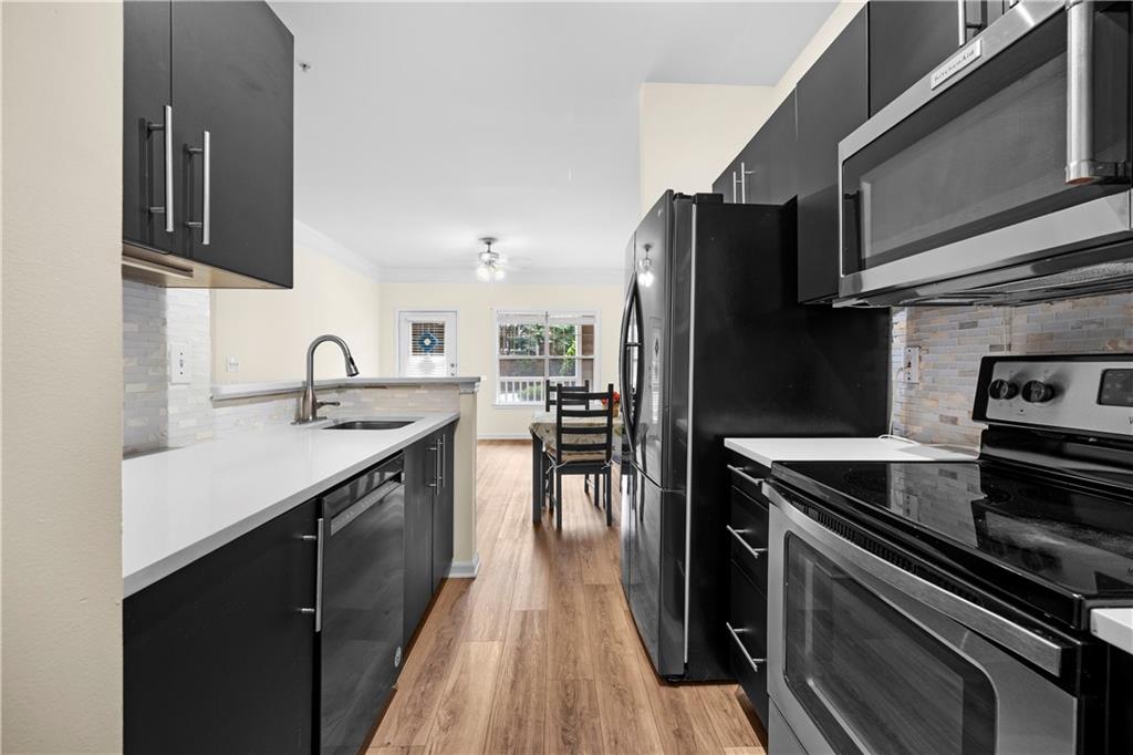 Located in heart of the Buckhead! This charming one-bedroom condo offers the perfect blend of modern convenience and urban excitement. Just steps away from Lenox mall/whole food/kroger etc. surrounded by fine dinings and entertainments. conveniently located on ground level, LVP floor installed 2021. Tile floor in bathroom and laundry. New HVAC installed 2019. Quartz countertop. KitchenAid microwave and dishwasher installed in 2022. Disposal has been upgraded Finger print resistant black stainless steel refrigerator. Washer dryer stay with the unit. Tons of natural light during the day. Fresh new paint on interior Gated community, amenity includes pool, fitness center, grill area and dog park. Water/trash/pest control/termite are included in monthly HOA fee. Easy access to Hwy 85. Ready to move in.
