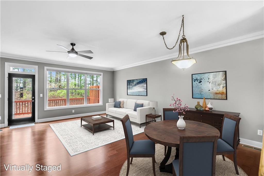 Welcome to this stunning 3 story, 3 bedroom, 3.5 bath townhome offering an open layout and wonderful outdoor living in highly sought-after Norcross/Peachtree Corners. This warm and welcoming home, with an abundance of natural light has gorgeous wood tone laminate floors and a gas log fireplace facing into the open living and dining space (great room) creating a warm and inviting living space. The kitchen has an abundance of cupboards and counter space with a large island in the center. It overlooks the spacious great room with a French door onto a huge deck that is perfect for outdoor entertaining. Upstairs are two spacious bedrooms, two full baths including a luxurious primary suite with double vanities, a soaking tub, separate shower and a large linen closet. On the entry level is the third bedroom and full bath that can also serve as an office or workout room. It even has a walk out to the back yard. Located off Peachtree Industrial Boulevard, this prime location is convenient to Peachtree Corners and Historic Norcross. Schedule your tour today!