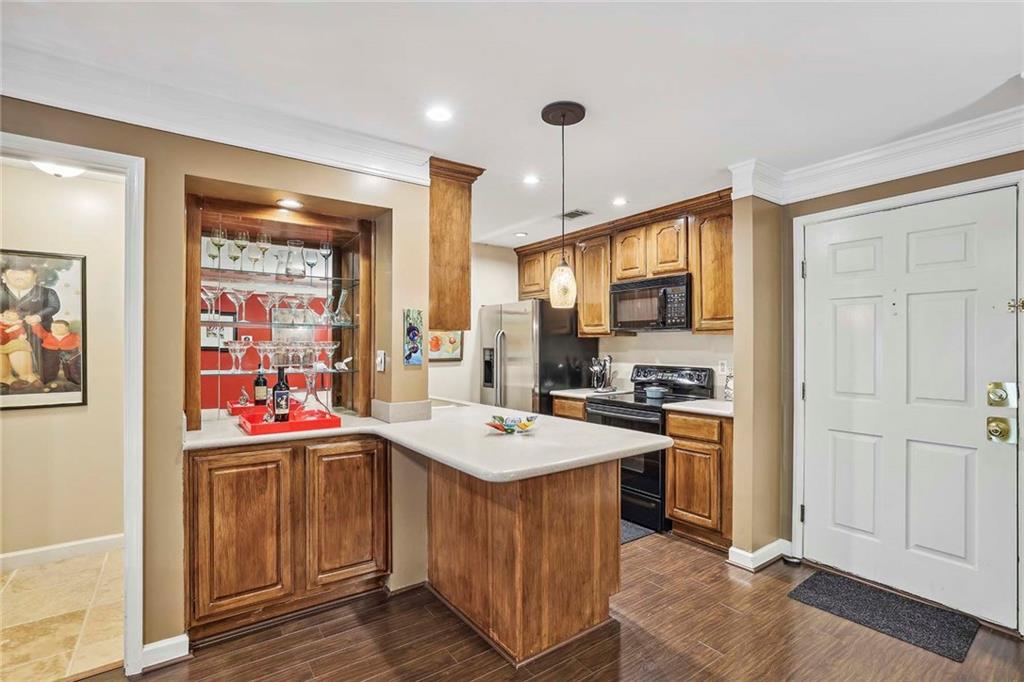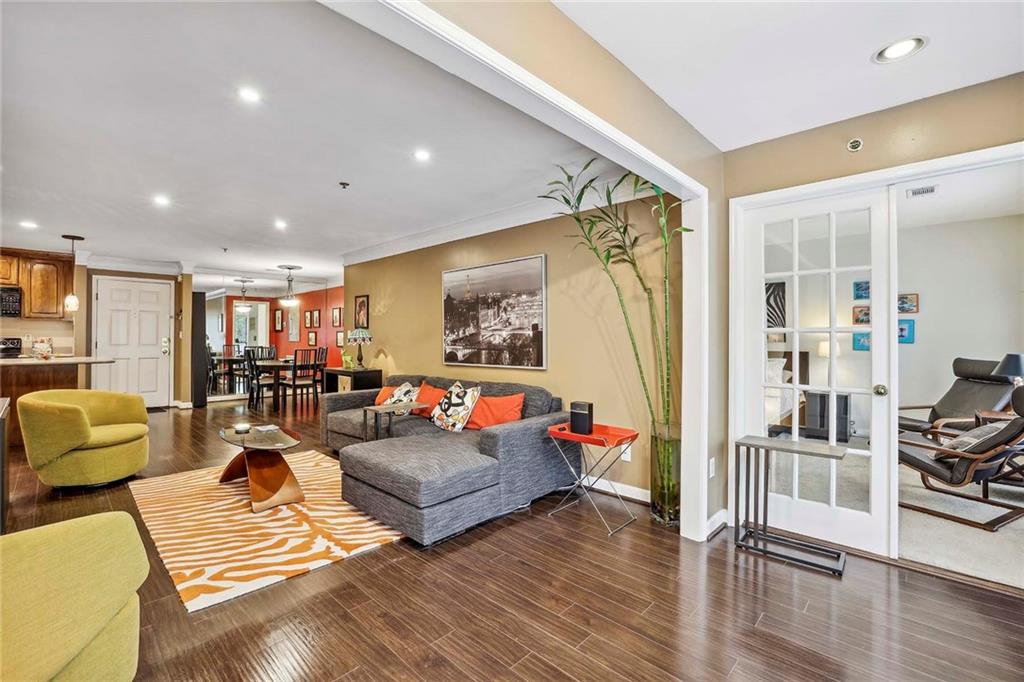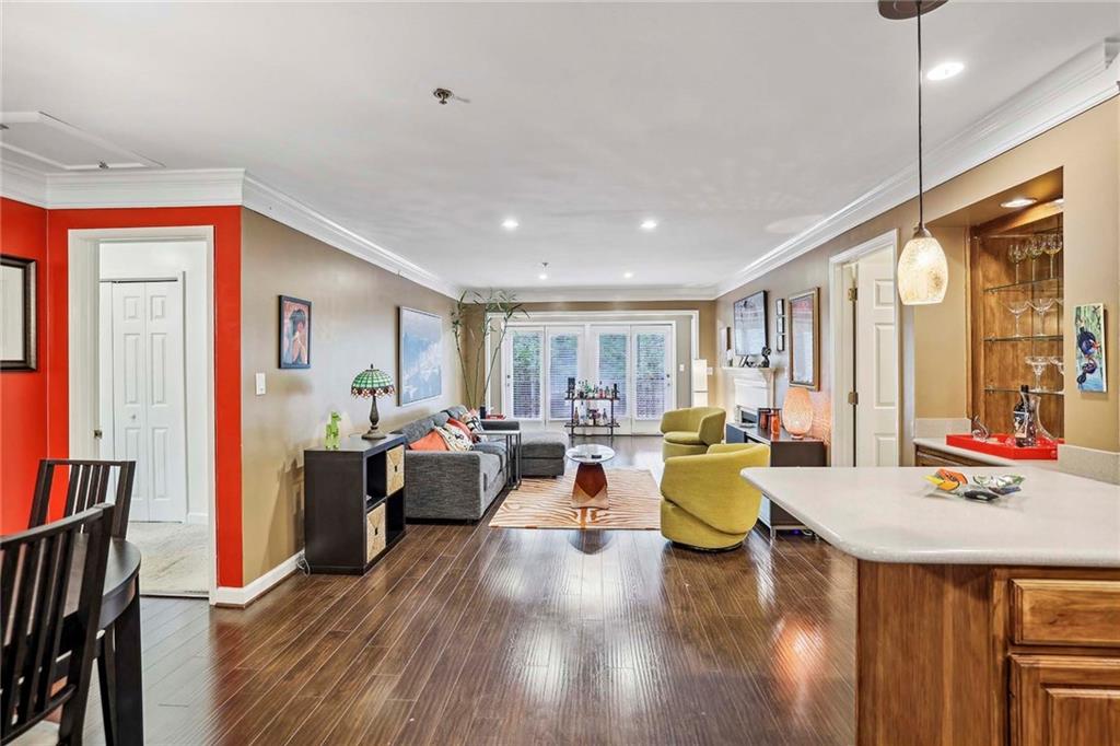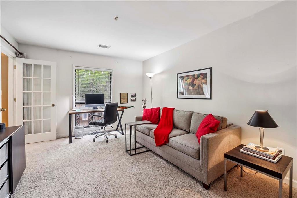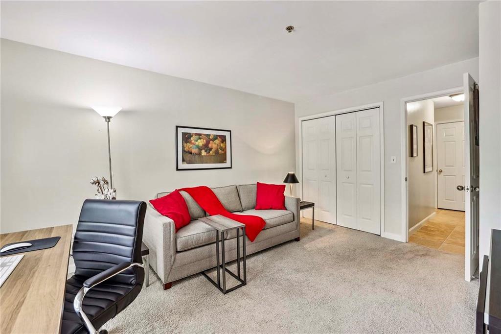 Nestled in the heart of Buckhead on Lenox Road, step into this sensational 2-bedroom, 2-bathroom condominium that epitomizes modern convenience and comfort. As you approach this desirable residence, you're greeted by the allure of its prime location. Buckhead's vibrant atmosphere surrounds you, with an array of upscale shops, delectable dining spots, and bustling intersections just moments away. Whether you're in the mood for a gourmet meal, a shopping spree, or simply want to soak up the lively ambiance, everything you desire is right at your fingertips. Upon entering, you'll be captivated by the room-mate floor plan, thoughtfully designed to maximize both privacy and sociability. The airy open-concept layout seamlessly integrates the dining room, kitchen, and living room, creating a harmonious space ideal for entertaining guests or enjoying cozy nights in. The kitchen features stain cabinets and sleek Corian countertops, while the open view to the living room allows for seamless interaction with loved ones while whipping up culinary delights. The spacious living room serves as the heart of the home, boasting a charming fireplace adorned with gas logs, perfect for cozying up during chilly evenings. Sunlight streams in through the French doors, illuminating the space with a warm, inviting glow and creating a serene ambiance that helps you to relax and unwind. The balcony at the end of the living room is also a great outdoor feature in this property. Retreat to the primary bedroom oasis, where tranquility awaits. Revel in the spaciousness of your sanctuary, complete with an en-suite bathroom featuring a refreshing shower and ample closet space to accommodate your wardrobe essentials. The secondary bedroom mirrors the elegance of the primary suite, offering a haven of comfort and privacy for guests or loved ones. A unique feature awaits as the laundry discreetly occupies one of the closets, adding convenience to your daily routine. Convenience continues outside, where two assigned covered parking spaces # 49 & 50. But that's not all – with water, trash, 24/7 security, grounds maintenance, termite and pest control, and reserve funds all covered under the HOA, you can enjoy worry-free living at its finest. Embrace a lifestyle of luxury and convenience, with exclusive access to resort-style amenities including a sparkling swimming pool, state-of-the-art gym, and inviting clubhouse, all within steps of your front door. Don't miss this rare opportunity to own a piece of paradise in the prestigious Buckhead neighborhood.