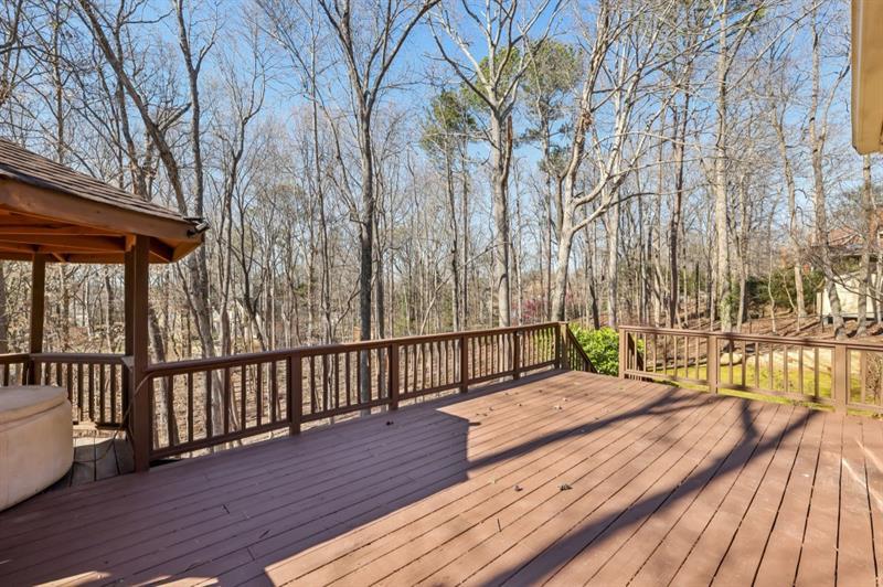 Discover Exceptional Living in the Prestigious Habersham Place Neighborhood of Sandy Springs! Set on nearly an acre of land in a tranquil, welcoming community, this remarkable home offers an ideal balance of space, privacy, and a prime location. Whether you're looking for room to grow, host extended family, or accommodate multigenerational living, this home offers Unmatched Flexibility with a Fully Finished Terrace Level featuring its own Kitchen, Living Area, and Private Entrance. The grand Red Brick Exterior and meticulously landscaped grounds provide an impressive first impression. A brand-New Roof has been installed, adding to the home's allure and ensuring lasting value. Upon entering the Elegant Foyer, you'll be welcomed by soaring ceilings, gleaming Hardwood Floors, Wainscoting, and Crown Molding, creating an atmosphere of sophistication. To your right, the Formal Dining Room features Floor-to-Ceiling Windows that fill the room with abundant natural light, perfect for hosting memorable meals. Across the hall, the Formal Living Room is versatile and ideal as a Dedicated Home Office or additional Sitting Area. At the heart of the home, the Fireside Family Room is an entertainer's dream, offering a Vaulted, Beamed Ceiling, Custom Built-Ins, and Rich Wood-Paneled Walls that create a warm and inviting atmosphere. Just off the family room, the Chef's Kitchen is a standout, complete with Granite Countertops, White Cabinetry, a Large Island, and Skylights that bathe the space in Natural Light. The adjacent Breakfast Nook is the perfect spot to enjoy casual meals or your morning coffee. Beyond the kitchen, the Sunroom features a tongue-and-groove ceiling, Skylights, and a Wall of Windows, creating a serene retreat for reading, unwinding with a drink, or simply relaxing. A convenient Laundry Room rounds out the main level. Upstairs, the luxurious Primary Suite is a true sanctuary, offering Tray Ceilings and a Private Sitting Room, which could serve as a Nursery, Additional Closet, or Home Office. The Spa-Like Ensuite Bathroom is equipped with a Soaking Tub, Separate Glass Shower, Double Vanity, and Walk-In Closet. Three additional Spacious Secondary Bedrooms and Two Full Bathrooms ensure comfort and privacy for family and guests. The expansive Daylight Terrace Level significantly increases the home's living space, featuring a Fireside Family Room with newly installed Luxury Vinyl Plank Flooring, a Full Kitchen, and a Sunroom with a Built-In Bar—perfect for entertaining, game nights, or simply enjoying the view of the backyard. A Private Bedroom and Full Bathroom complete this level, making it ideal for a Multigenerational Family or In-Laws Suite with its own separate living area, kitchen, and private entrance. Step outside to your own Backyard Oasis, featuring two levels of deck space for outdoor dining, barbecues, and entertaining. The Spacious, Flat, and Fully Fenced Backyard is perfect for play, while the Wooded Area offers tranquil, scenic views. Additional features include a Two-Car Garage and a spacious, Flat Driveway with a Large Parking Pad. Located just minutes from Dunwoody, Holcomb Bridge, Peachtree Corners, and the Chattahoochee River, this home offers easy access to Shopping, Grocery Stores, Dining, and Recreational Amenities. Don't miss out on the opportunity to make this extraordinary home yours!