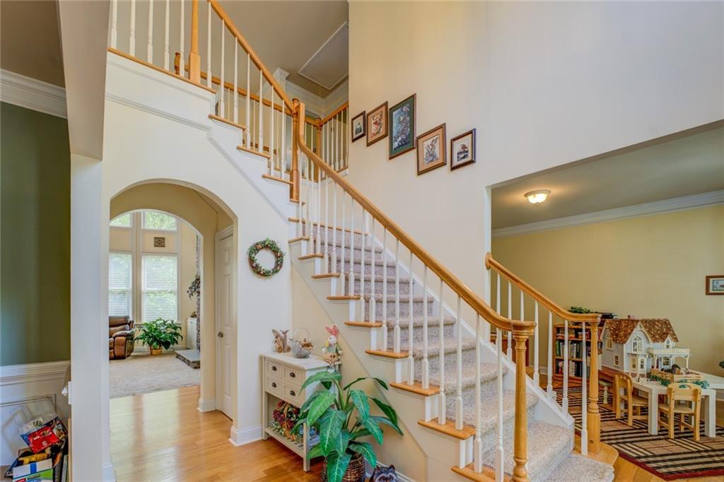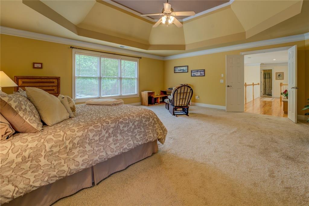 Welcome to your stunning dream home in the prestigious and highly sought after Providence Club Community! This elegant 5-bedroom, 3-bath residence offers an ideal combination of luxury, comfort, and outdoor space, perfect for families, entertaining, and enjoying the serene lifestyle provided by the community. This beautiful home boasts a thoughtful design with over 2,976 square feet of living space, providing ample room for relaxation and entertainment. Four generously sized bedrooms are located on the upper level, providing privacy and tranquility. Each room is filled with natural light and offers ample closet space. The fifth bedroom located on the main level could serve as a perfect guest room, home office, or playroom. Two well-appointed bathrooms are located on the upper level. Including a large luxurious main suite with an en-suite bath featuring dual vanities, a whirlpool tub, and a separate shower for a spa-like experience. The third full bathroom is located on the lower level. The heart of the home features a gourmet kitchen, complete with all appliances, granite countertops, a large island, generous storage space, and a walk-in pantry. The ideal space for culinary enthusiasts and entertaining guests. A spacious family room with a cozy gas fireplace creates a warm atmosphere, while the large wall of windows offers tons of natural light and breathtaking views of the backyard. An additional formal dining room and separate home office add to this already beautiful space. On over half an acre, the beautifully landscaped yard offers endless possibilities for outdoor activities and entertaining. Enjoy summer barbecues under the covered patio, enjoy the privacy of your fully fenced backyard, and the kids will love the well-maintained playset. The home has a large attached two car garage with an additional, separate, golf cart garage!! You can also take advantage of the Providence Club golf course just around the corner. Residents of Providence Club community enjoy access to a wide range of amenities. A beautiful community pool, tennis courts, and a play area for the kids. Additionally, Providence Golf Club, ranked one of Georgia's top courses, is mere steps away! Conveniently located in a family-friendly neighborhood, this home is close to schools, shopping, dining, easy access to major highways, and an abundance of recreational activities. Do not miss the opportunity to own this exceptional property! Schedule your private showing today and experience the perfect blend of luxury and lifestyle in the Providence Club Golf Course Community.