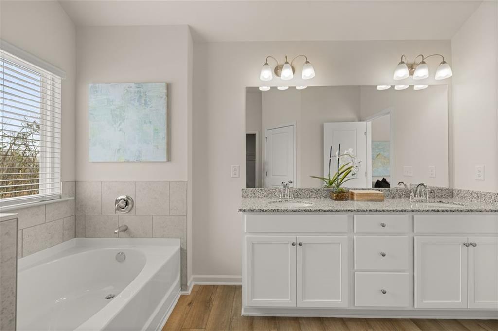 Rockhaven Homes presents: THE WELLINGTON! This stunning home features 5 Bedroom/4 Full Bathrooms, Media Room, Huge Master Closet with dual windows. This magnificent brick elavation home offers luxurious features and thoughtful design elements, perfect for comfortable and stylish living. Upon entry, you are greeted by a guest bedroom and a full bathroom on the main level, providing convenience and privacy for multigenerational living arrangements. The layout includes formal separate living and dining rooms, ideal for hosting gatherings or enjoying intimate dinners. At the heart of the home is a spacious great room that adds warmth. The beautiful kitchen is equipped with 42" cabinets with crown moldings, granite countertops, and a large kitchen island, offering ample workspace for meal preparation and entertaining. On the upper level, you'll discover a haven of relaxation and entertainment in the highlight of the upper level is the expansive owner's suite with 9-foot vaulted ceilings and huge walk-in closets with dual windows, providing abundant storage space for your wardrobe essentials. The Primary bathroom features a tiled spa shower and a separate tub for ultimate relaxation. **Secondary photos are stock photos and may not represent the actual home being built on this particular homesite**