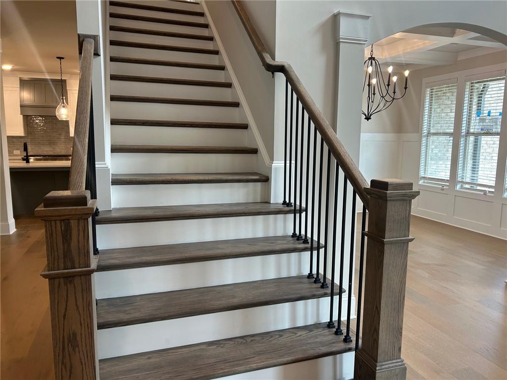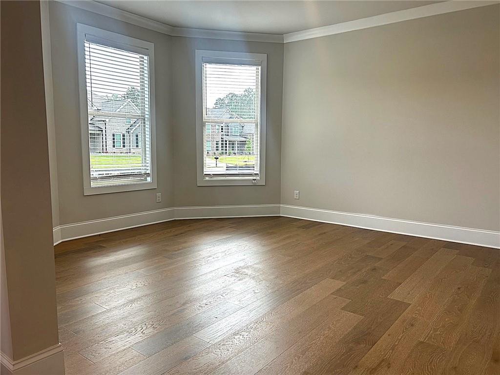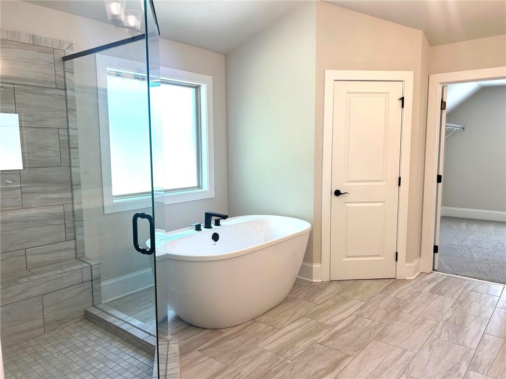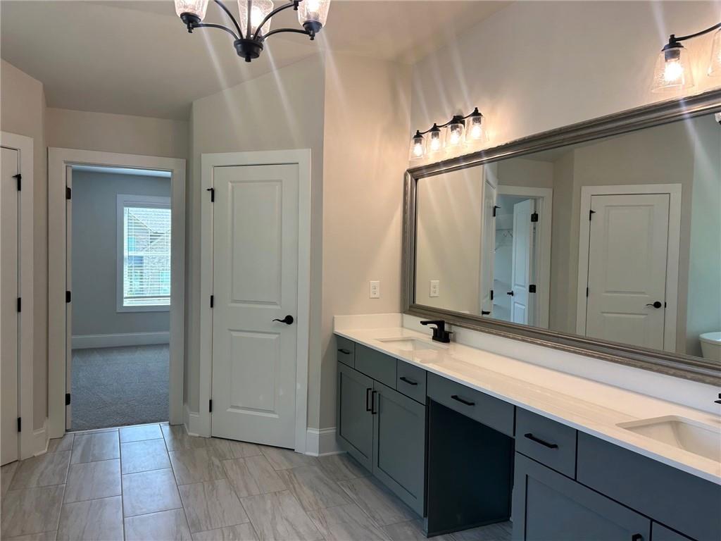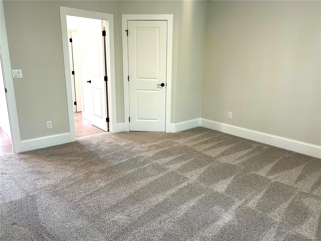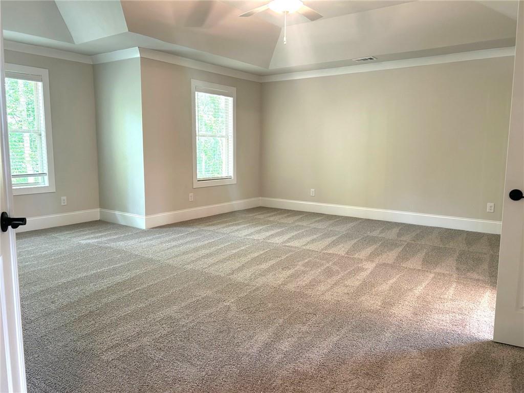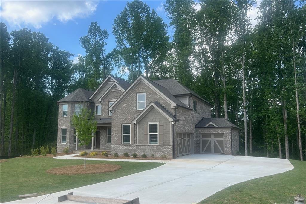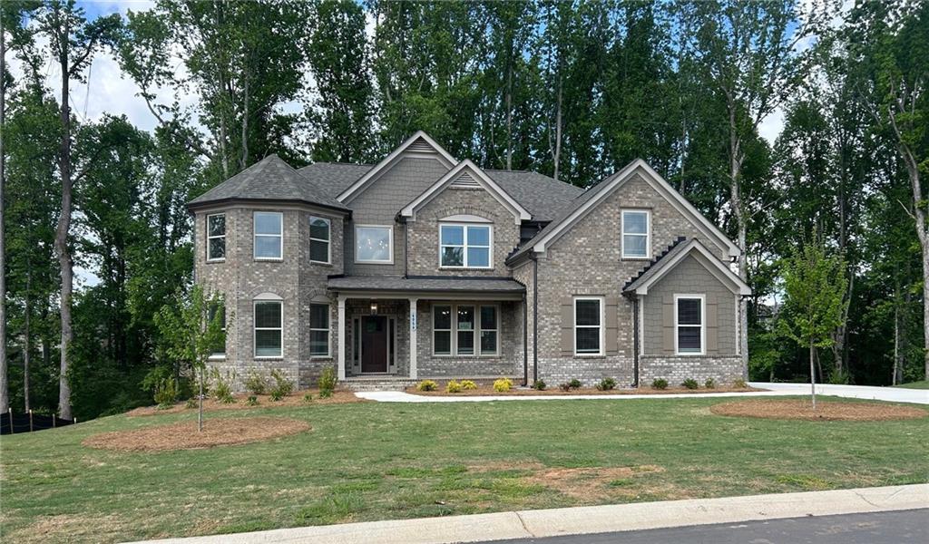CHARLESTON Plan Lot 50B: 5BR/4BA MOVE IN READY This 3-sided brick 3 car with Side Entry garage home with front porch With BASEMENT lot in the GATED community of Sierra Lake. The rear covered porch is great for outdoor living. There is a fresh water creek in the rear of the lot so there is no neighbors close to you in the back of the home- privacy. The main level features a 2-story foyer, formal coffered dining room, study/flex space, oversized bedroom on the main with direct bath access and large walk-in closet, great room with stone fireplace, gourmet kitchen, mudroom, walk in pantry, tiled laundry room and direct access to the garage. The gourmet kitchen features double ovens, gas cooktop, vented microwave, dishwasher, one continuous stainless-steel sink with disposal, 42" white farmhouse style cabinets, huge island with lots of seating, and tile backsplash. The main level has tons of hardwood, tile and extensive trim details. The wood staircase leads you to three additional secondary bedrooms with direct bath access, MEDIA room, and large master retreat with sitting room, spa retreat, and large closet. The spa retreat features a soaking tub with tile surround, Frameless tile shower with bench, double vanities, granite countertops, linen closet and separate toilet area. Nestled in a quiet lake community that offers resort style amenities including a fishing dock, walking trails, playground, pool, clubhouse, pavilion, fire pit area, gaming area, and Play field. Quick access to GA 400. Minutes to Lake Lanier. GATED COMMUNITY - Gates close at 7:00PM