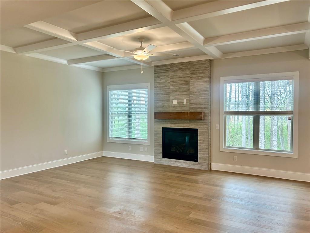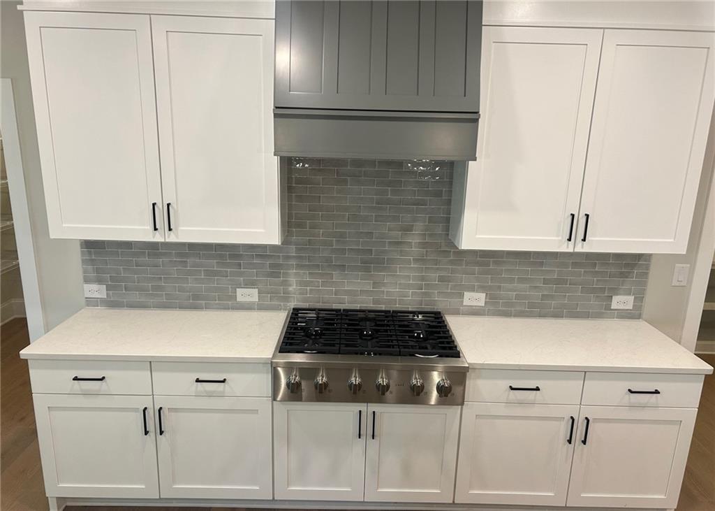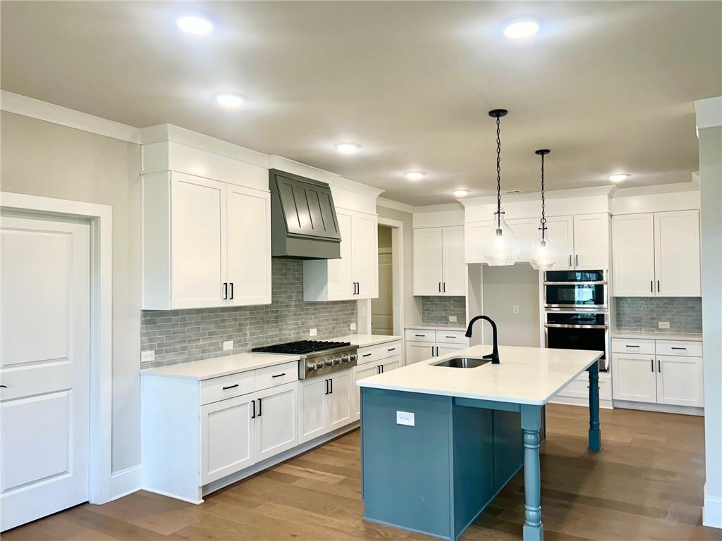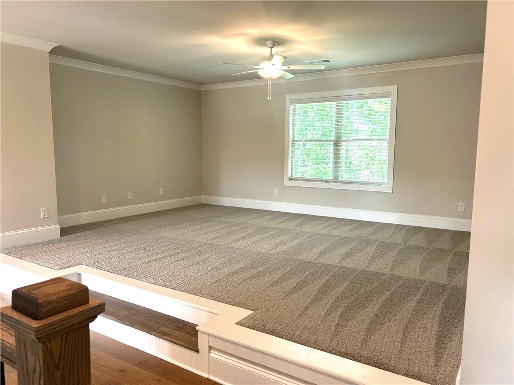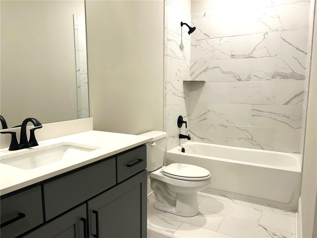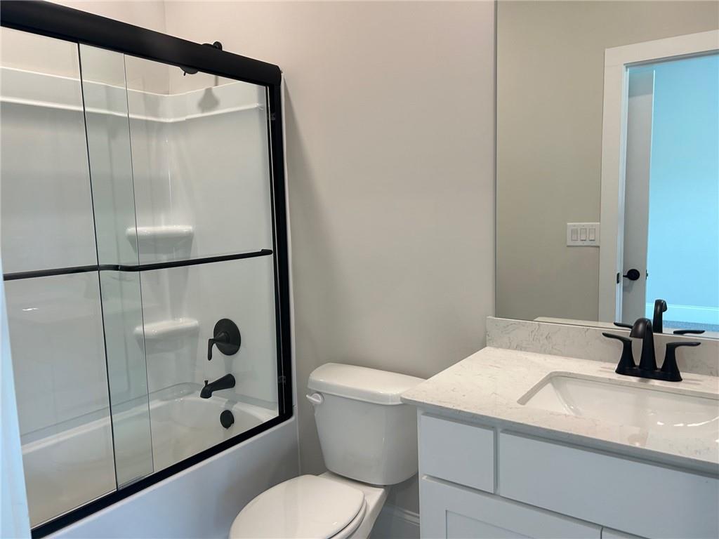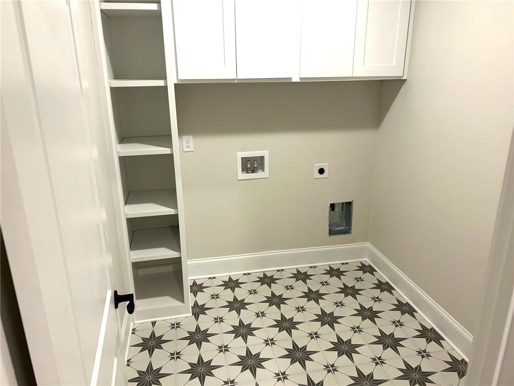 CHARLESTON Plan Lot 50B: 5BR/4BA MOVE IN READY This 3-sided brick 3 car with Side Entry garage home with front porch With BASEMENT lot in the GATED community of Sierra Lake. The rear covered porch is great for outdoor living. There is a fresh water creek in the rear of the lot so there is no neighbors close to you in the back of the home- privacy. The main level features a 2-story foyer, formal coffered dining room, study/flex space, oversized bedroom on the main with direct bath access and large walk-in closet, great room with stone fireplace, gourmet kitchen, mudroom, walk in pantry, tiled laundry room and direct access to the garage. The gourmet kitchen features double ovens, gas cooktop, vented microwave, dishwasher, one continuous stainless-steel sink with disposal, 42" white farmhouse style cabinets, huge island with lots of seating, and tile backsplash. The main level has tons of hardwood, tile and extensive trim details. The wood staircase leads you to three additional secondary bedrooms with direct bath access, MEDIA room, and large master retreat with sitting room, spa retreat, and large closet. The spa retreat features a soaking tub with tile surround, Frameless tile shower with bench, double vanities, granite countertops, linen closet and separate toilet area. Nestled in a quiet lake community that offers resort style amenities including a fishing dock, walking trails, playground, pool, clubhouse, pavilion, fire pit area, gaming area, and Play field. Quick access to GA 400. Minutes to Lake Lanier. GATED COMMUNITY - Gates close at 7:00PM