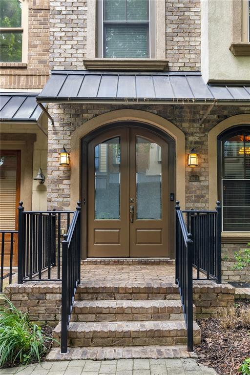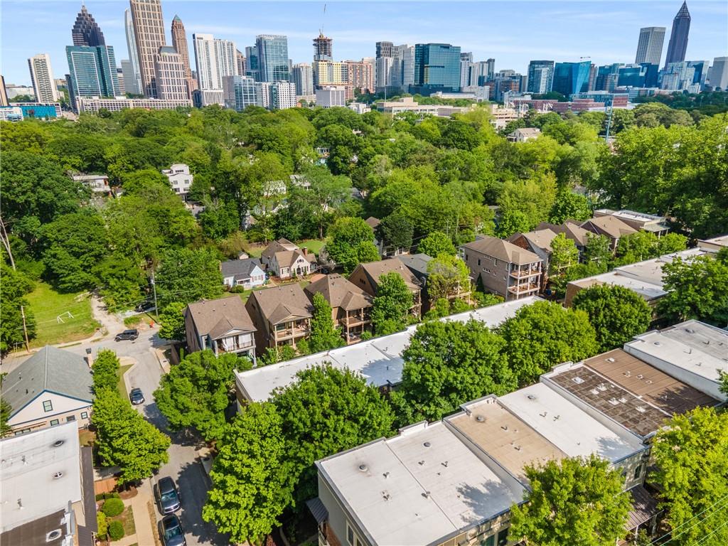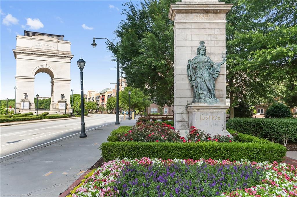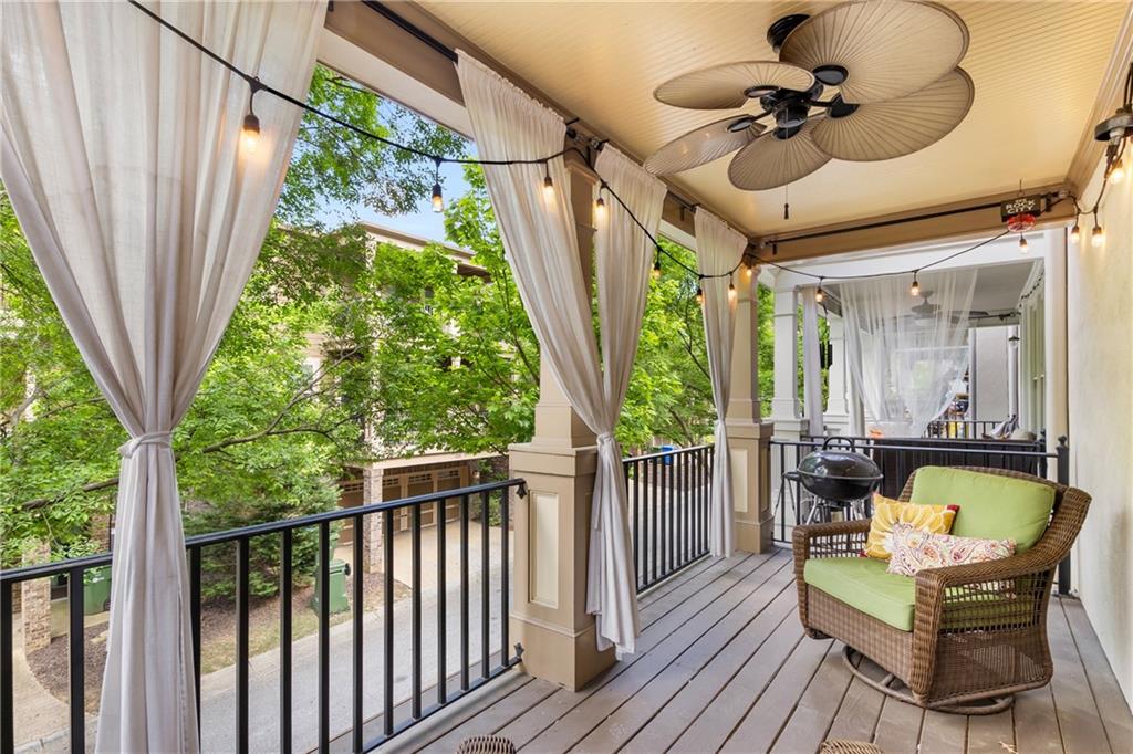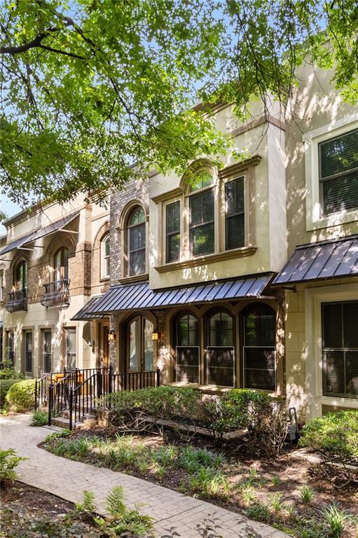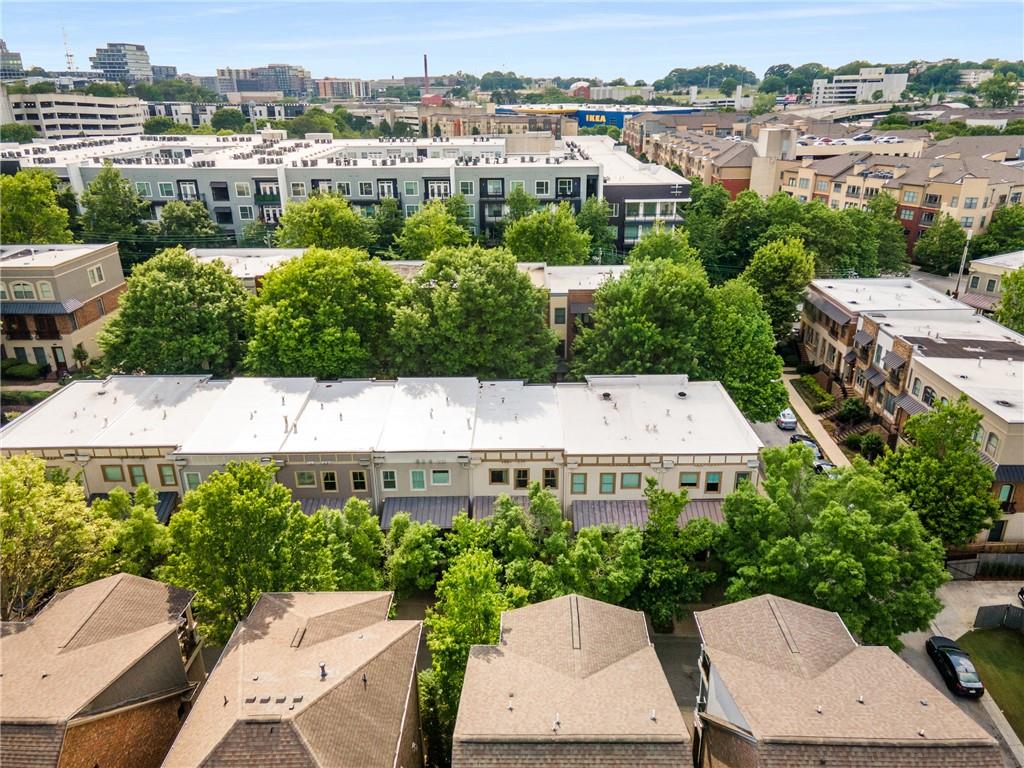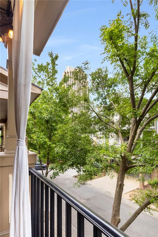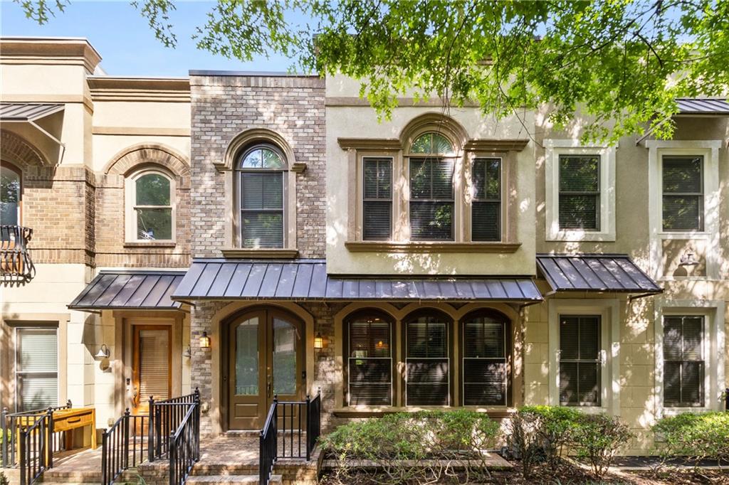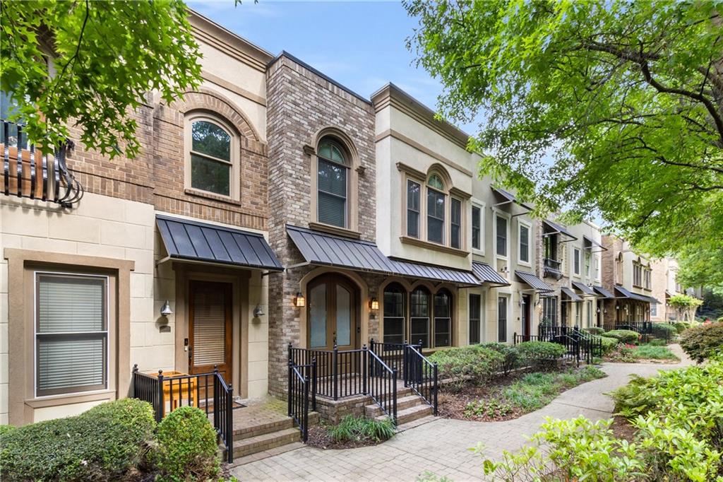 Nestled within the small idyllic enclave of European-style townhomes with meandering tree-lined sidewalks, this beautifully maintained home in the heart of Westside|Midtown|Atlantic Station is situated in THE most private location within the community, cushioned between Mecaslin and State Streets.the hidden gem of Atlantic Station! This sought-after open floor plan with three levels of hardwood flooring, 2 bedrooms, 2 full baths, 2 half baths PLUS DEN, was thoughtfully designed for ease of day-to-day living, as well as entertaining. The living room offers great natural sunlight and pretty views of the meandering sidewalk and lush tree canopy outside. Casual, as well as elegant dining can be enjoyed in the dining area with space for all to sit comfortably and is elevated by custom built-in shelving to display precious-to-you artwork, antique serving dishes, or to use a library for a special book collection. Whether preparing a lavish meal for a holiday get-together or a quiet weekday dinner, the gourmet kitchen with direct access leading to the covered private back deck, will delight every chef enthusiast! Features include an island with storage, breakfast bar, pantry, stainless appliances, 5-burner gas cooktop, and a cozy eating area, an ideal spot for your morning coffee or tea. There is a half bath located on this main living level. The upper level offers two primary suites, each with private full bath, double vanities and walk-in closet. The laundry is conveniently located on this level, along with a hall linen closet. Turn the first level den with half bath and spacious closet, into your at-home office, game room, guest suite or anything that fits your lifestyle. A NEW ROOF with transferrable warranty provides peace of mind for years to come and plenty of parking is available in the 2-car garage, as well as space for an additional 2 cars in the driveway. Just steps from office space, retail shopping, grocery, restaurants, arts, entertainment, GA Tech and more, yet surprisingly tucked away from the hubbub of city life. Hop on the free shuttle from Atlantic Station to MARTA Arts Center Station and explore all Atlanta has to offer OR stay close to home and take advantage of all the year-round festivities in Atlantic Station!