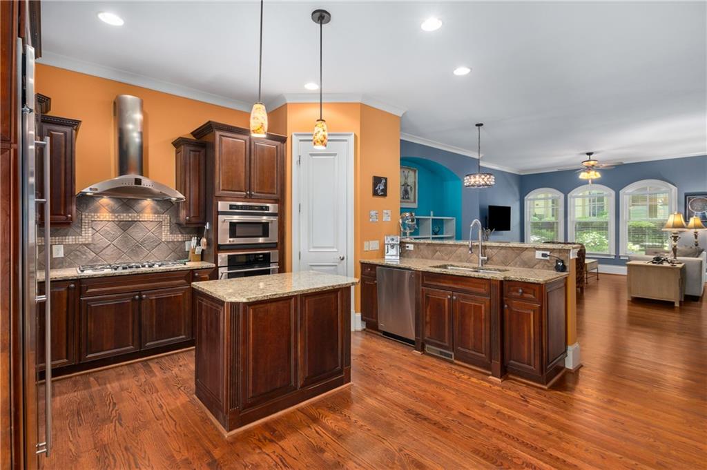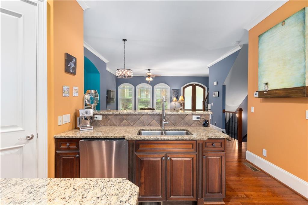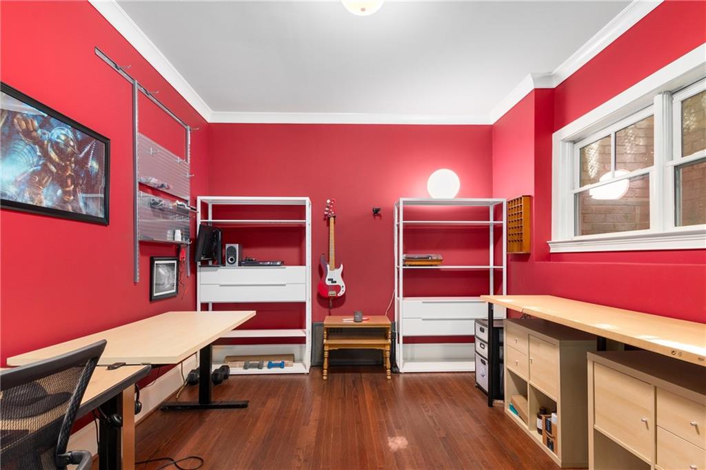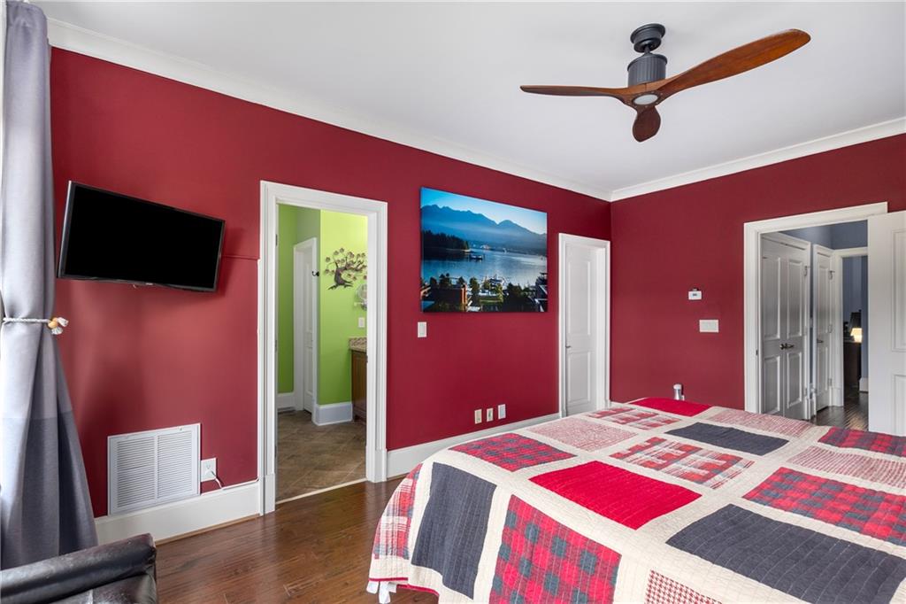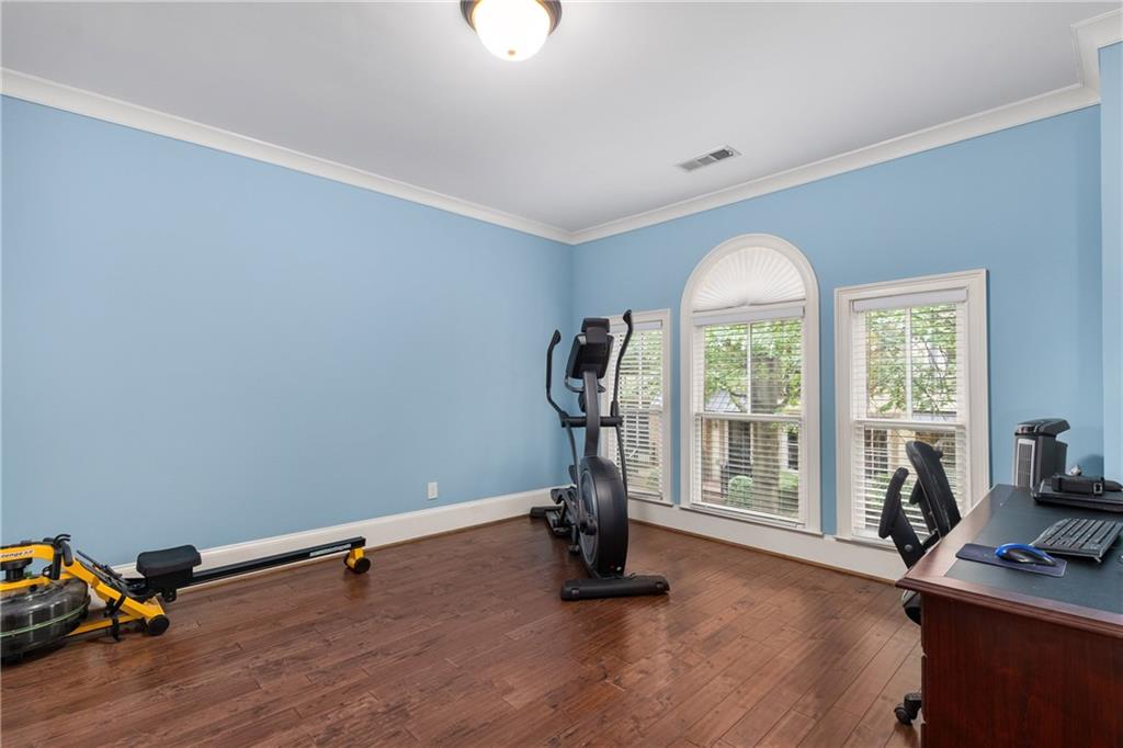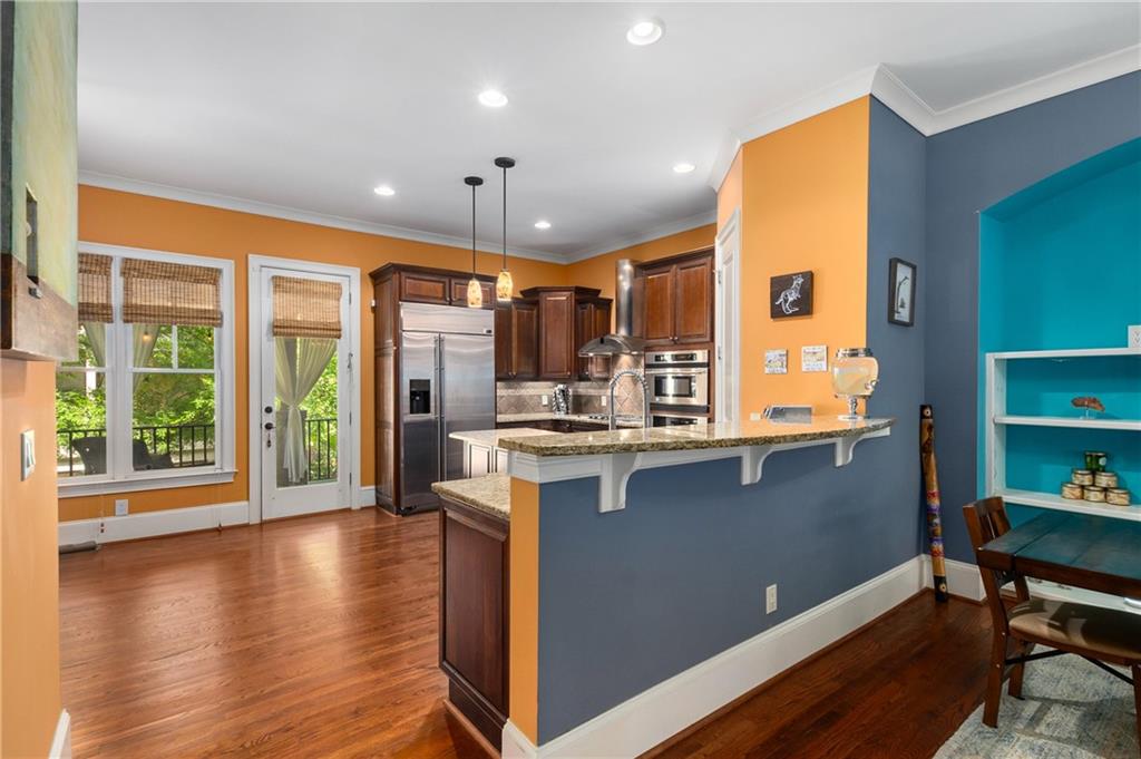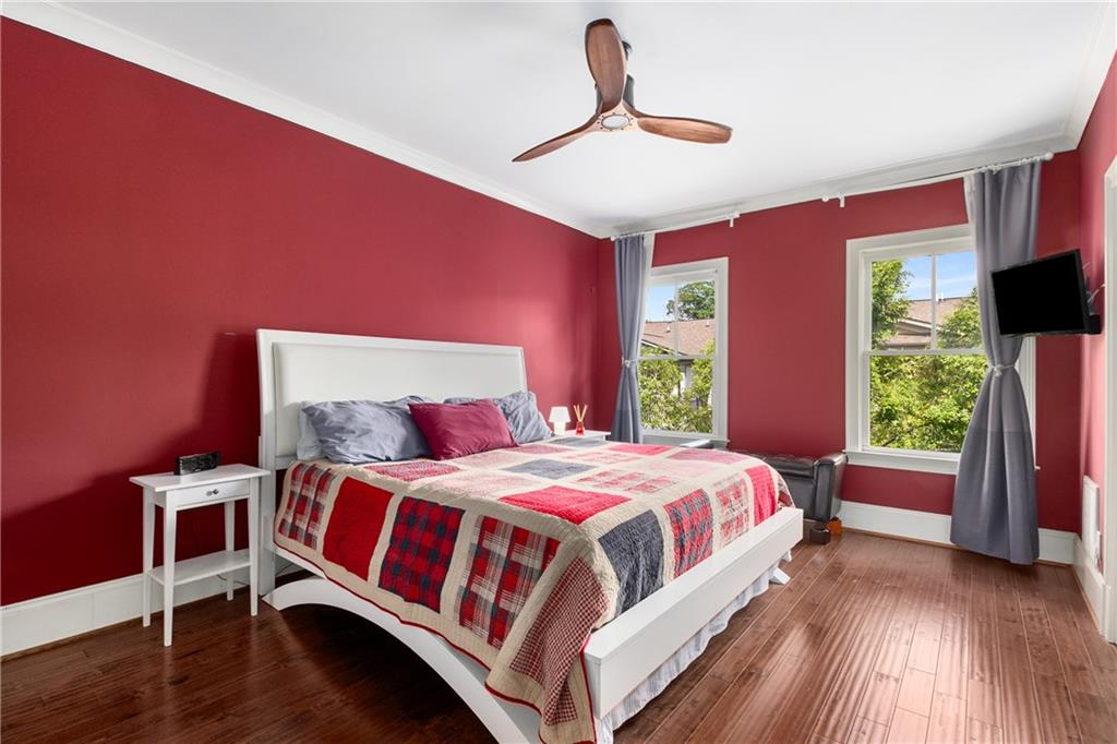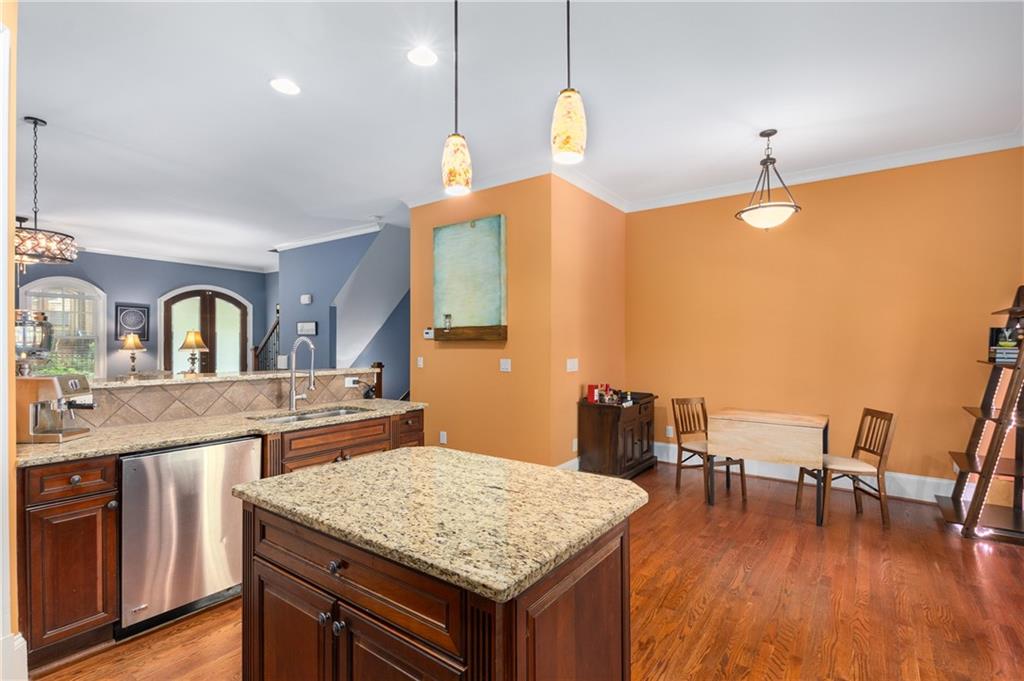 Nestled within the small idyllic enclave of European-style townhomes with meandering tree-lined sidewalks, this beautifully maintained home in the heart of Westside|Midtown|Atlantic Station is situated in THE most private location within the community, cushioned between Mecaslin and State Streets.the hidden gem of Atlantic Station! This sought-after open floor plan with three levels of hardwood flooring, 2 bedrooms, 2 full baths, 2 half baths PLUS DEN, was thoughtfully designed for ease of day-to-day living, as well as entertaining. The living room offers great natural sunlight and pretty views of the meandering sidewalk and lush tree canopy outside. Casual, as well as elegant dining can be enjoyed in the dining area with space for all to sit comfortably and is elevated by custom built-in shelving to display precious-to-you artwork, antique serving dishes, or to use a library for a special book collection. Whether preparing a lavish meal for a holiday get-together or a quiet weekday dinner, the gourmet kitchen with direct access leading to the covered private back deck, will delight every chef enthusiast! Features include an island with storage, breakfast bar, pantry, stainless appliances, 5-burner gas cooktop, and a cozy eating area, an ideal spot for your morning coffee or tea. There is a half bath located on this main living level. The upper level offers two primary suites, each with private full bath, double vanities and walk-in closet. The laundry is conveniently located on this level, along with a hall linen closet. Turn the first level den with half bath and spacious closet, into your at-home office, game room, guest suite or anything that fits your lifestyle. A NEW ROOF with transferrable warranty provides peace of mind for years to come and plenty of parking is available in the 2-car garage, as well as space for an additional 2 cars in the driveway. Just steps from office space, retail shopping, grocery, restaurants, arts, entertainment, GA Tech and more, yet surprisingly tucked away from the hubbub of city life. Hop on the free shuttle from Atlantic Station to MARTA Arts Center Station and explore all Atlanta has to offer OR stay close to home and take advantage of all the year-round festivities in Atlantic Station!