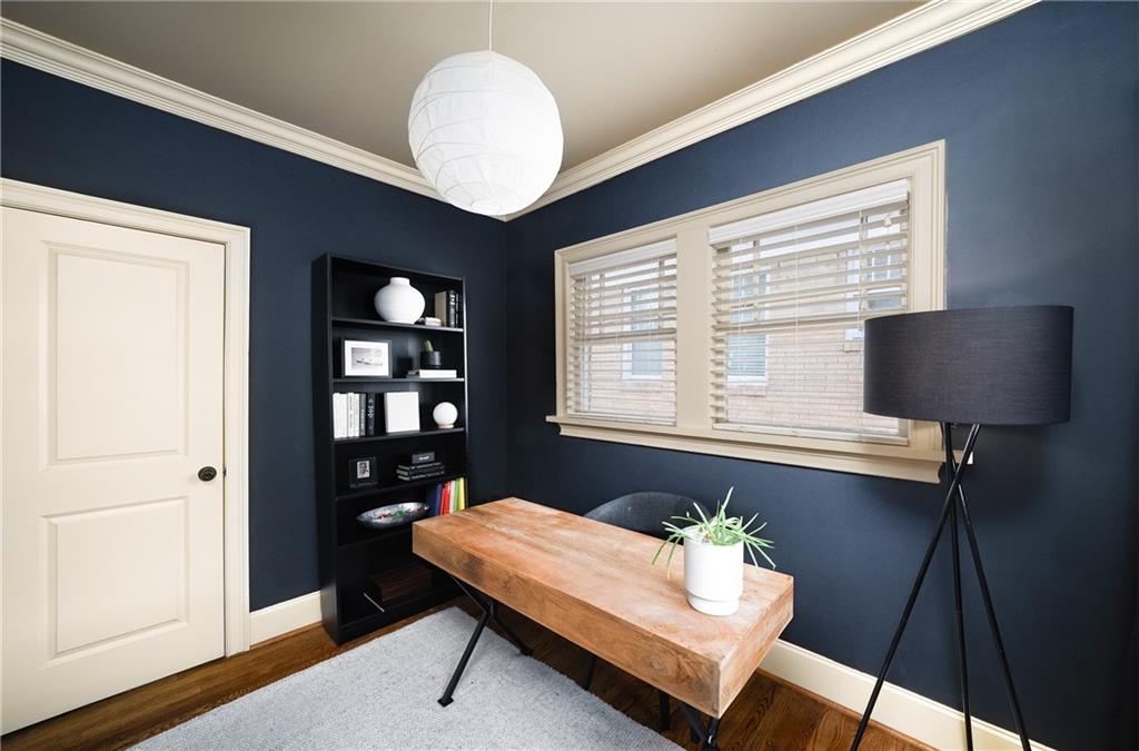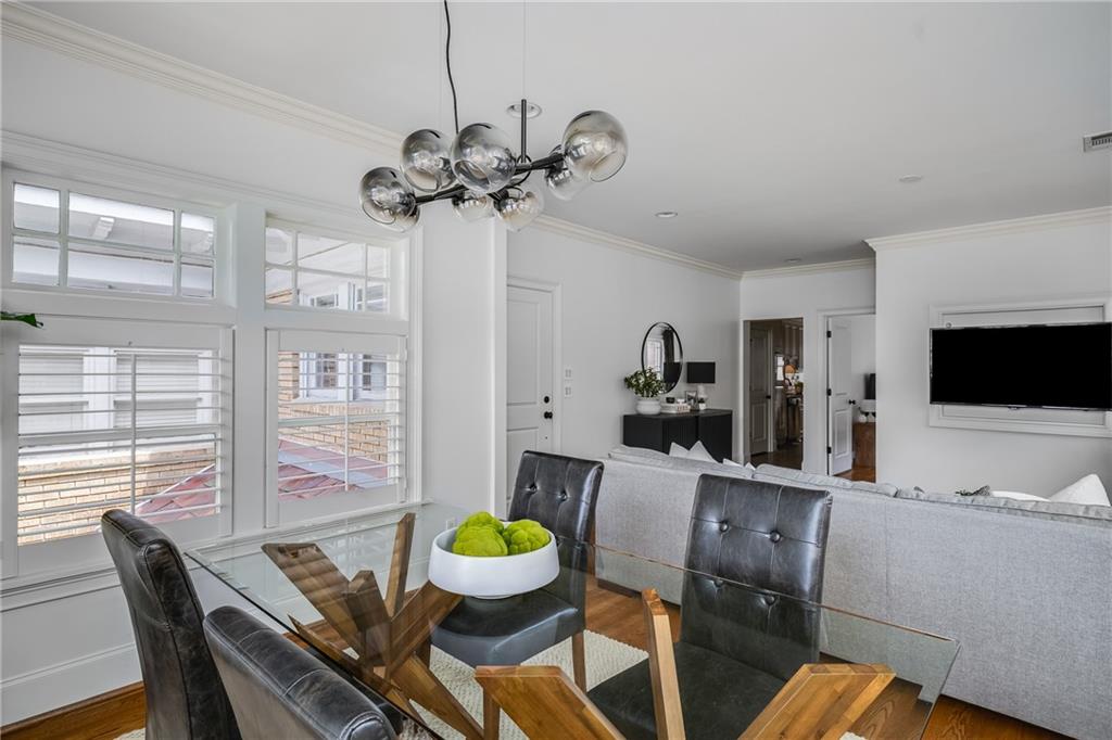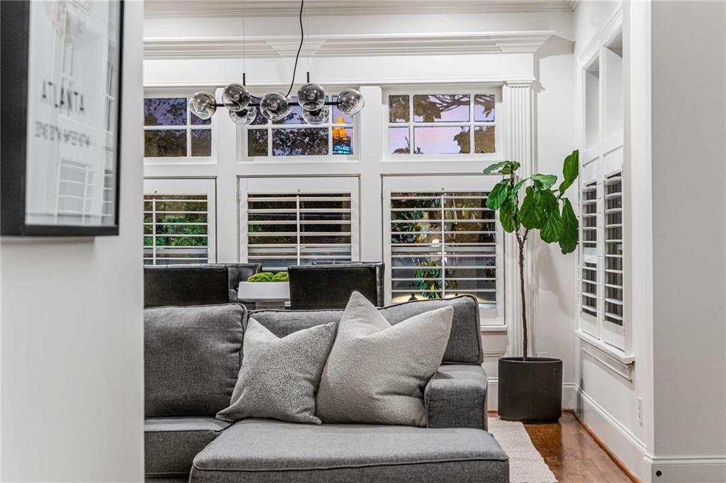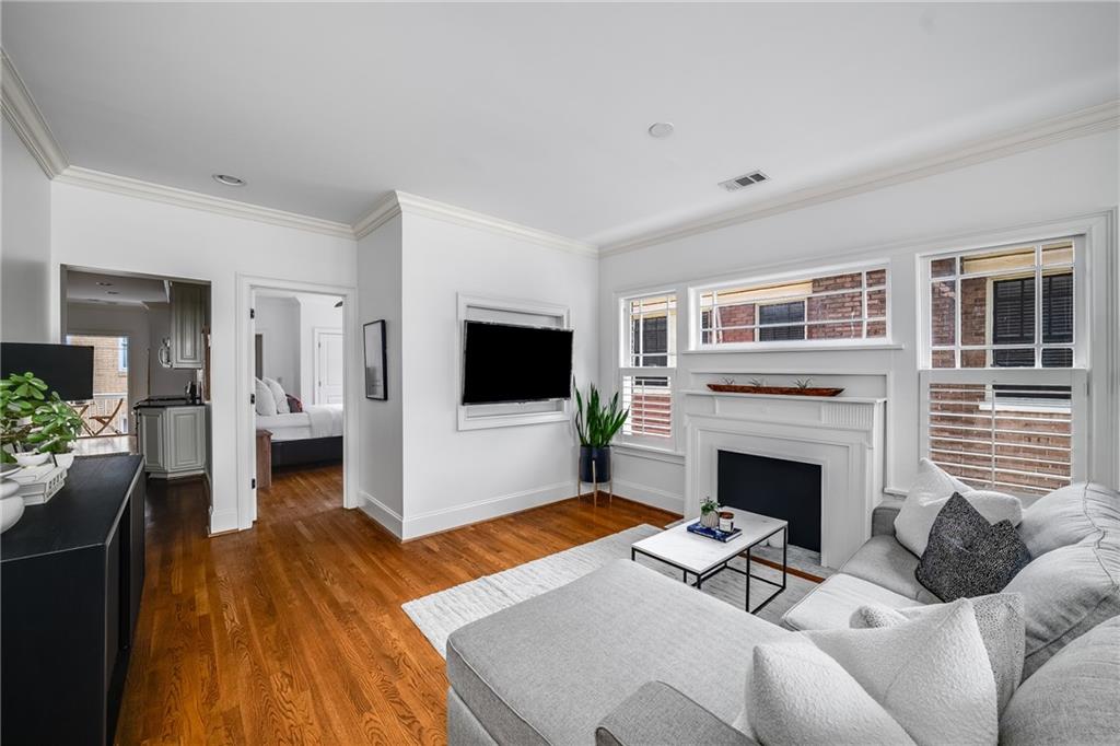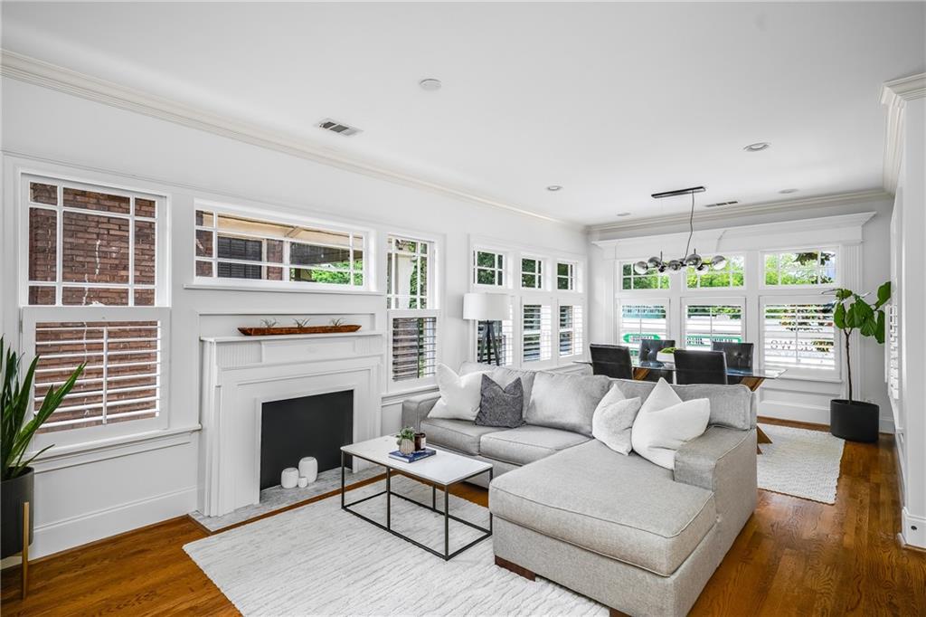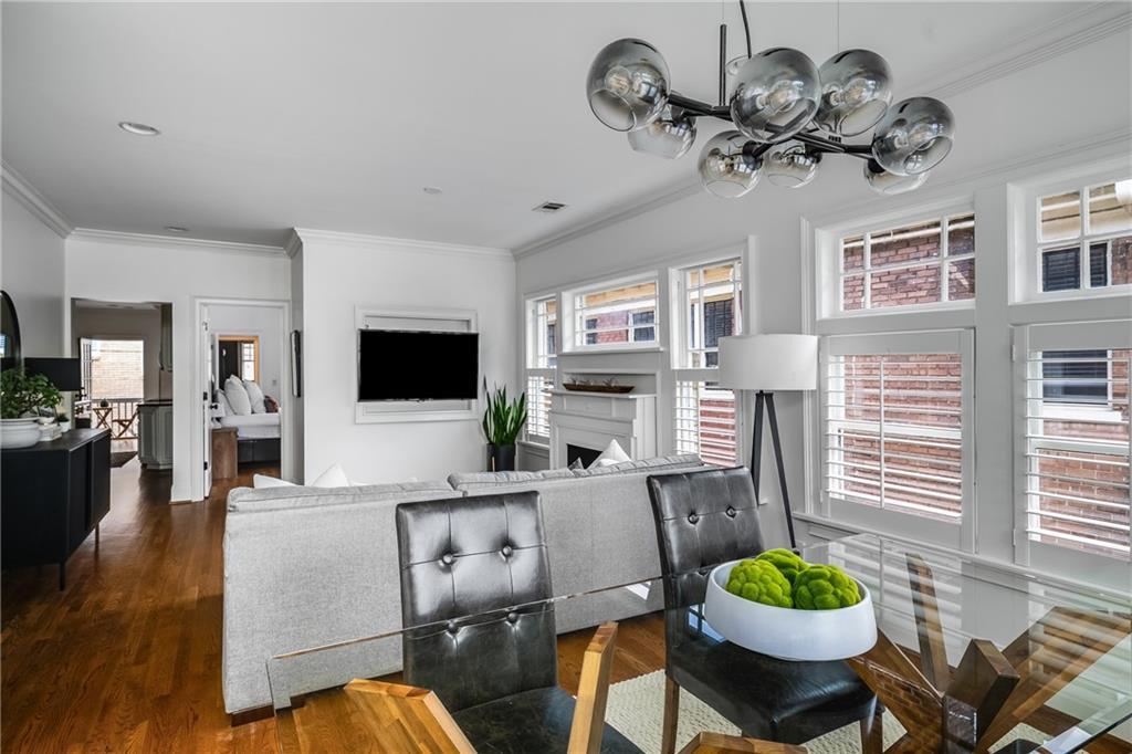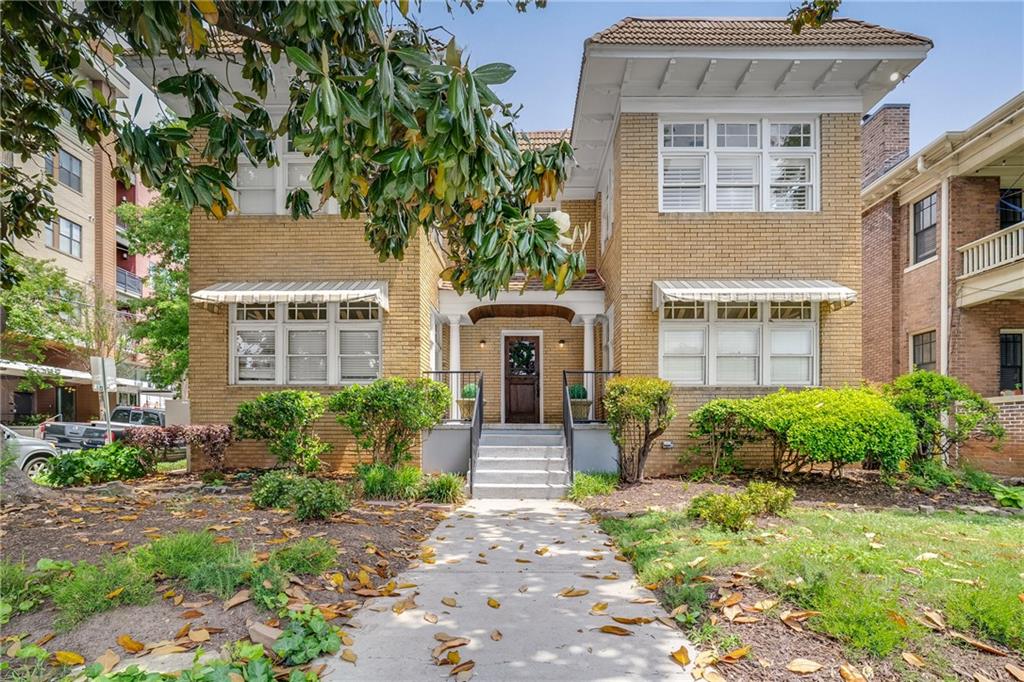 Poised above one of Atlanta’s most iconic tree-lined avenues, this beautifully appointed pre-war condo offers a timeless blend of historic character and modern sophistication in one of the city’s most sought-after neighborhoods. Occupying a coveted top-floor corner unit in an intimate 1920s-era building, this home showcases enduring architectural detail complemented by thoughtfully curated contemporary updates. Inside, a distinctive and rarely available floorplan features both a second bedroom and a formal dining room—an elegant and functional layout seldom found in the area. The freshly painted interior is anchored by a sun-drenched living room, where a charming fireplace, plantation shutters, and walls of transom-topped windows frame picturesque skyline views and fill the space with natural light. The kitchen offers granite countertops, a stone backsplash, stainless steel appliances, including a brand-new refrigerator, gas cooking, and under-cabinet task lighting with access to your quiet, covered porch. Additional highlights include refinished hardwood floors, generous closet space, additional communal storage, and a new HVAC system. HOA fee includes water and sewer. Set within a character-rich building, this home delivers exceptional walkability to the BeltLine, Freedom Park, Ponce City Market, Piedmont Park, and the vibrant shops and restaurants of Virginia-Highland and Inman Park. For those seeking charm, location, and a truly rare floor plan, this intown gem checks every box.