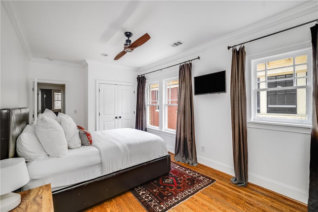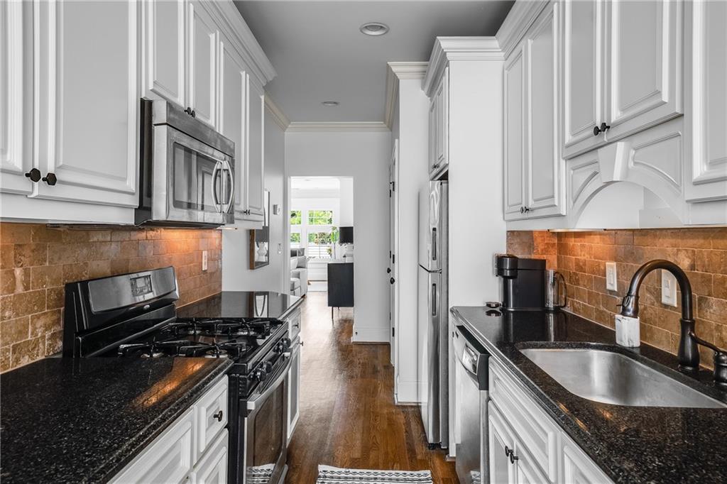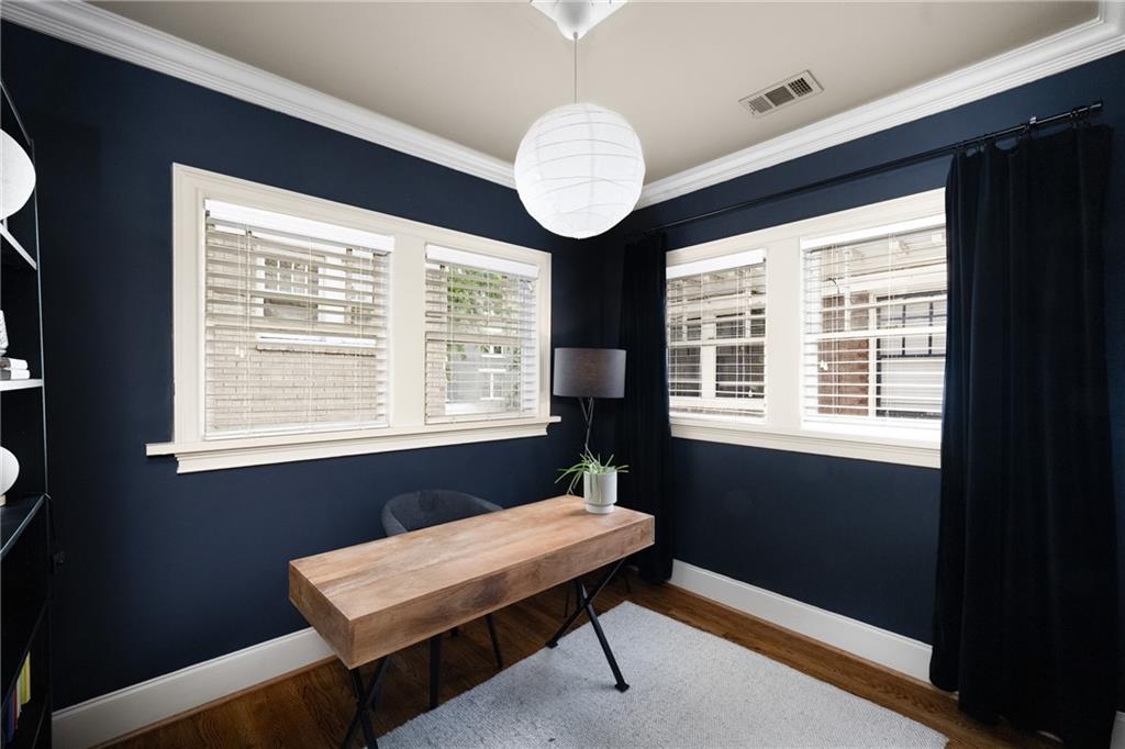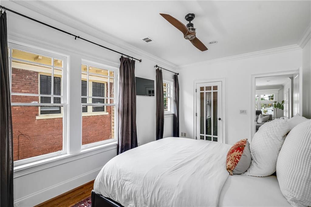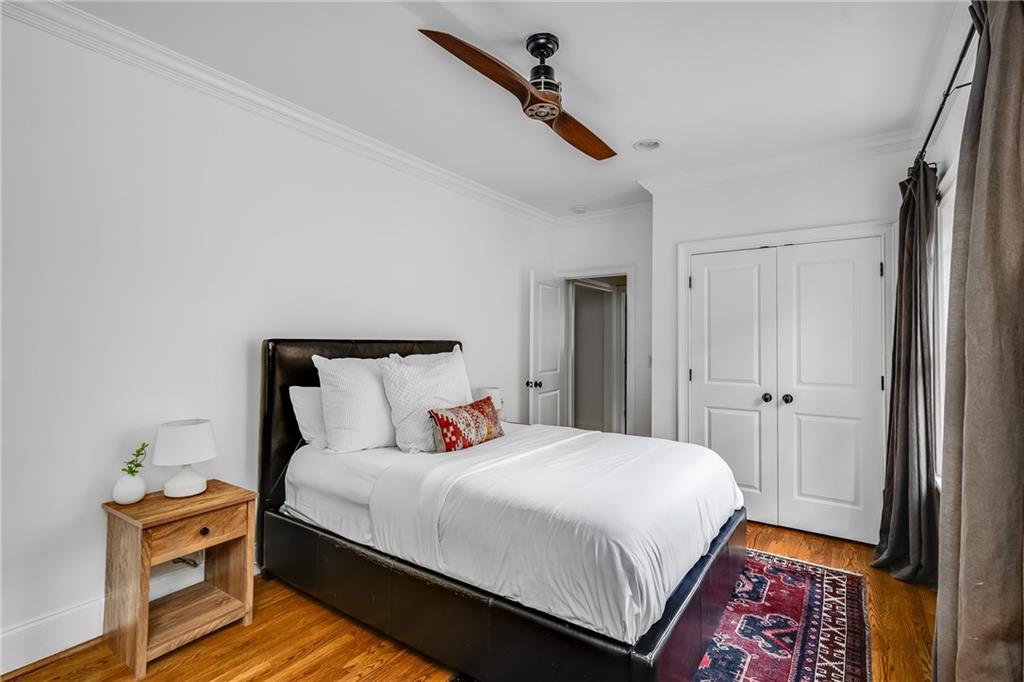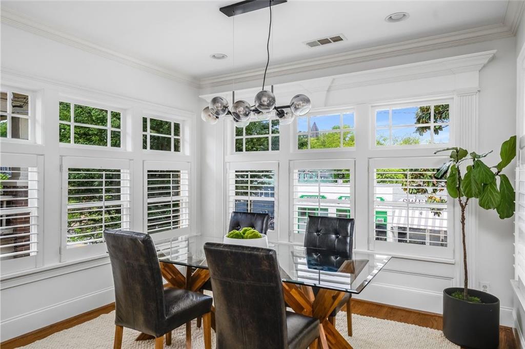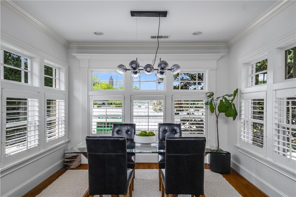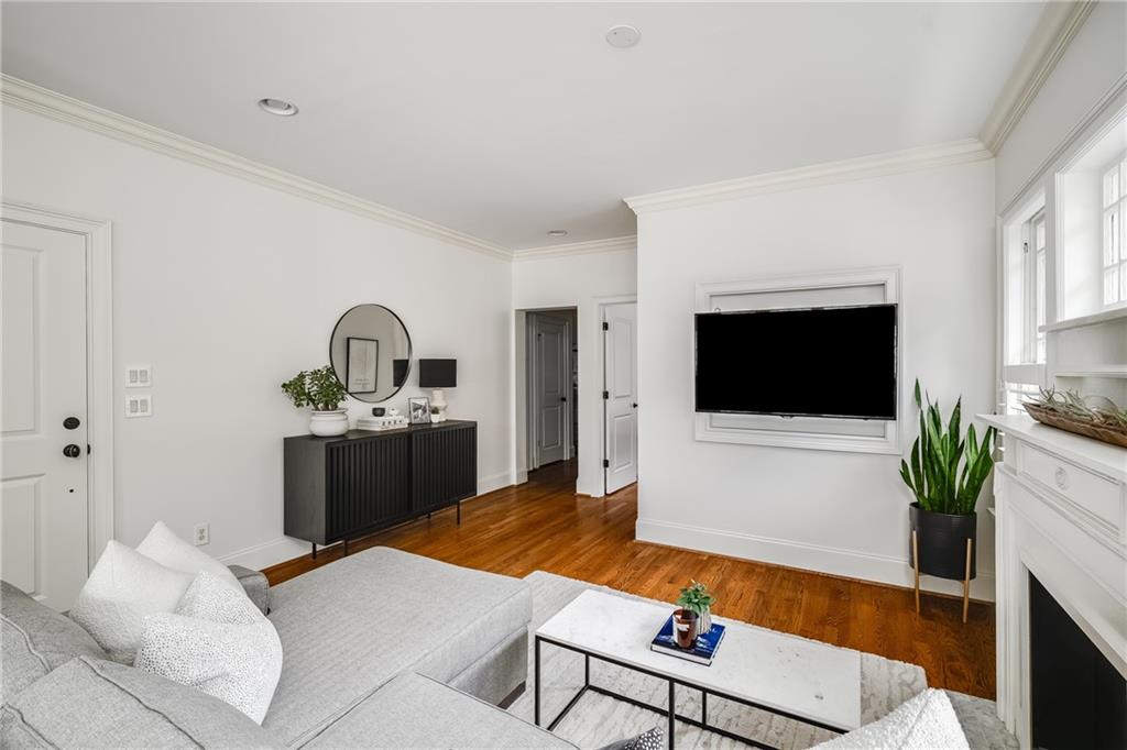 Poised above one of Atlanta’s most iconic tree-lined avenues, this beautifully appointed pre-war condo offers a timeless blend of historic character and modern sophistication in one of the city’s most sought-after neighborhoods. Occupying a coveted top-floor corner unit in an intimate 1920s-era building, this home showcases enduring architectural detail complemented by thoughtfully curated contemporary updates. Inside, a distinctive and rarely available floorplan features both a second bedroom and a formal dining room—an elegant and functional layout seldom found in the area. The freshly painted interior is anchored by a sun-drenched living room, where a charming fireplace, plantation shutters, and walls of transom-topped windows frame picturesque skyline views and fill the space with natural light. The kitchen offers granite countertops, a stone backsplash, stainless steel appliances, including a brand-new refrigerator, gas cooking, and under-cabinet task lighting with access to your quiet, covered porch. Additional highlights include refinished hardwood floors, generous closet space, additional communal storage, and a new HVAC system. HOA fee includes water and sewer. Set within a character-rich building, this home delivers exceptional walkability to the BeltLine, Freedom Park, Ponce City Market, Piedmont Park, and the vibrant shops and restaurants of Virginia-Highland and Inman Park. For those seeking charm, location, and a truly rare floor plan, this intown gem checks every box.