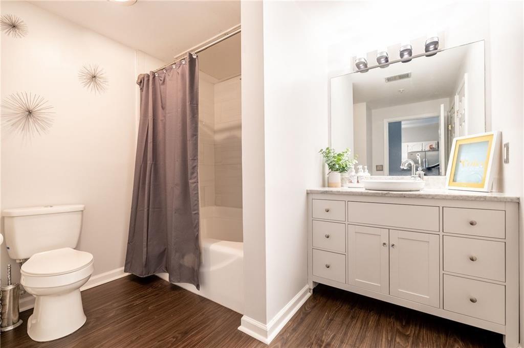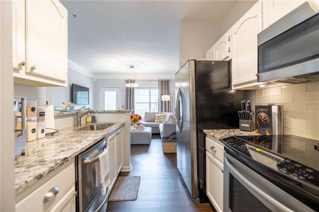Come see this stunningly open and updated, one bedroom one bathroom end unit Condo in the heart of Buckhead! This space has been updated throughout and has been meticulously kept by its owner. This end unit also features a major closet renovation that other units don't have. This expansion included knocking down and reconfiguring walls to connect the master closet through to the master bathroom and provide approximately double the space! The Quartz counters in the kitchen will blow you away! Newer, stainless-steel appliances accompany the open space along with gleaming white cabinets and modern chandelier fixtures throughout. An acrylic vessel sink has been added in the master bathroom to modernize things, along with a renovated soaking tub/shower combo that includes multiple shower nozzles for your own in-house spa enjoyment! You will be shocked at how spacious the laundry room is! The covered patio is perfect for enjoying those warm Georgia nights! You’re gonna fall in love. FHA financing approved! Don’t miss out on this incredible opportunity to call Carrington Park home. Schedule your showing today and experience luxury living in Atlanta’s premier location! Welcome Home!