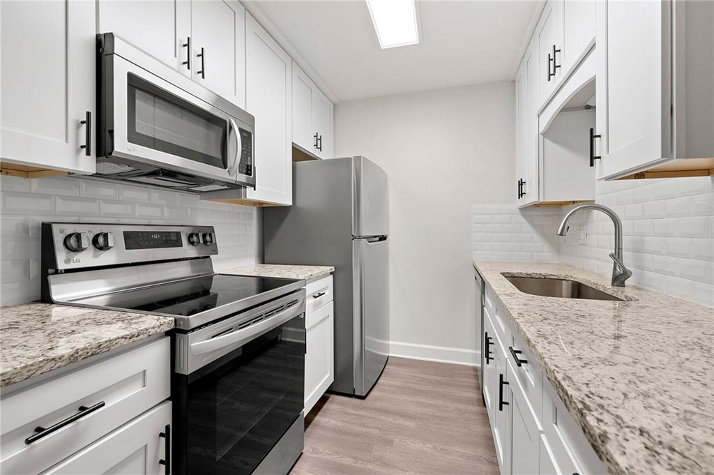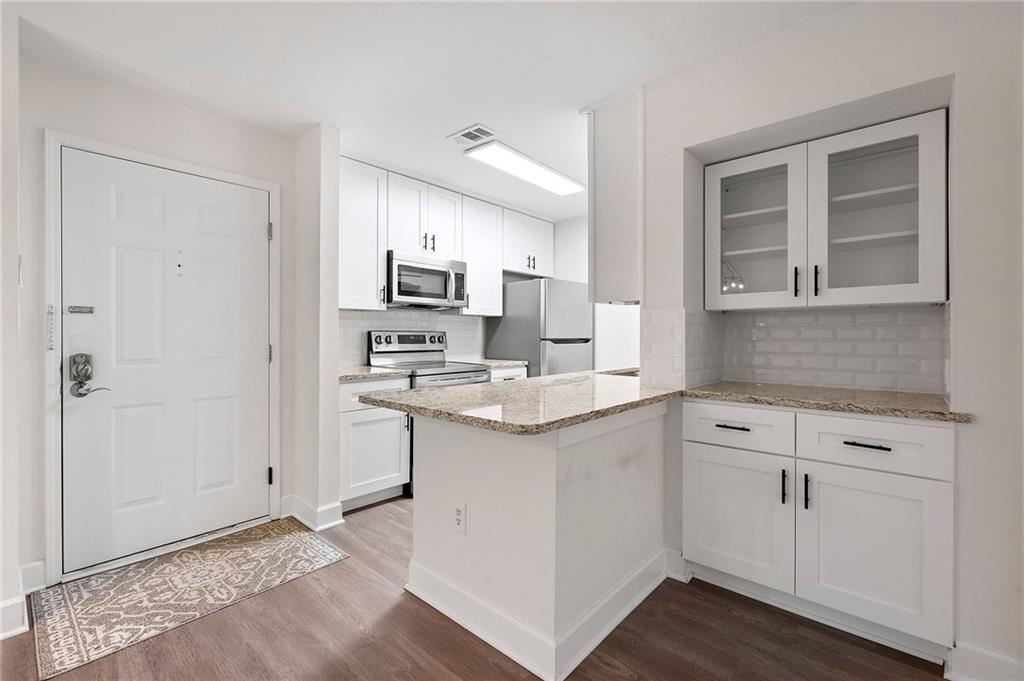 Fall in love with Fully Renovated this beautifully updated 2-bedroom, 2-bathroom condo located in the gated community of Lenox Heights, just minutes from the heart of Prime Buckhead. Featuring a desirable split floor plan, located on the third floor, this unit offers added privacy and peace of mind with no one living above you. This spacious unit was completely renovated in 2022 with high-end finishes and modern upgrades throughout. Enjoy waterproof luxury vinyl plank flooring, a stylish kitchen with 42” wood cabinetry, granite countertops, and stainless steel appliances. Both bathrooms have been thoughtfully redesigned with new tile, tubs, toilets, faucets, trims, mirrors, and light fixtures. The unit also includes an in-unit laundry with a newer washer and dryer (2022). Conveniently located near Lenox Square, restaurants, major highway I-85, and the MARTA train. Pet-friendly building with amenities including a fitness center, pool, tennis courts, and a clubhouse. Two assigned parking spaces in a gated garage are included. Make this your home sweet home.