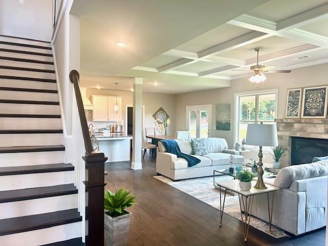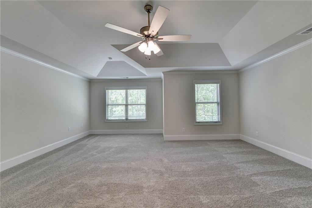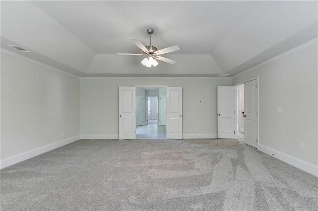CHARLESTON Plan Lot 50B: 5BR/4BA, Beautiful Home Featuring BASEMENT, 3,CAR GARAGE. MOVE IN READY! Come Take a Look at This Wonderful Property, enjoys Upgrades Galore! Located in the Sought after North Forsyth School District. This BRAND NEW HOME is Located in the Gated community of Sierra Lake with Great Shopping, Parks and Schools. This Lot is Level in the Front, and backs to fresh water creek in the rear of the lot so there is no neighbors close to you in the back of the home- privacy. The Main Level Features a 2-Story Foyer, Formal Coffered Dining Room, Study/Flex Space, Large Bedroom on the Main with Spacious Walk-In Closet and Full Bath. Gourmet Kitchen with 42" Cabinets, and Island, Huge Walk in Pantry, Wall Oven, Apron gas cooktop, vented microwave, Dishwasher, one Continuous Stainless-Steel Sink with Disposal, Island with lots of Seating, and Tile Backsplash. The main level has Wood and the Wood Staircase lead you to a Wonderful Media Room and 4 bedrooms. 2 Bedrooms share a Jack and Jill Bathroom, One Bedroom with Ensuite Bath. The Master Bath alone Deserves Special Mention, this Space Includes Comfort-Height Double Sink Vanity, Oversized Walk-in Shower, Separate Soaking Tub, Linen Closet, and Private Water Closet. You will Love to Enjoy Your Coffee on the Covered Back Deck Home Nestled in a quiet lake community that offers resort style amenities including a fishing dock, walking trails, playground, pool, clubhouse, pavilion, fire pit area, gaming area, and Play field. Quick access to GA 400. Minutes to Lake Lanier. GATED COMMUNITY - Gates close at 6:30PM File photos - house is under construction