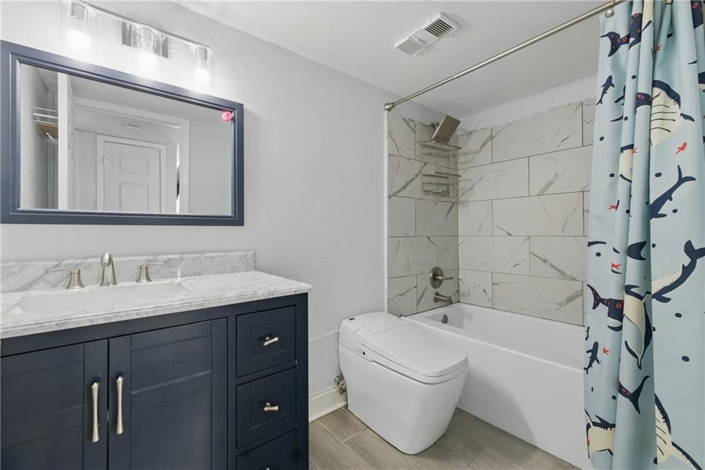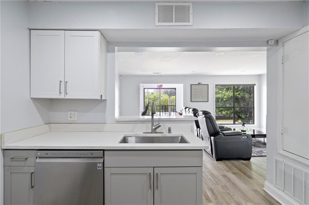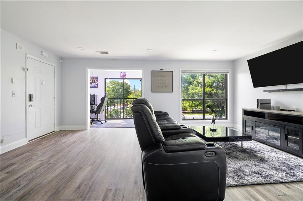 Welcome to the heart of Buckhead! This charming 2 bed, 2 bath underwent a COMPLETE renovation last year. New luxury vinyl flooring throughout, two beautifully done bathrooms and a gorgeous kitchen with custom shaker cabinets, quartz countertops, breakfast bar and NEW stainless steel appliances. Abundant natural light, especially in the bright sunroom, which doubles as a home office, playroom or dining space. The open concept living and dining room combination creates a spacious environment ideal for entertaining or relaxing. Laundry conveniently located in closet off of kitchen. Seller willing to sell FULLY FURNISHED! Retreat to the primary bedroom, where a serene tree-lined view awaits, accompanied by the beautifully updated ensuite bath. Spacious secondary bedroom with large closets in both room. HVAC replaced in 2023. Located in a gated community, you'll have access to convenient amenities, including a pool and fitness center. Open parking inside the gate and a plethora of visitor spots outside of gate. Positioned in the vibrant Buckhead area, you're just moments away from high-end shopping, exquisite dining options, and easy access to I-85 and 400. Experience the best that Atlanta living has to offer in this stunning condo! Preferred lender is Conor Malloy with Ameris Bank, offering $2,500 in closing costs. Preferred closing attorney is MMH Firm.